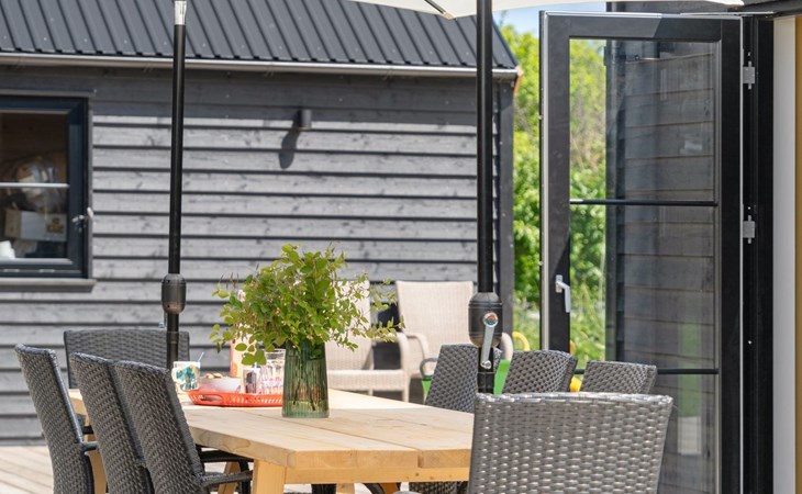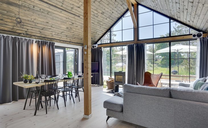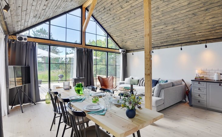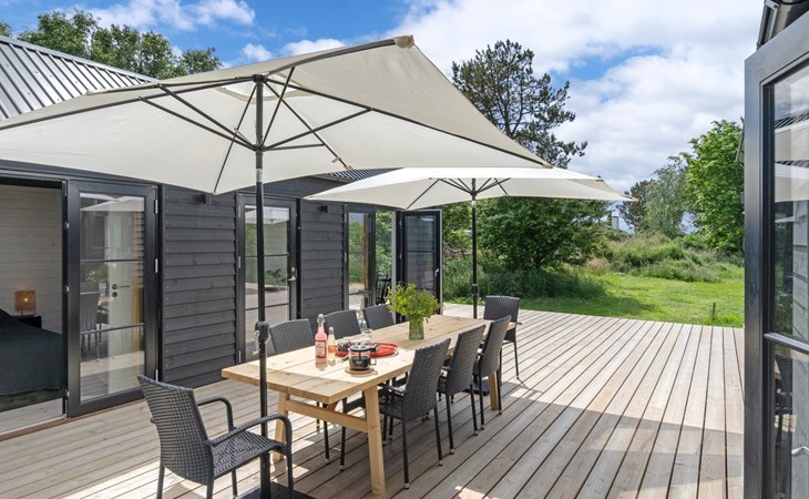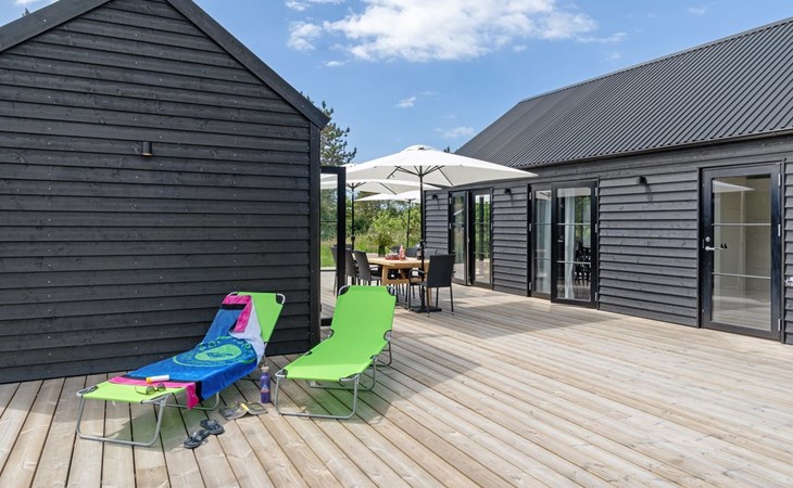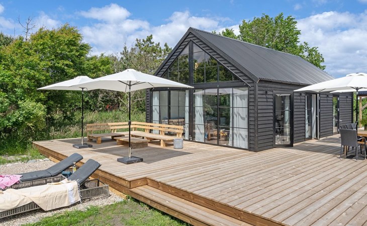 Single-family house, built in 2022. 100 m from the sea. Private: property 1'320 m2, well-kept garden. Outdoor shower, barbecue. In the house: washing machine, tumble dryer. Parking at the house. Grocery 5.3 km. Golf course 19.3 km. The owner does not accept any youth groups.