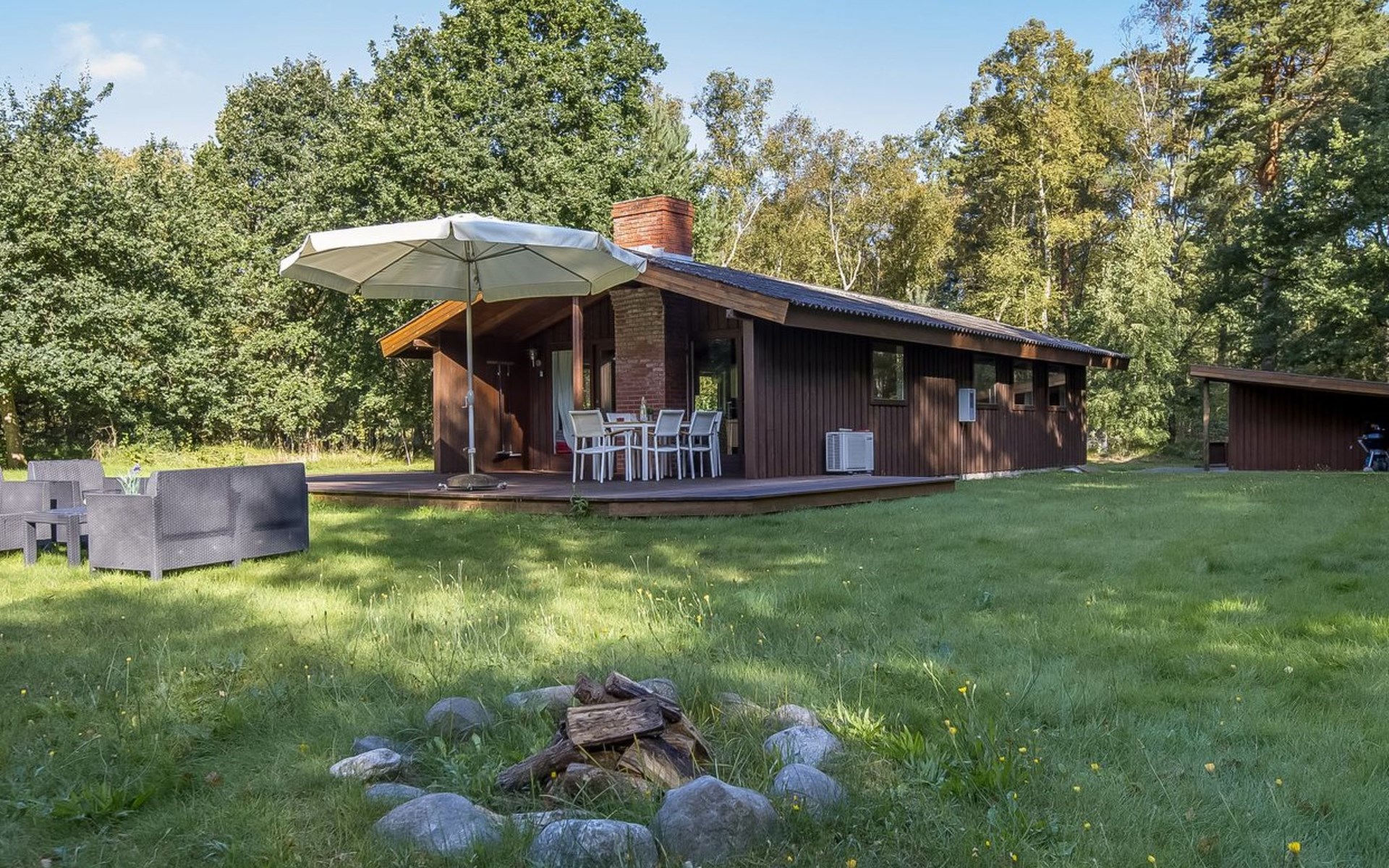 Single-family house, built in 1977. 5 km from the sea. Private: natural state property 5'000 m2. Barbecue, fireplace. In the house: washing machine. Parking at the house. Grocery 1.5 km. Golf course 6 km.