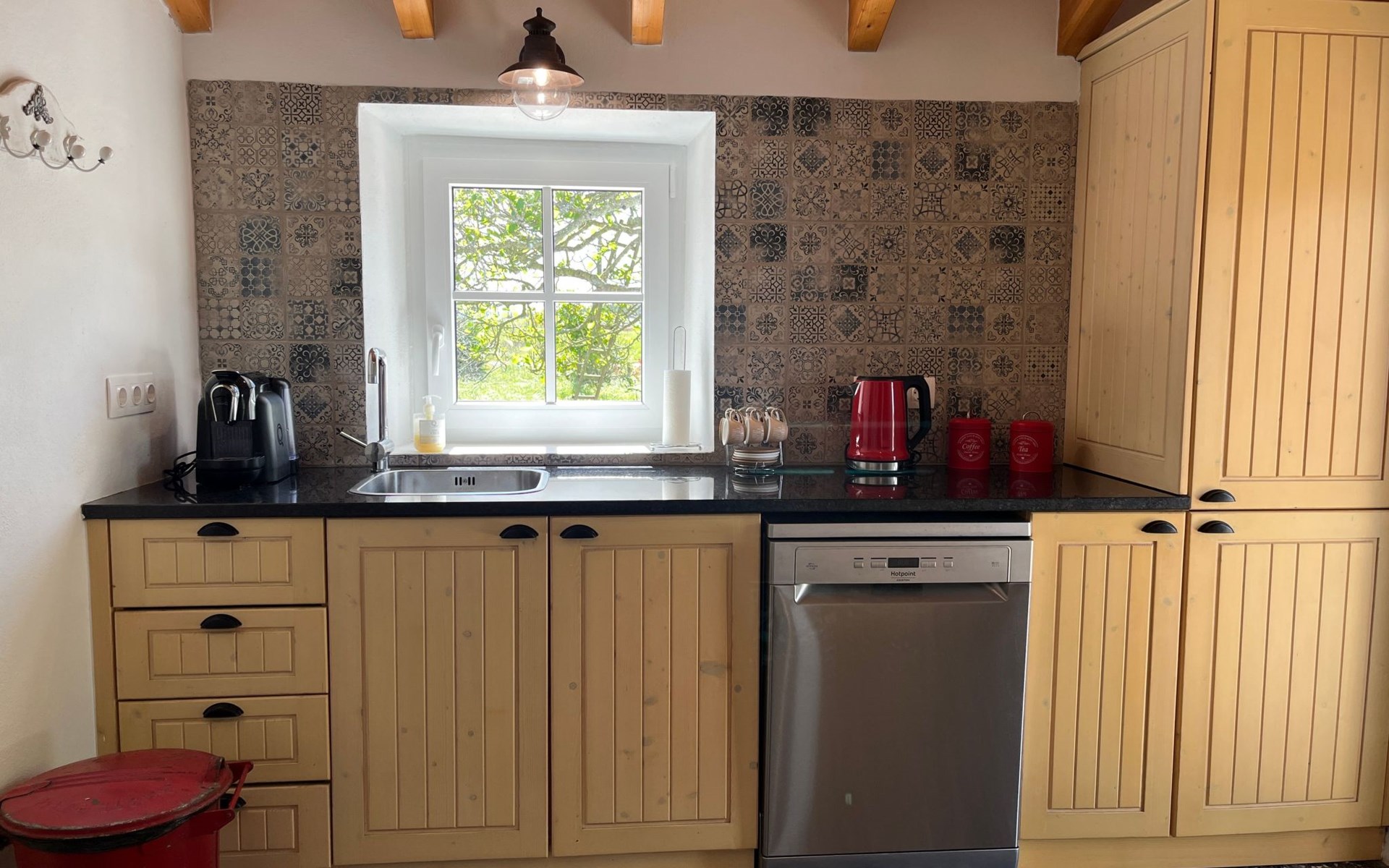 Due to the maritime climate, air conditioning is not needed. Casa Pomar is also suitable for the winter months, there is a good wood stove. The house is well isolated and equipped with high-quality window frames with double glazing. Solar panels are used.