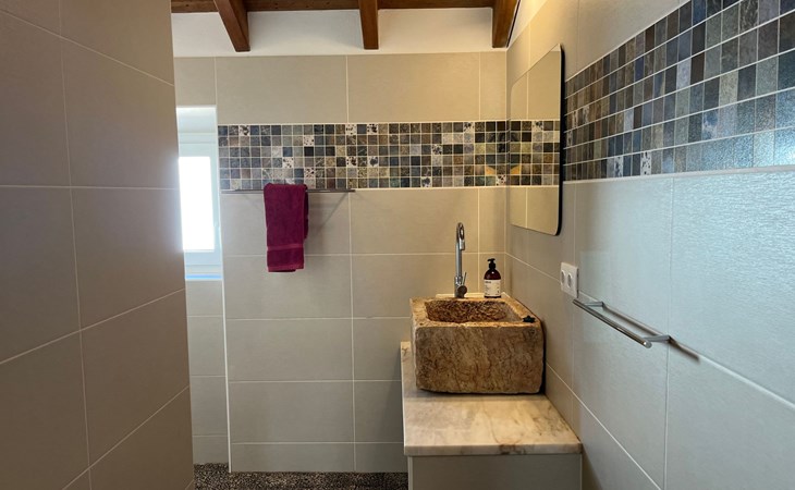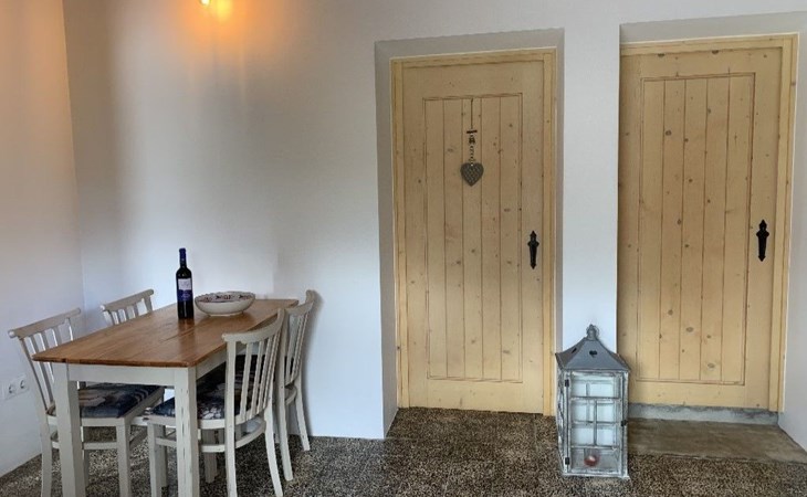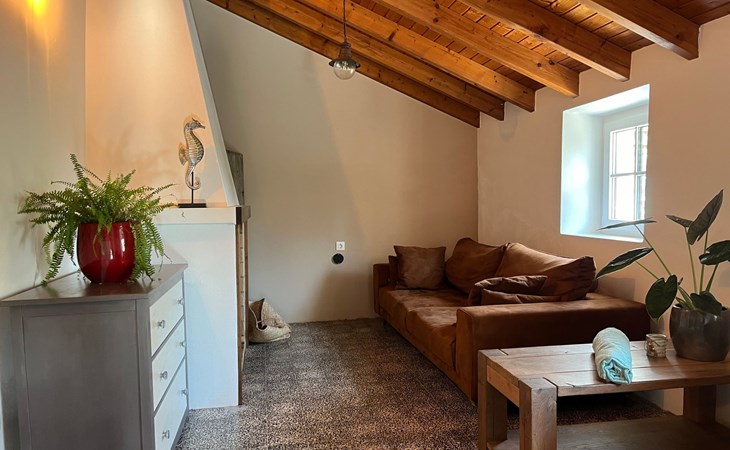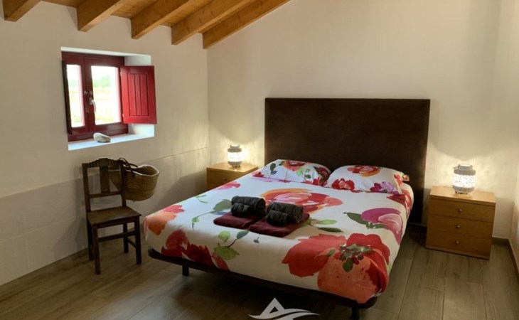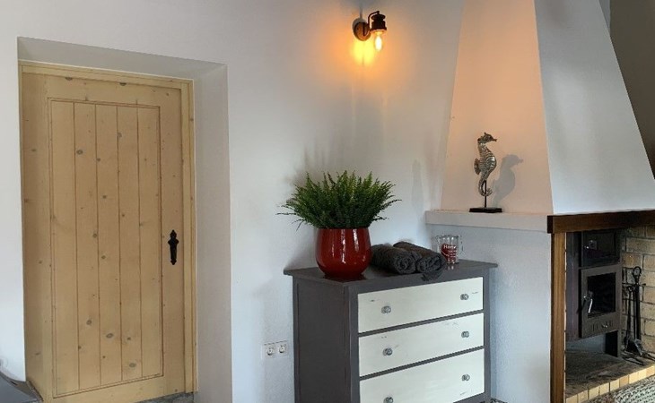 This lovely house is situated in the countryside with fruit trees around and great rural view. Modern furnished with some rustic details.