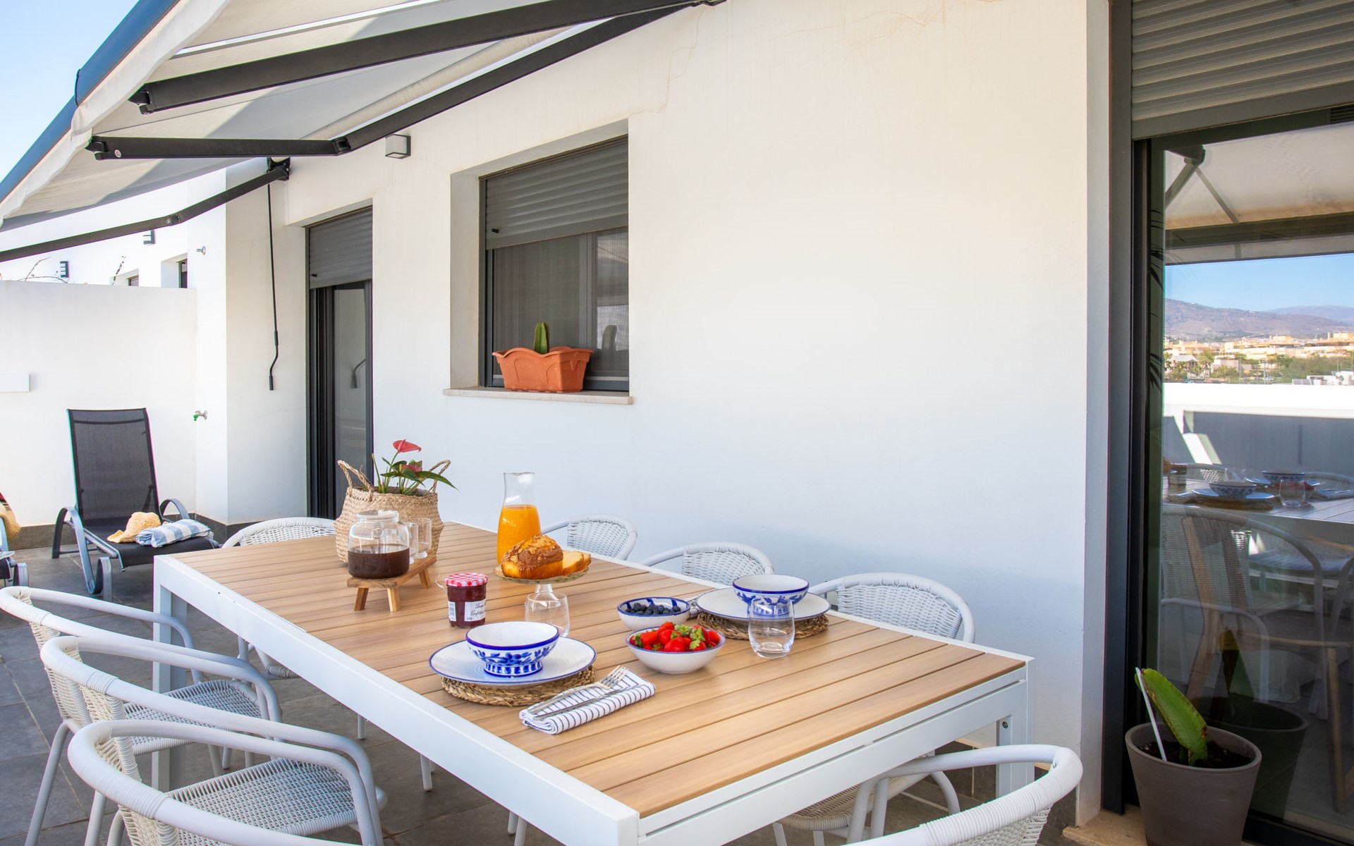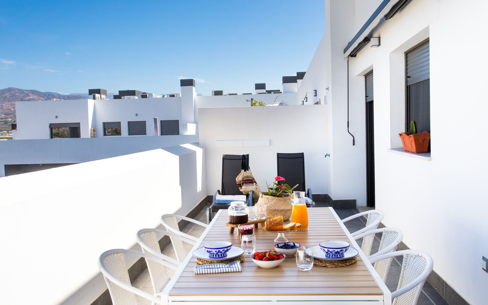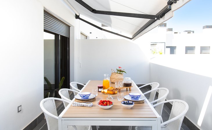 Torre del Mar: Modern, beautiful, comfortable apartment block "Atico Maroma", 5 storeys. Torre del Mar, 500 m from the sea, 500 m from the beach, north facing position. For shared use: swimming pool (15 x 7 m, depth 35 - 150 cm, seasonal availability: 01.Jun. - 30.Oct.). WC in the pool area, outdoor shower. In the house: lift, air conditioning, washing machine. Roofed, parking space n 14, single garage. Shop, grocery 300 m, shopping centre 1.5 km, restaurant, bakery, café 300 m, pedestrian zone 700 m, bus stop 50 m, railway station 25 km, ferry 23 km, sandy beach 500 m. Sports harbour 2 km, marina 2 km, golf course (18 hole) 4 km, sailing school 700 m. Nearby attractions: Nerja, La Viñuela, Periana, Malaga, Granada, Frigiliana. Well-known ski regions can easily be reached: Sierra Nevada. Hiking paths: Sierra Tejeda, Sierra Almijara. Please note: baby equipment (included). The owner does not accept any youth groups. Loading and unloading of baggage is possible at the holiday house. Property ref. ES5460.1.1 is situated on the same property.