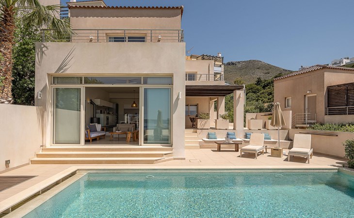 Adeste Seaview Villa ll is a modern villa carefully designed to create an intimate atmosphere with high standards and with beautiful surroundings, thoughtful design, and five-star service. With a privileged view of the hills and mountains of Apokoronas, extending to the blue strip of Souda Bay, Adeste Seaview Villa ll is a brilliant reflection of the diverse scenery that surrounds it.
