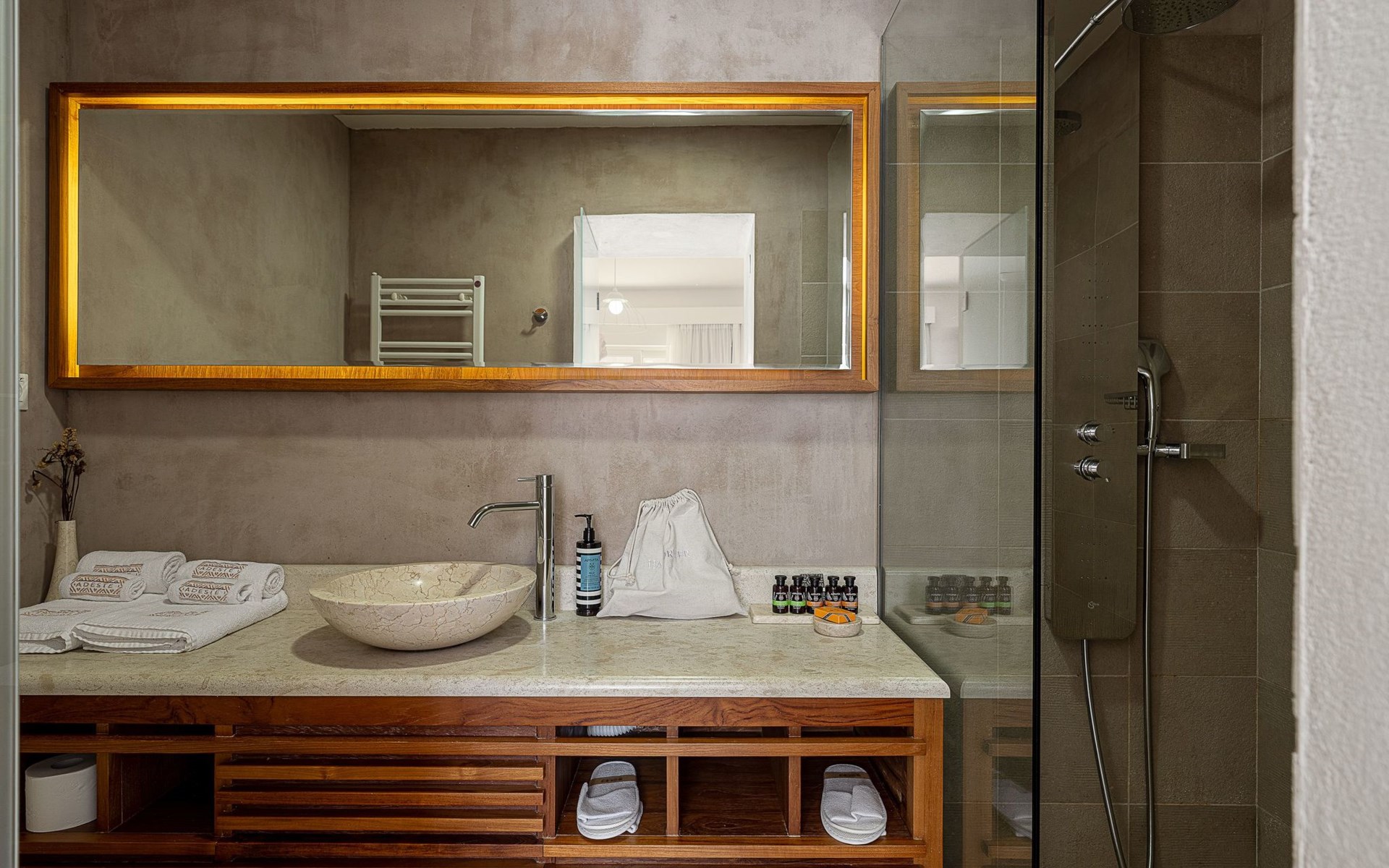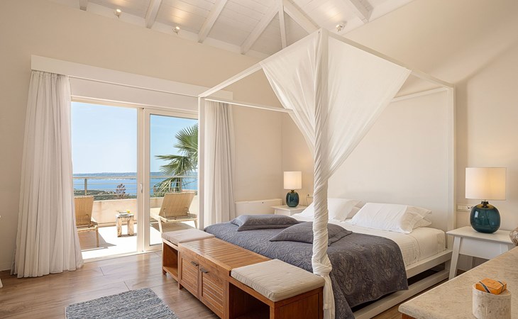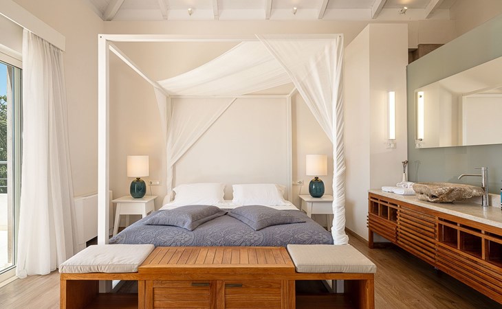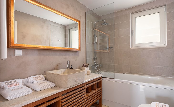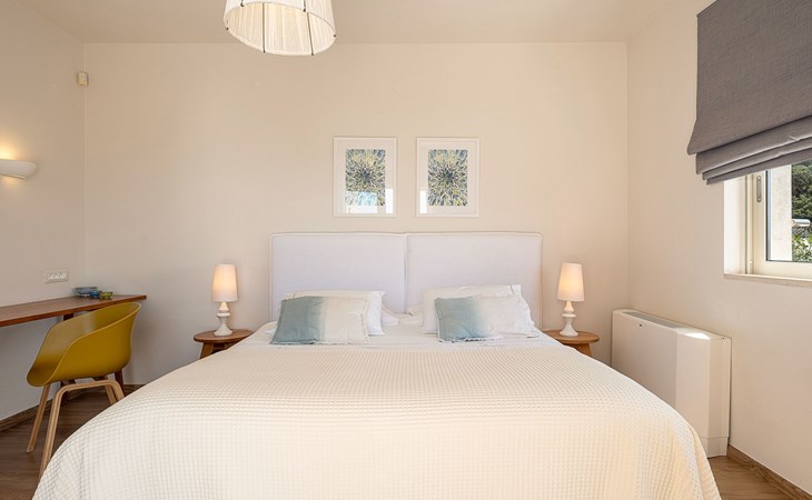 Bedroom 3: Two twin beds (90×200) that can be converted into a king-size bed upon request and an en-suite bathroom with rain shower, access to a private balcony with a sitting set and sea views.