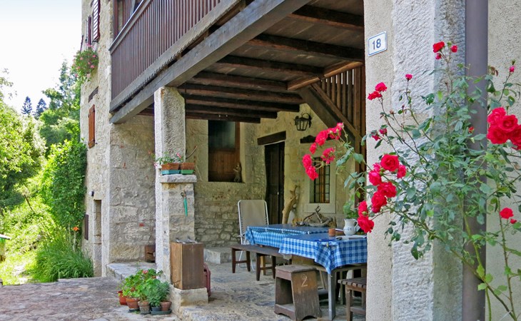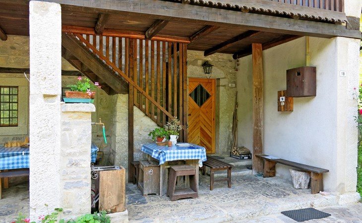 House "Casa Polava", 500 m a.s.l., terraced. In the hamlet Polava 6 km from the centre of Savogna, 18 km from the centre of Cividale, 10 km from the centre of Kobarid (Slovenia), on a slope, 82 km from the sea. Private: garden with trees. Patio, garden furniture, parking at the house on the premises. Grocery 6 km, bus stop 800 m, railway station "Cividale" 18 km, sandy beach "Grado" 82 km. Owner lives in separate semi-detached house.