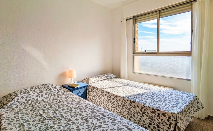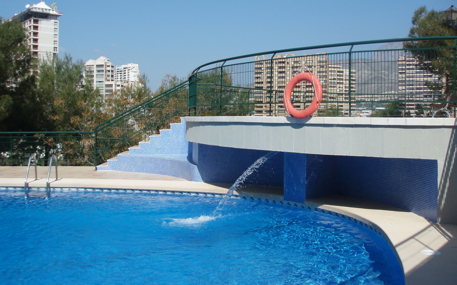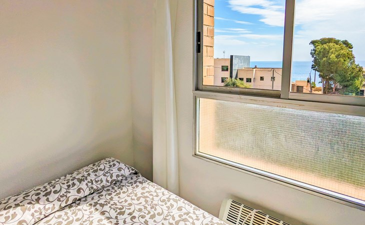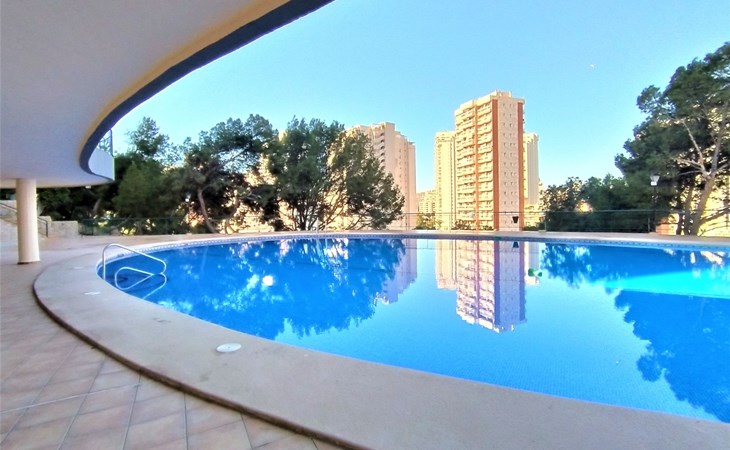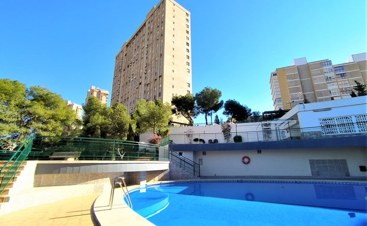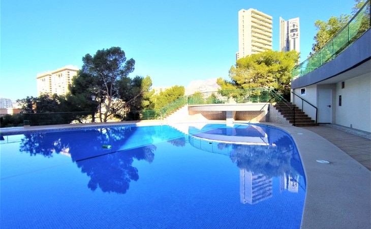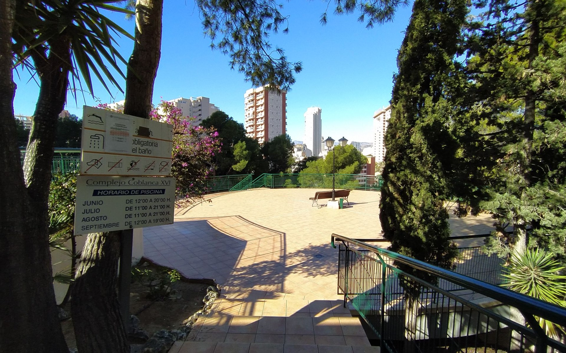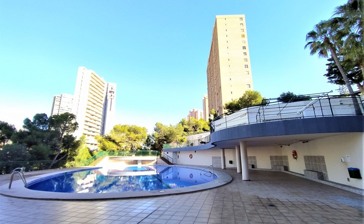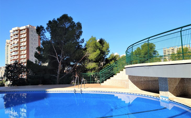 Playa de Poniente: Large, simple apartment block "Coblanca XVI", 16 storeys, surrounded by trees. In the resort 3 km from the centre of Benidorm, in the district Playa Poniente, in a quiet, sunny, elevated position, 400 m from the sea, 400 m from the beach, east facing position. For shared use: property (fenced), terraced garden plants and trees, natural garden 800 m2 (fenced), swimming pool (7 x 15 m, depth 78 - 230 cm, seasonal availability: 01.Jan. - 31.Dec.). Children's pool, outdoor shower, tennis (extra). In the complex: lift. Parking on the premises, public parking. Shop 500 m, supermarket 400 m, shopping centre, restaurant 500 m, bar, café 100 m, bus stop "Benidorm" 400 m, railway station "Benidorm" 4 km. Golf course (18 hole) 4 km, walking paths from the house 600 m. Nearby attractions: Benidorm Palace 7 km, Aqualandia 7 km, Mundomar 7 km, Terra Mitica 4 km, Terra Natura 4 km, Alicante 40 km. Please note: baby equipment on request. The owner does not accept any youth groups.