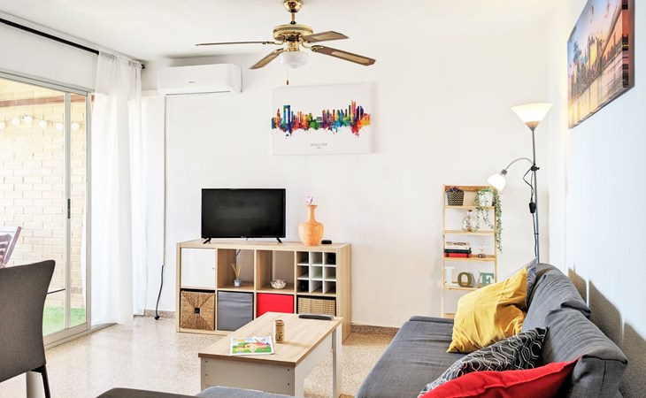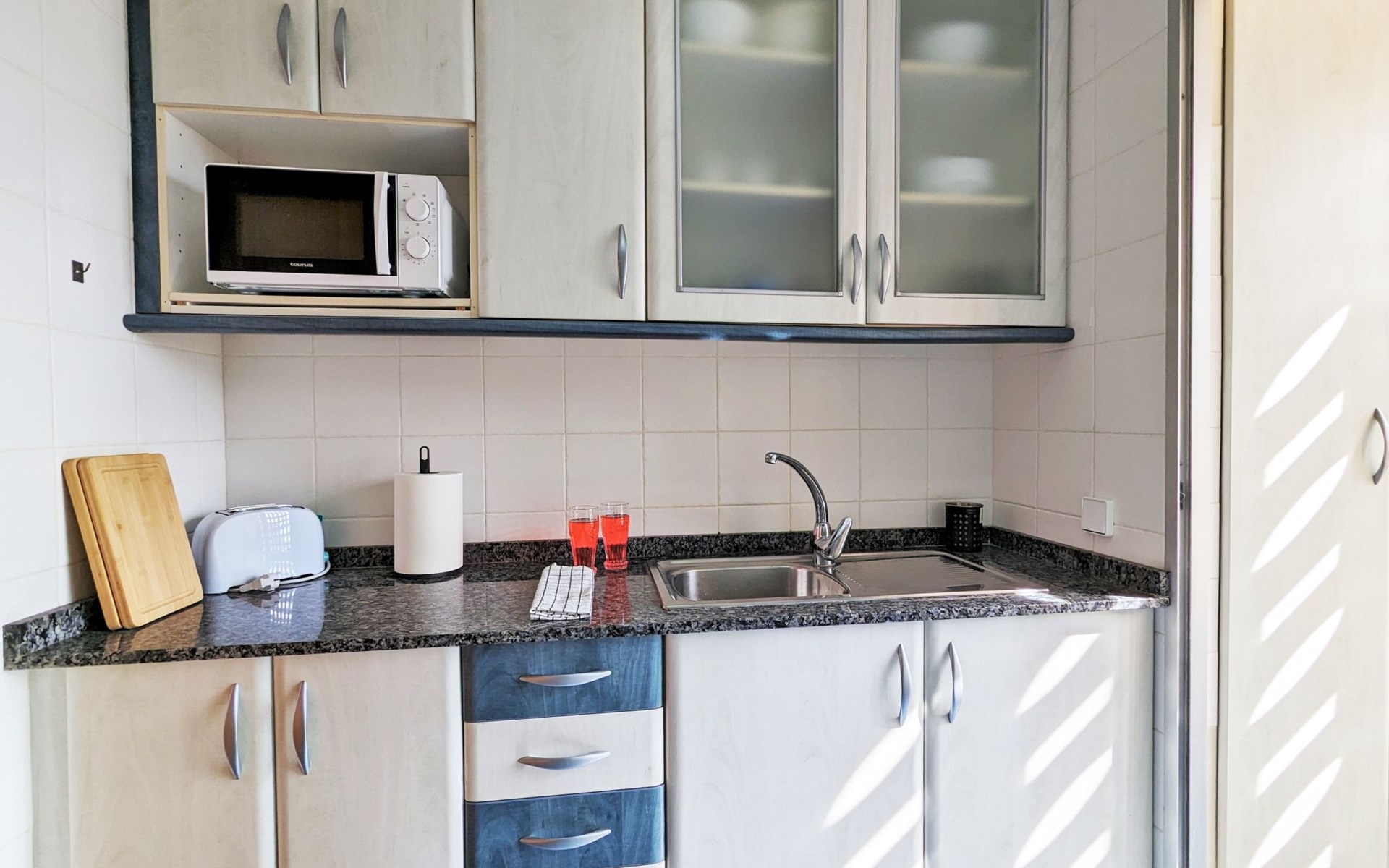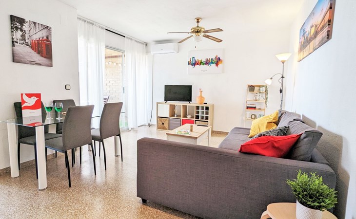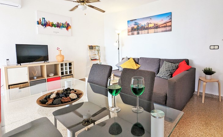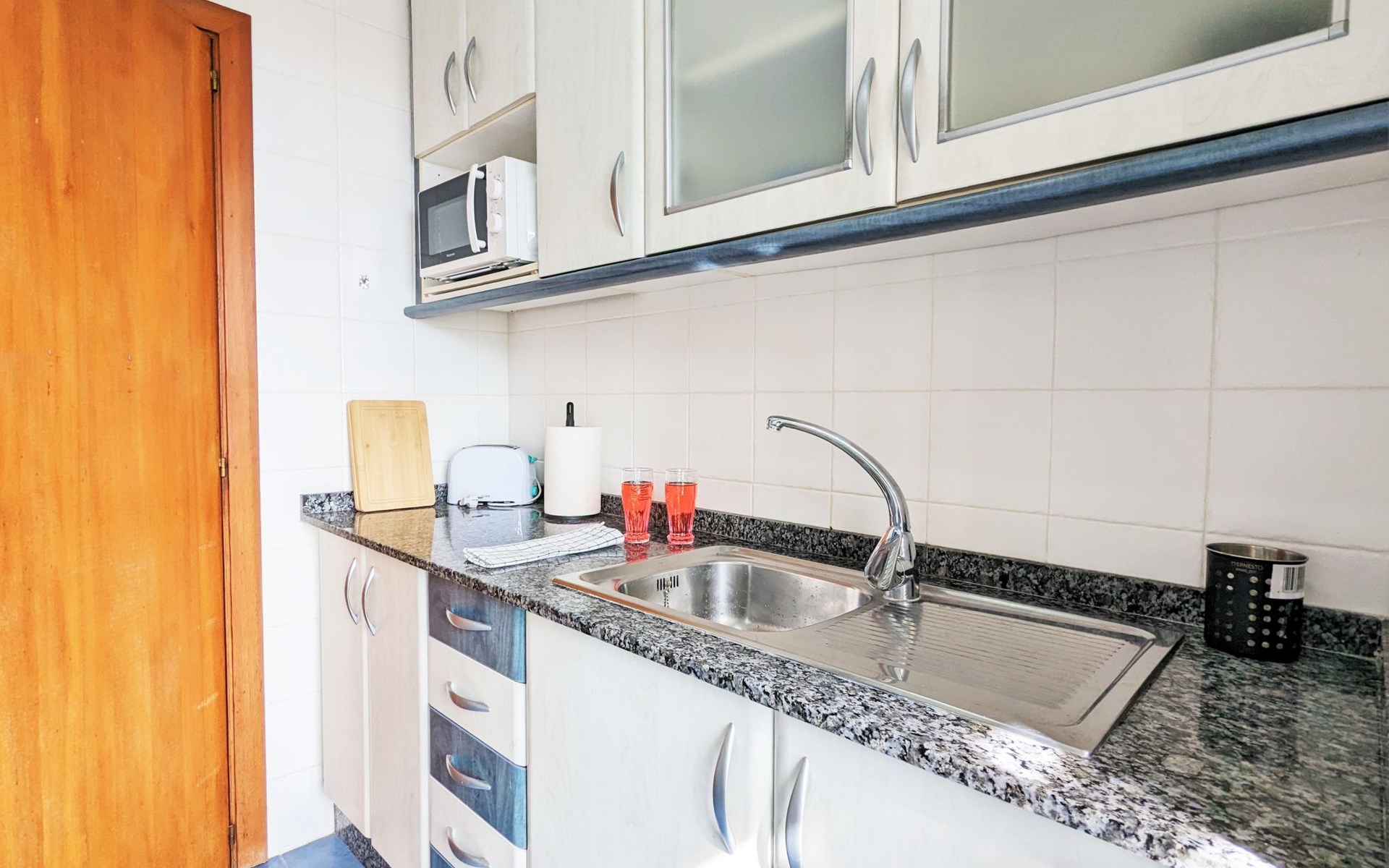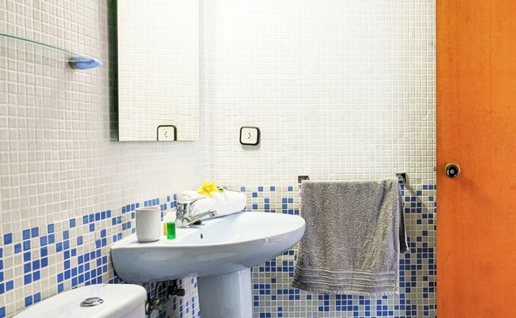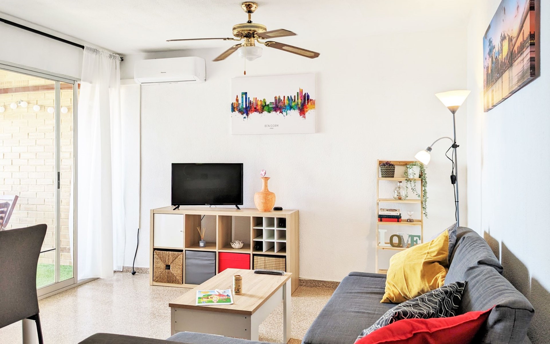 Playa de Poniente: Large, simple apartment block "Coblanca XVI", 16 storeys, surrounded by trees. In the resort 3 km from the centre of Benidorm, in the district Playa Poniente, in a quiet, sunny, elevated position, 400 m from the sea, 400 m from the beach, east facing position. For shared use: property (fenced), terraced garden plants and trees, natural garden 800 m2 (fenced), swimming pool (7 x 15 m, depth 78 - 230 cm, seasonal availability: 01.Jan. - 31.Dec.). Children's pool, outdoor shower, tennis (extra). In the complex: lift. Parking on the premises, public parking. Shop 500 m, supermarket 400 m, shopping centre, restaurant 500 m, bar, café 100 m, bus stop "Benidorm" 400 m, railway station "Benidorm" 4 km. Golf course (18 hole) 4 km, walking paths from the house 600 m. Nearby attractions: Benidorm Palace 7 km, Aqualandia 7 km, Mundomar 7 km, Terra Mitica 4 km, Terra Natura 4 km, Alicante 40 km. Please note: baby equipment on request. The owner does not accept any youth groups.