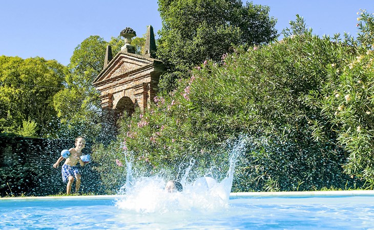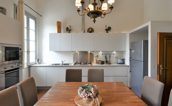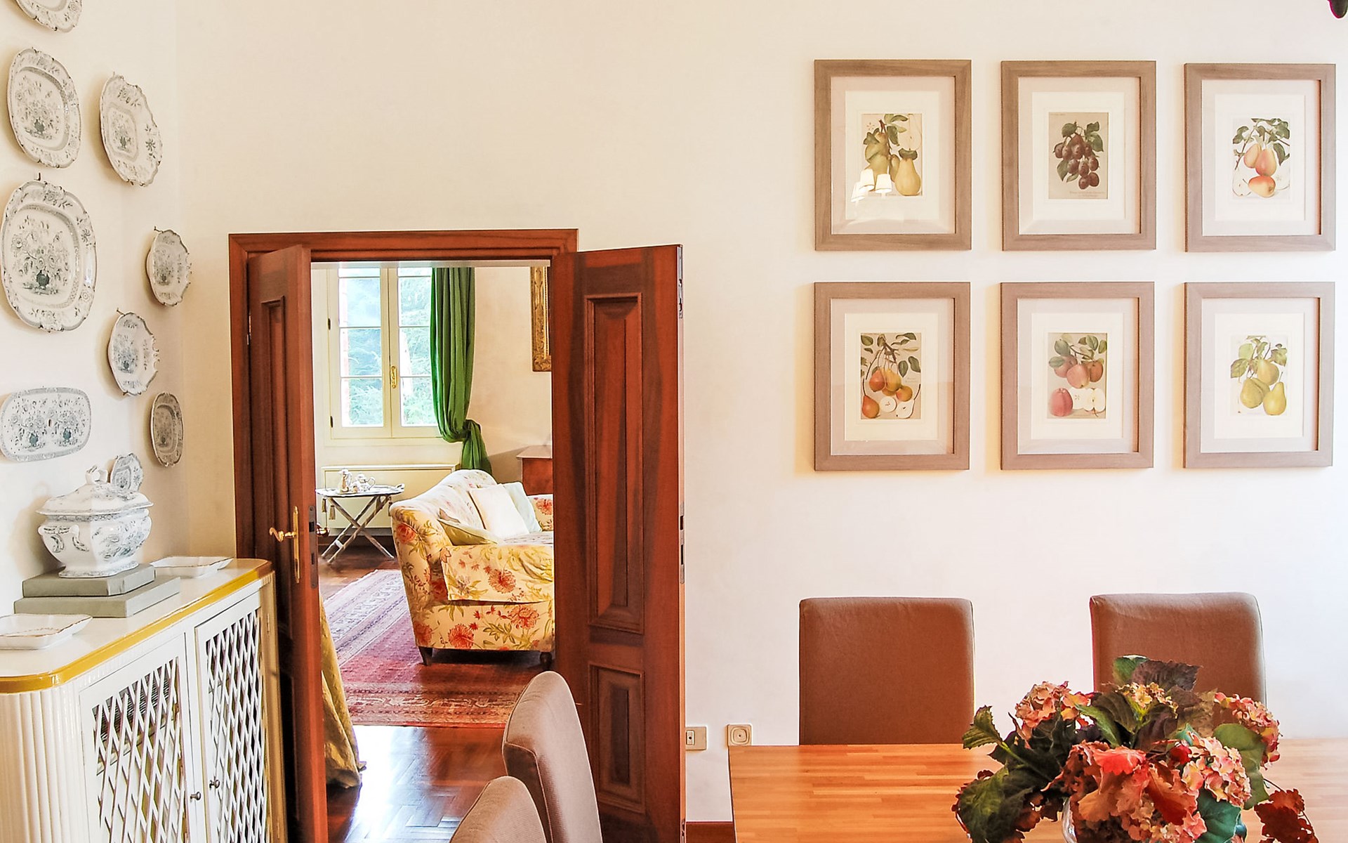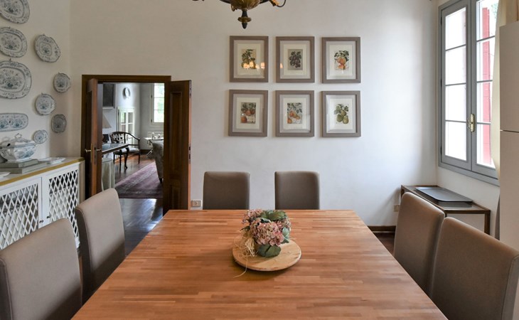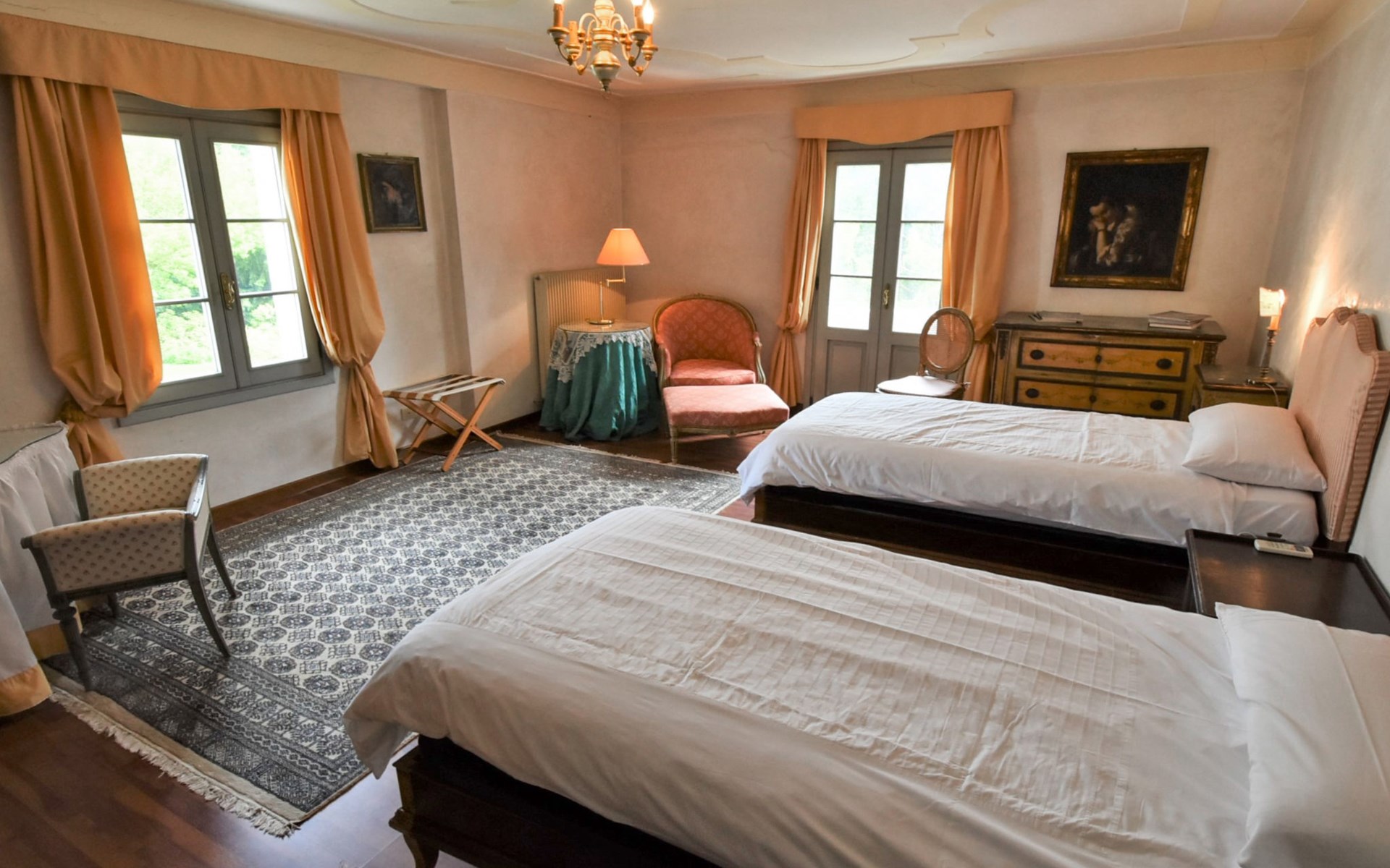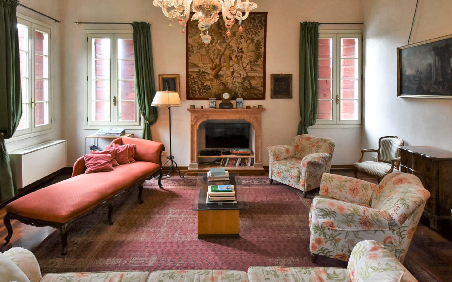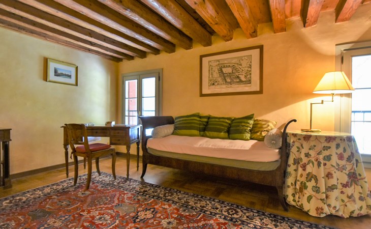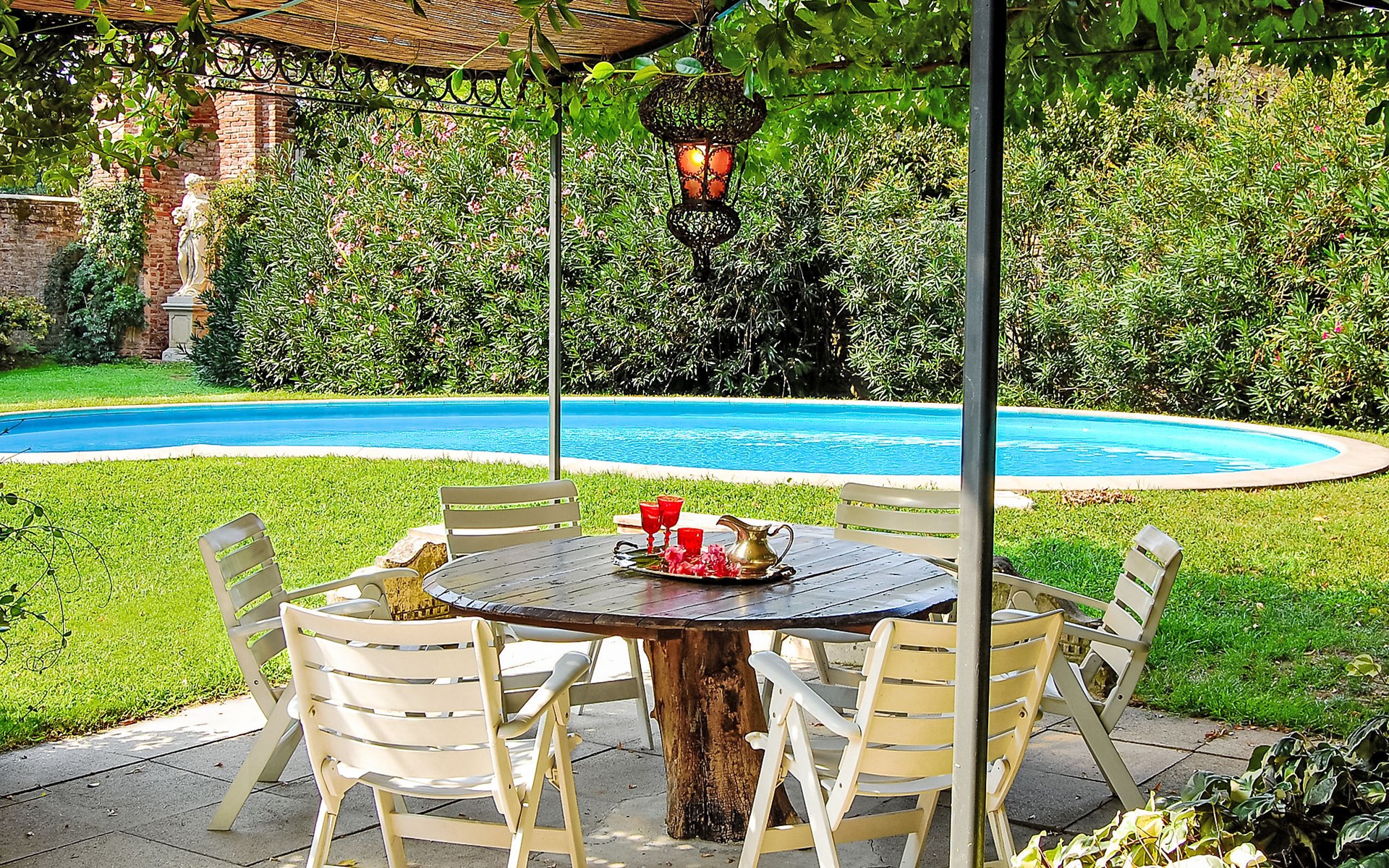 Beautiful, historical villa "Cà Marcello", 3 storeys, semi-detached, built in 1550, surrounded by fields and vineyards. Outside the resort Levada di Piombino Dese, in a quiet, sunny position, in the countryside. For shared use: park 6 ha (fenced) with lawn 2'000 m2, flowers. Private: garden 500 m2 (fenced), swimming pool with privacy (9 x 6 m, depth 160 - 160 cm, seasonal availability: 01.May. - 01.Oct.). Pool house with fridge, pergola, garden furniture, barbecue, children's playground. In the house: WiFi, central heating system, air conditioning, washing machine, tumble dryer, heating available only from 15.Oct. - 15.Apr.. Linen change weekly. Towel change weekly. Room cleaning weekly (included). Cook on request (extra). Parking at the house. Shop 2 km, grocery 500 m, supermarket 8 km, restaurant 2 km, bicycle rental 1.5 km, bus stop 650 m, railway station 6 km. Golf course (18 hole) 15 km, tennis 10 km, cycle lane 300 m. Nearby attractions: Treviso 16 km, Venezia 34 km, Padova 36 km, Verona 105 km. Suitable for events. Please note: the owner lives on the same property. Motorway 15 km from the property. Main road 100 m from the property. Railway line 6 km from the property. Nightclub/disco 2 km from the property.