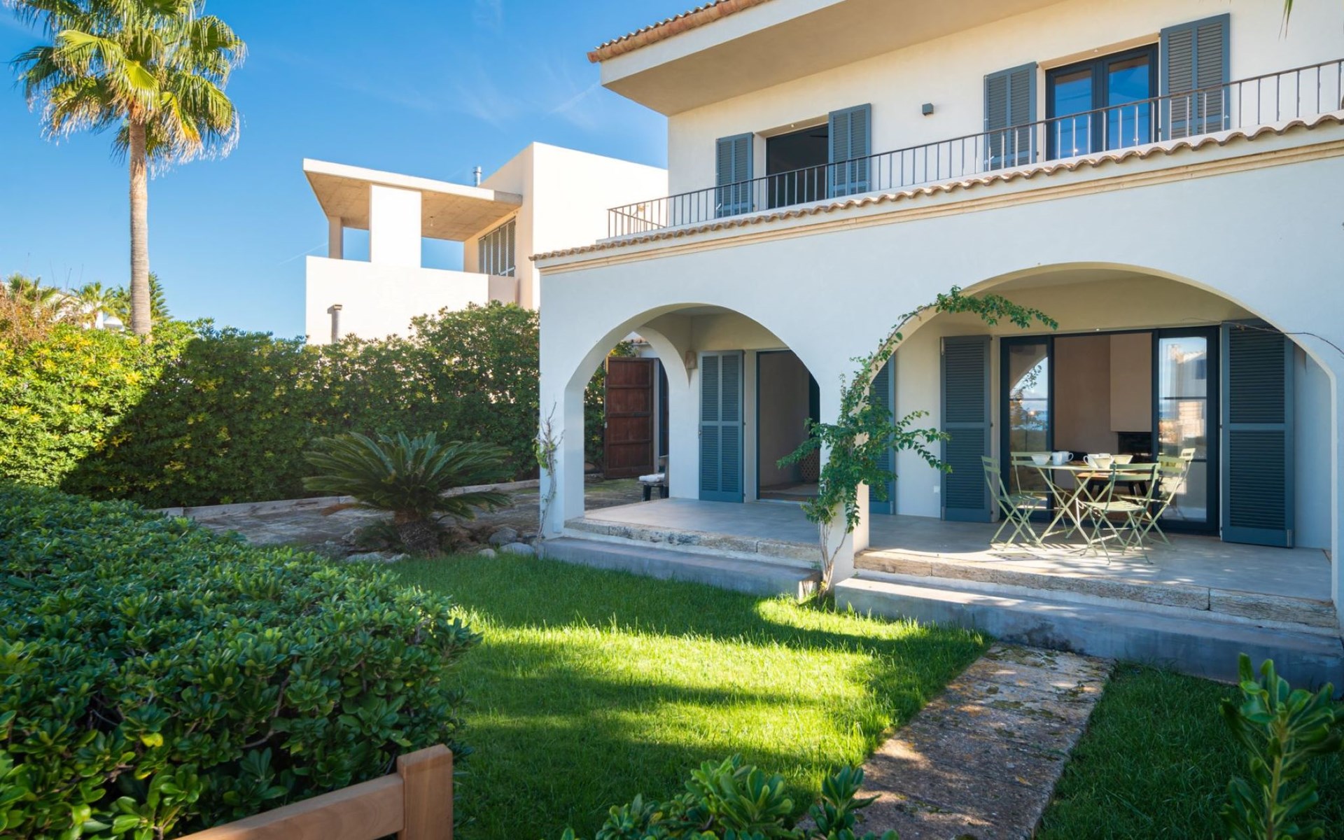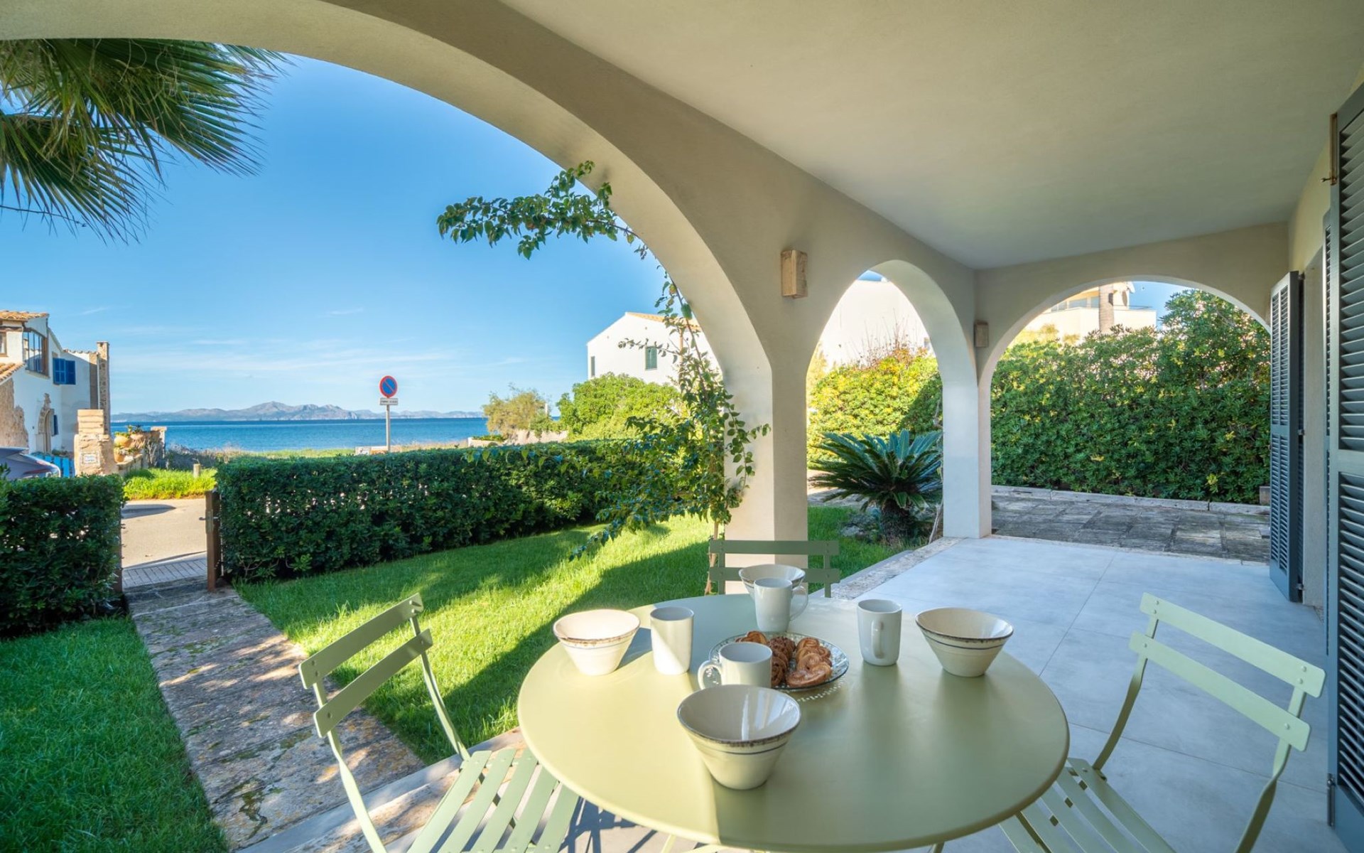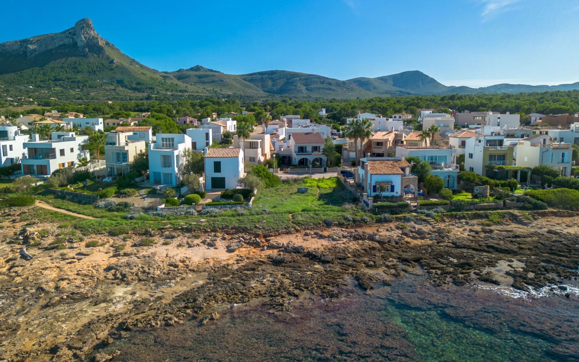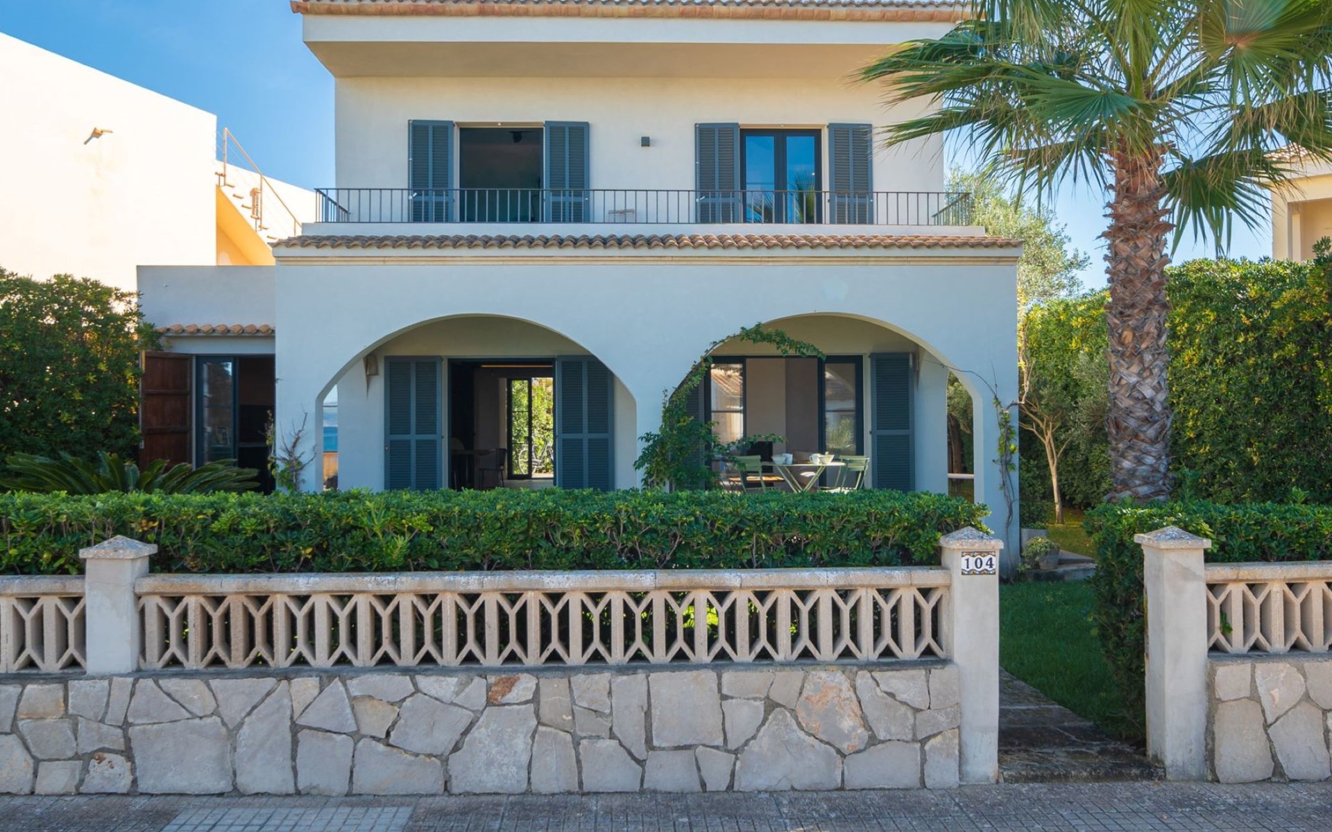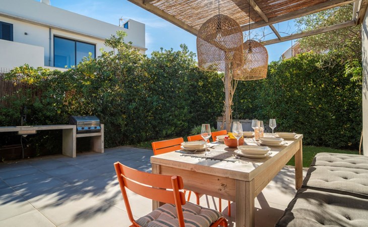 S'Estanyol 3 km from Colonia de Sant Pere: Large, modern, beautiful house "Can Popi", 2 storeys. In the district of Urbanización s'Estanyol, in the resort 1.8 km from the centre of Colònia de Sant Pere, in a quiet, sunny position residential area (villas), 15 m from the sea, 750 m from the beach, road to cross, direct access to the beach. Private: beautiful garden with lawn and wildlife garden. Outdoor shower, patio, arbour, garden furniture, barbecue. In the house: internet access, WiFi, air conditioning, washing machine. Parking at the house. Shop 1.8 km, supermarket 2 km, restaurant 1.9 km, bar 1.9 km, bakery 2.3 km, 20 minute walk to the centre, bus stop "Plaça Bassa d'en Fasol. Colonia." 2 km, sandy beach "Playa de Sa Canova" 350 m, swimming bay 15 m. Sports harbour 1.8 km, golf course (18 hole) 18 km, sailing school 2.1 km, riding stable 12 km, walking paths from the house, cycle lane 300 m. Nearby attractions: Son Serra de Marina 15 km, Betlem 5.7 km, Can Picafort 21 km, Artá 13 km, Cala Ratjada 24 km, Capdepera 20.9 km. Hiking paths: Ermita de Betlem 3.5 km, Parc Natural de Llevant 5 km, Finca Son Real 10 km. Please note: car recommended. Suitable for families, baby equipment on request (included). The owner does not accept any groups. The owner does not accept any youth groups. Loading and unloading of baggage is possible at the holiday house. Airfield 73 km from the property. Neighbourhood highly sensitive to noise. Quietness and good behaviour expected.