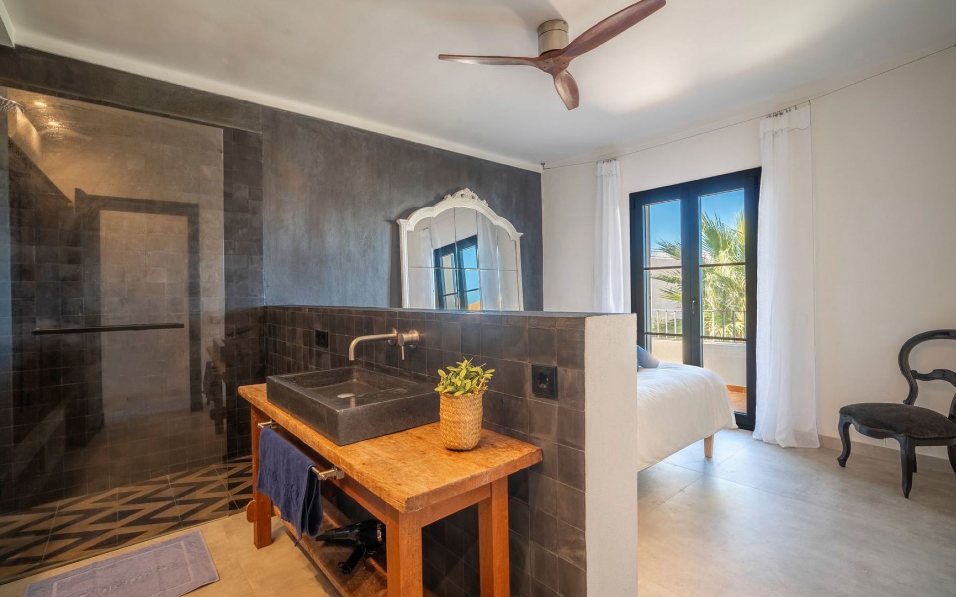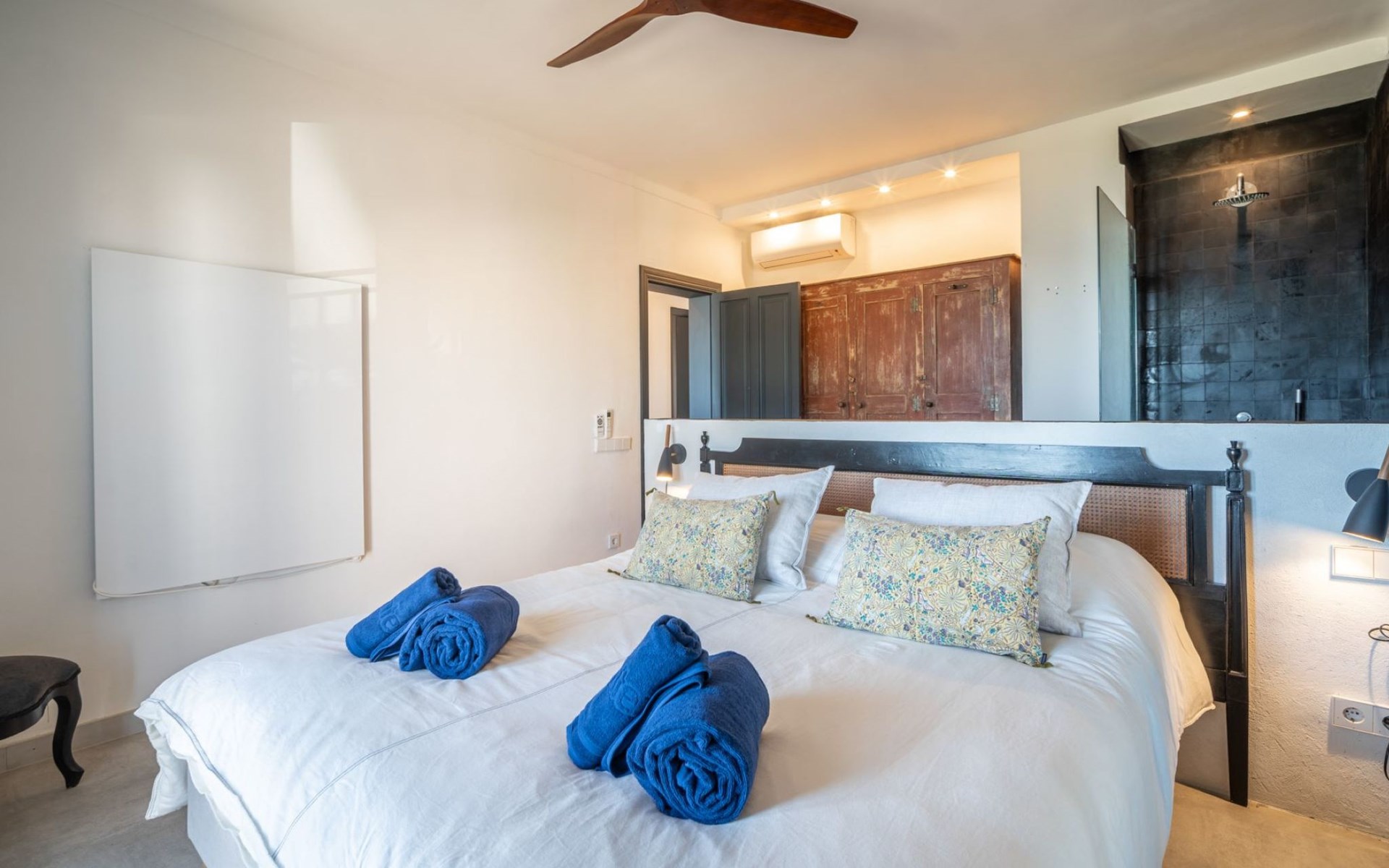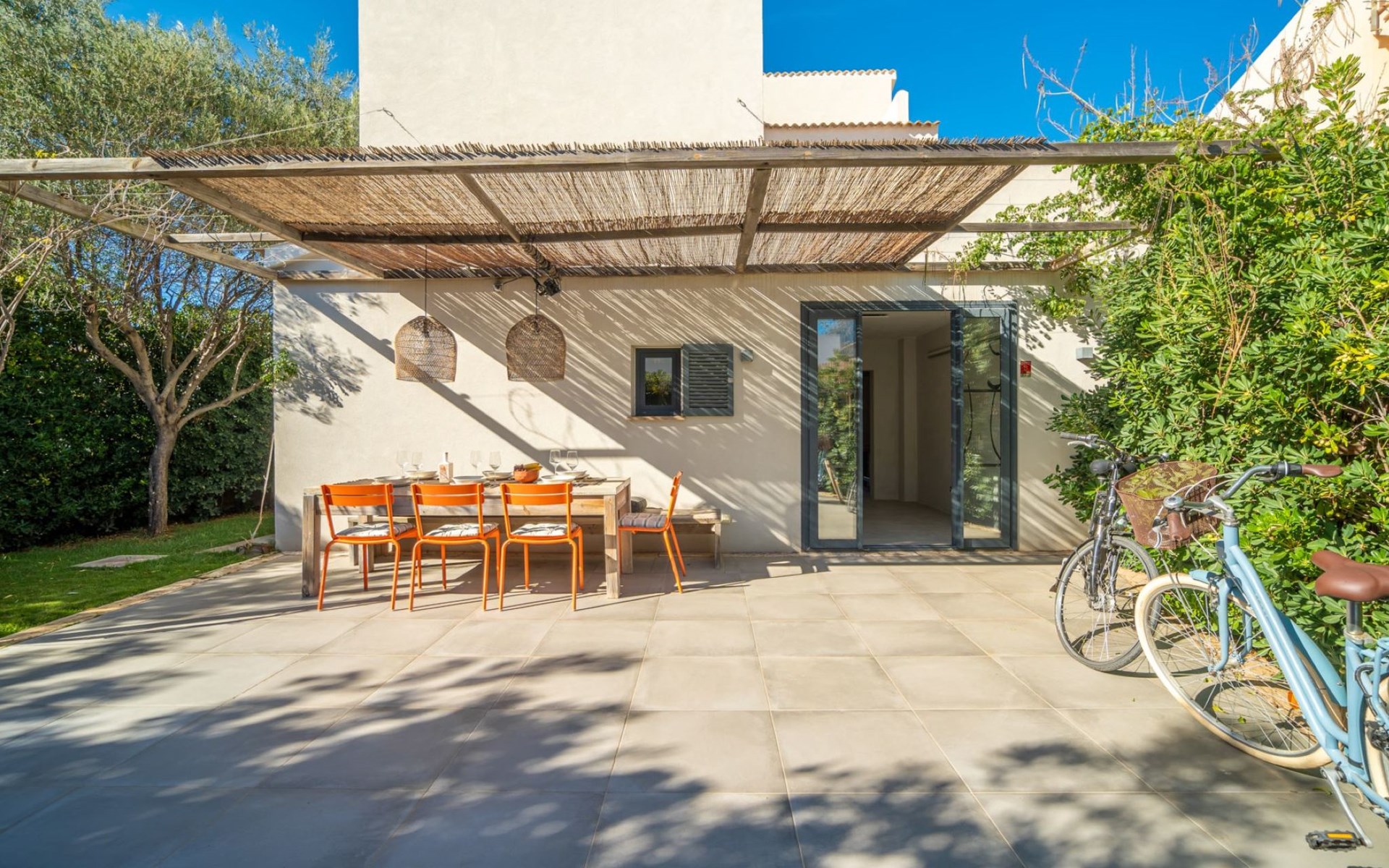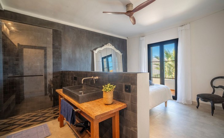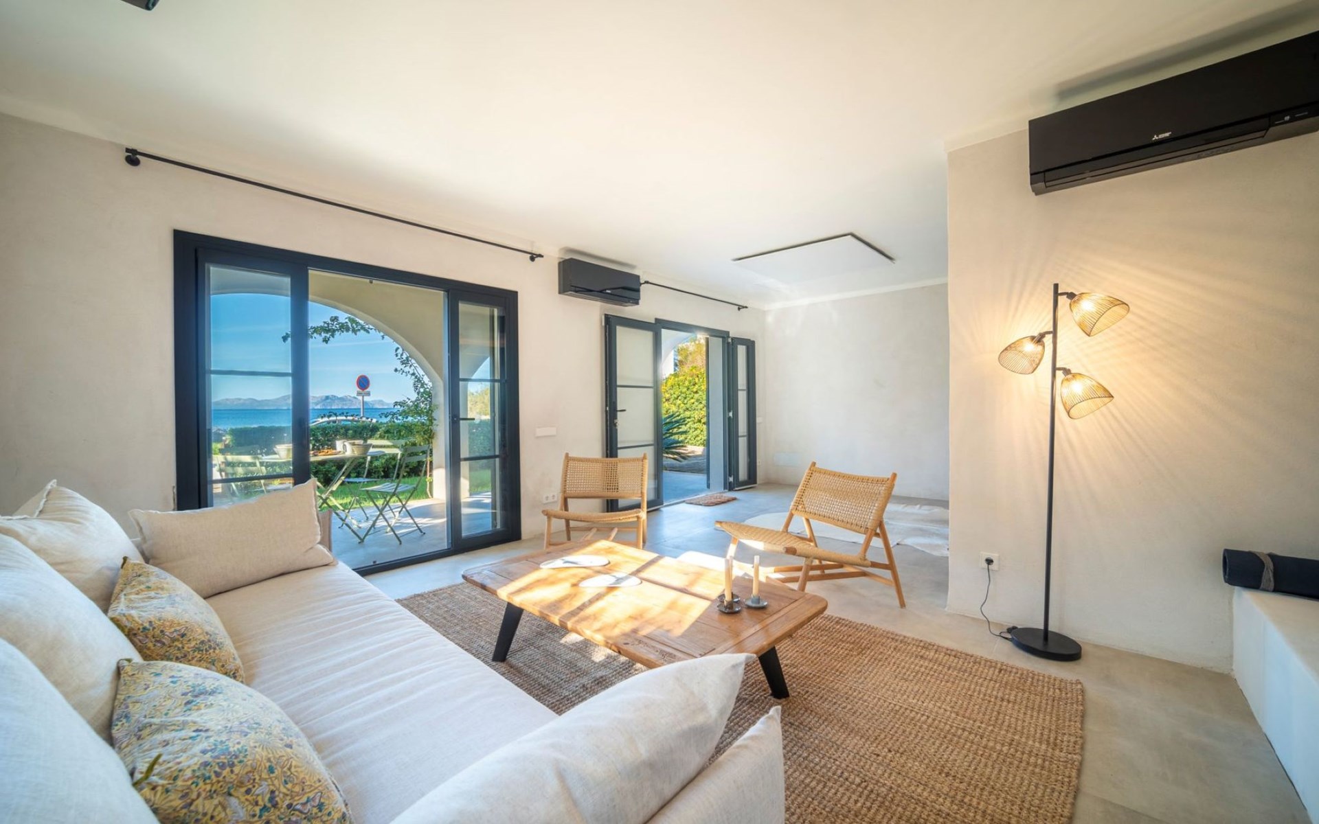 S'Estanyol 3 km from Colonia de Sant Pere: Large, modern, beautiful house "Can Popi", 2 storeys. In the district of Urbanización s'Estanyol, in the resort 1.8 km from the centre of Colònia de Sant Pere, in a quiet, sunny position residential area (villas), 15 m from the sea, 750 m from the beach, road to cross, direct access to the beach. Private: beautiful garden with lawn and wildlife garden. Outdoor shower, patio, arbour, garden furniture, barbecue. In the house: internet access, WiFi, air conditioning, washing machine. Parking at the house. Shop 1.8 km, supermarket 2 km, restaurant 1.9 km, bar 1.9 km, bakery 2.3 km, 20 minute walk to the centre, bus stop "Plaça Bassa d'en Fasol. Colonia." 2 km, sandy beach "Playa de Sa Canova" 350 m, swimming bay 15 m. Sports harbour 1.8 km, golf course (18 hole) 18 km, sailing school 2.1 km, riding stable 12 km, walking paths from the house, cycle lane 300 m. Nearby attractions: Son Serra de Marina 15 km, Betlem 5.7 km, Can Picafort 21 km, Artá 13 km, Cala Ratjada 24 km, Capdepera 20.9 km. Hiking paths: Ermita de Betlem 3.5 km, Parc Natural de Llevant 5 km, Finca Son Real 10 km. Please note: car recommended. Suitable for families, baby equipment on request (included). The owner does not accept any groups. The owner does not accept any youth groups. Loading and unloading of baggage is possible at the holiday house. Airfield 73 km from the property. Neighbourhood highly sensitive to noise. Quietness and good behaviour expected.
