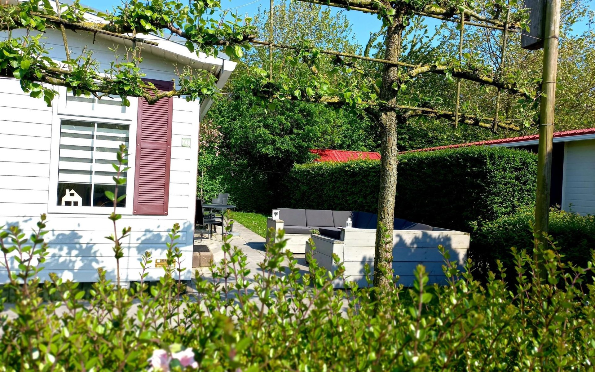 A spacious sunny south-facing garden offers plenty of opportunities to enjoy the sun. There is also a barbecue. There is a lovely lounge set for 6 to 8 people and several loose garden chairs. Garden also has a shed, where bicycles can be stored.