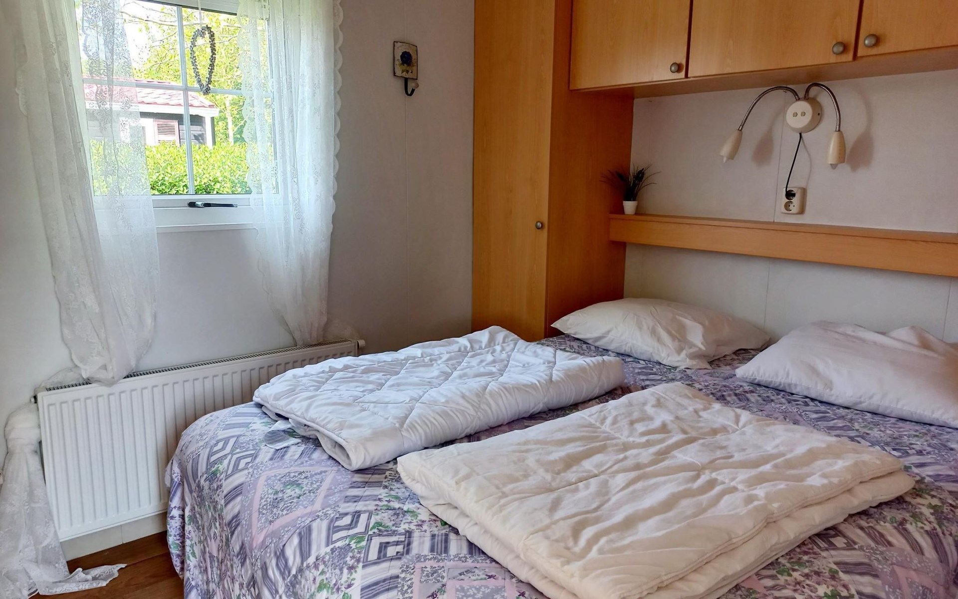 One bedroom with a double bed and one with 2 single beds.