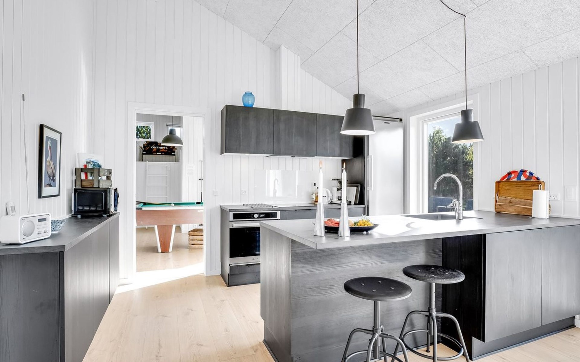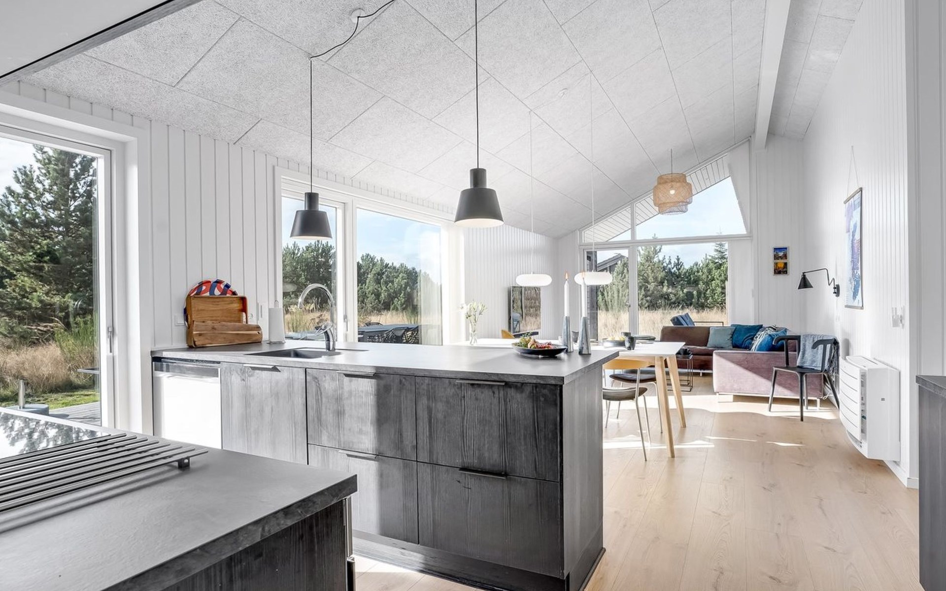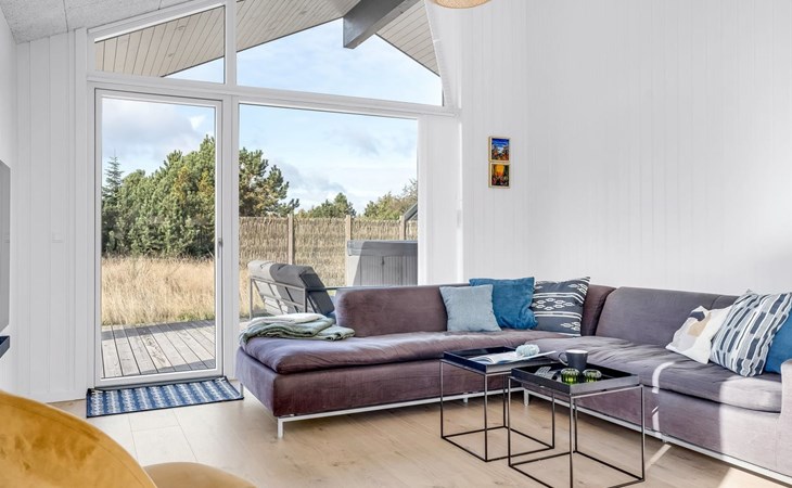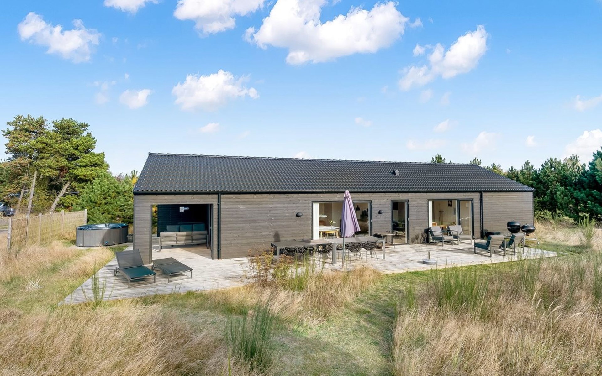 Single-family house, built in 2022. 900 m from the sea. Private: natural state property 1'398 m2. Outdoor shower, barbecue, children's playground. In the house: sauna, trampoline, washing machine, tumble dryer. Parking at the house. E-charging station. Grocery 1 km. Golf course 2 km. The owner does not accept any youth groups.