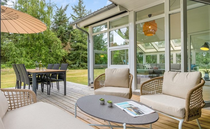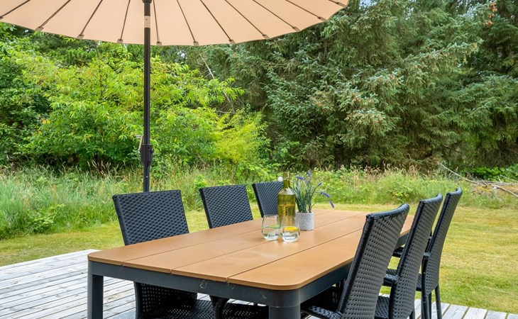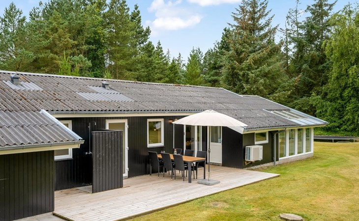 Single-family house, built in 1977. 2.5 km from the sea. Private: natural state property 2'900 m2. Terrace (45 m2), barbecue, children's playground (swing). In the house: trampoline, washing machine, tumble dryer. Carport. Grocery 2 km. The owner does not accept any youth groups.