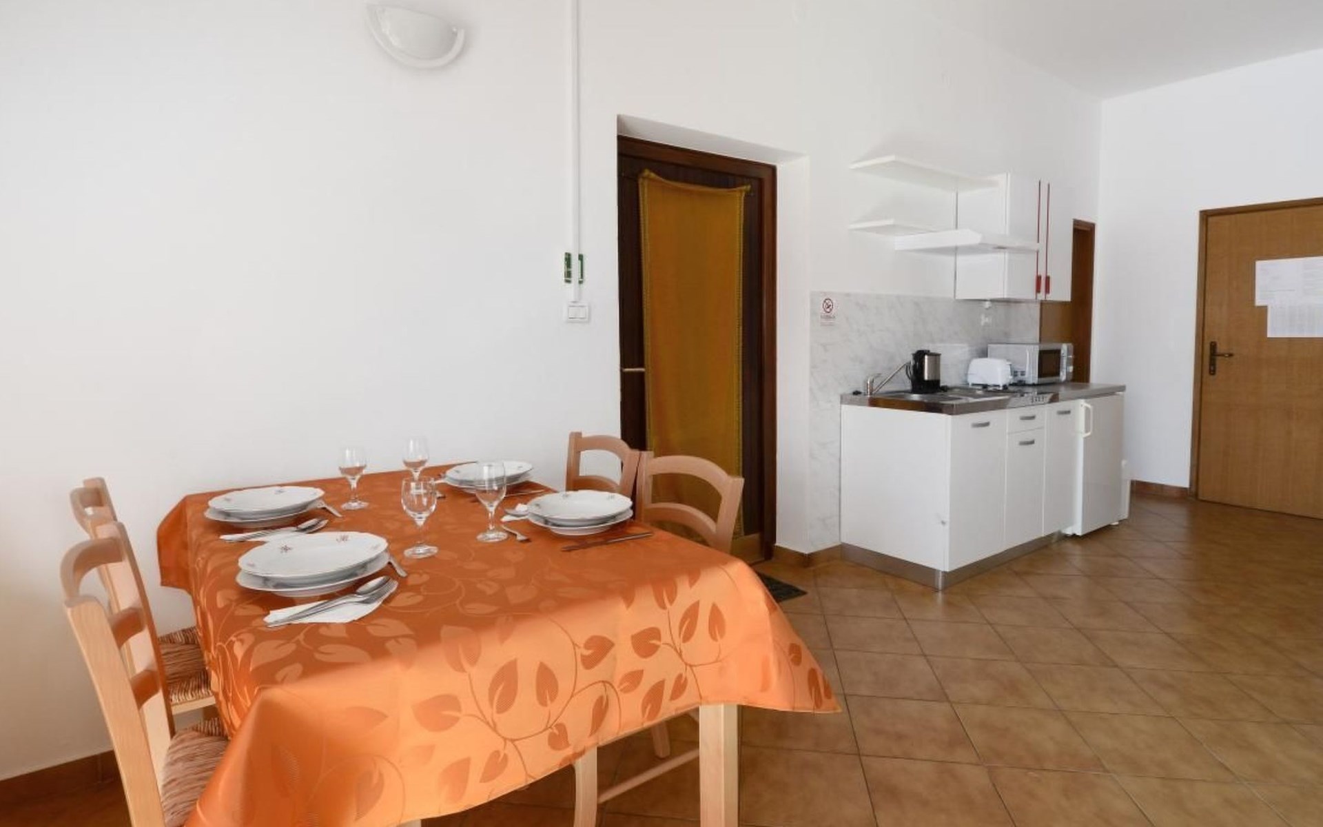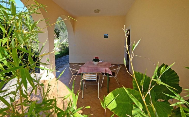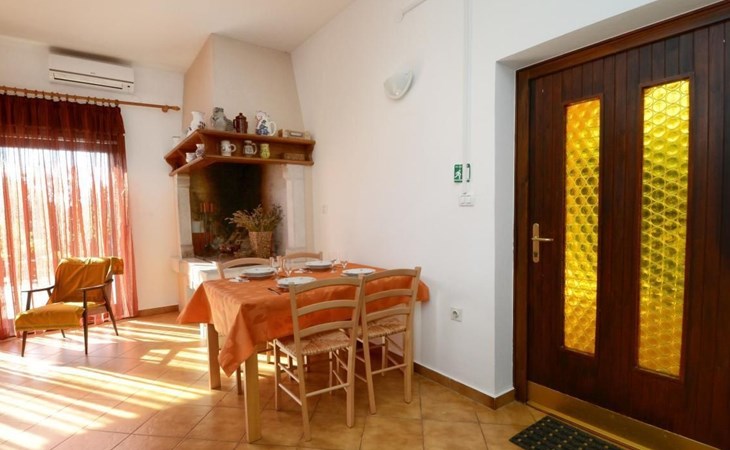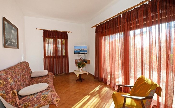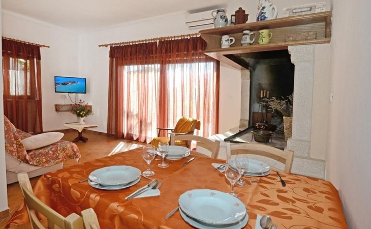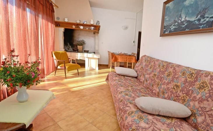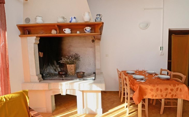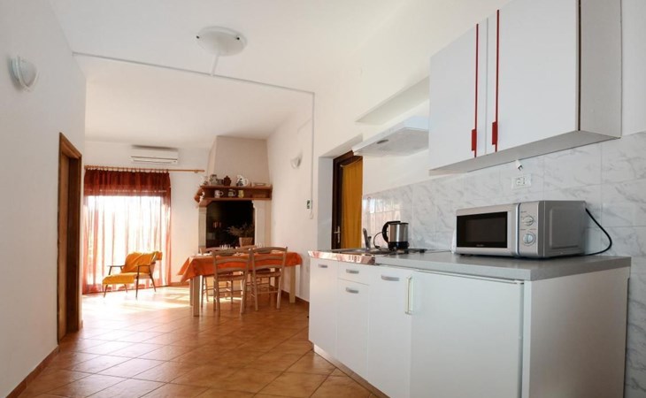 The comfortable flat with entrance and private terrace on the ground floor of the house offers a living area with sofa bed for 1 person with satellite TV, fireplace, kitchen with microwave, refrigerator, freezer, coffee maker, kettle, toaster, extractor bonnet, cooker with 2 electric burners, satellite TV, dining table with 4 seats, sofa, exit to the terrace.