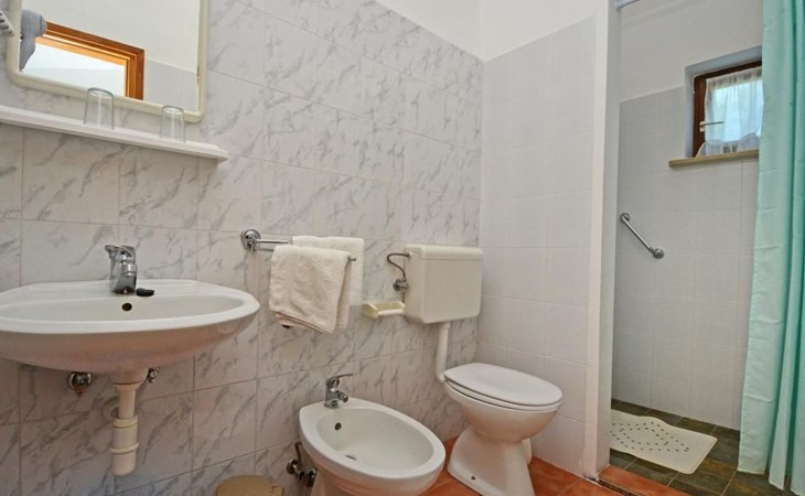 The bathroom with shower, bidet, washbasin, hairdryer and external window, two bath towels per person (changed weekly).