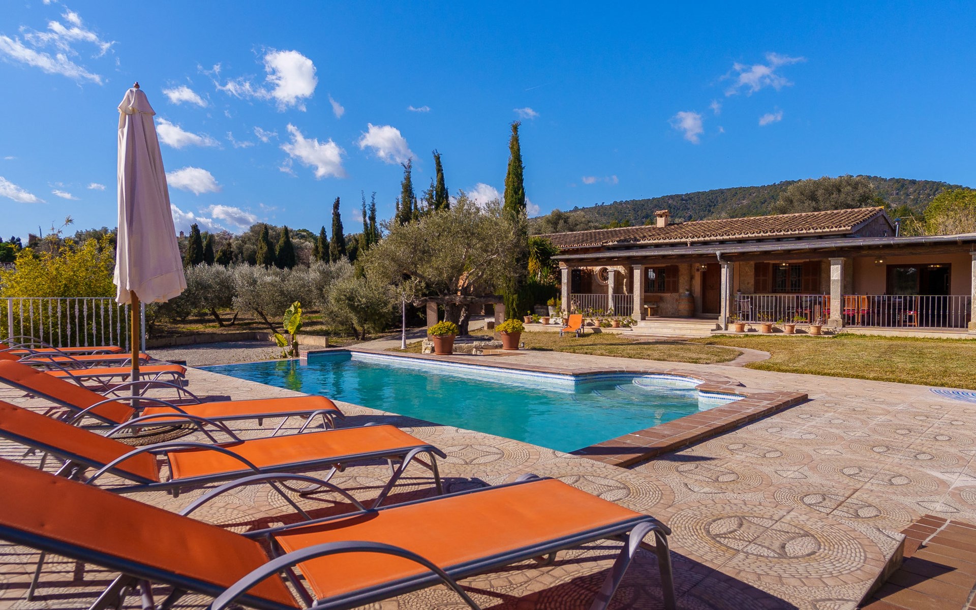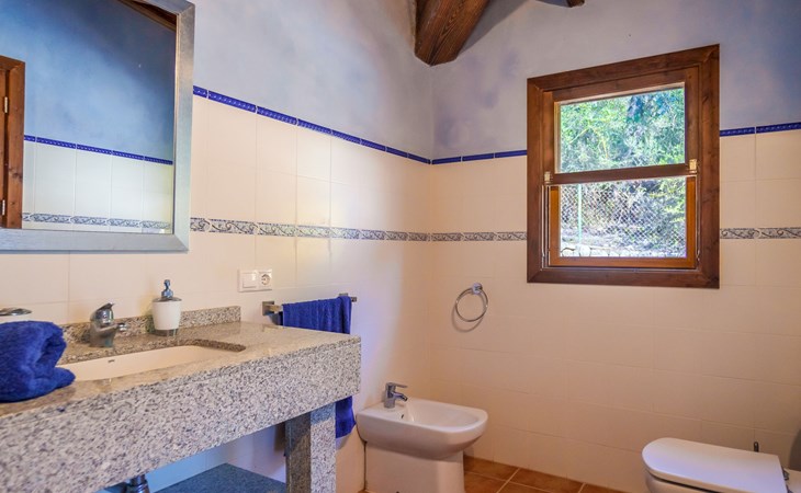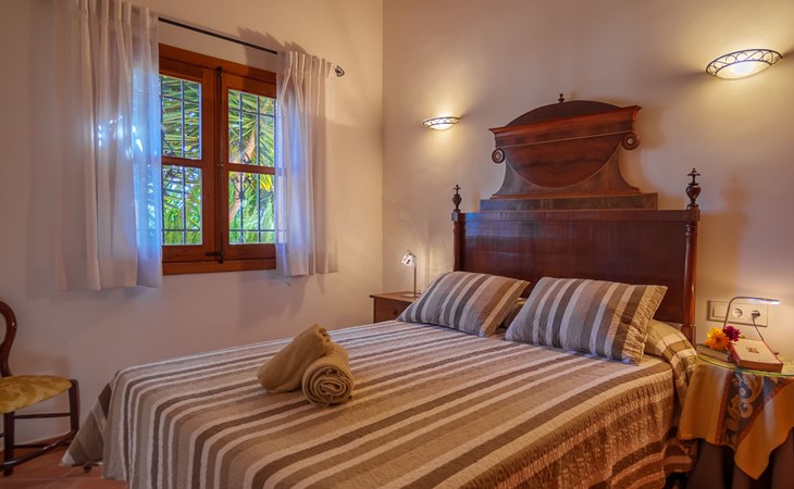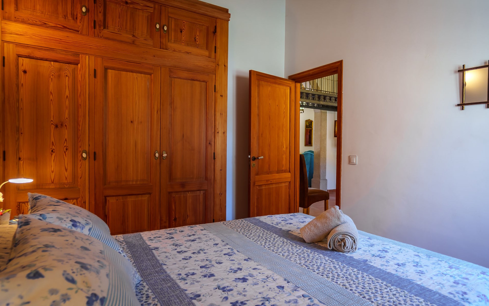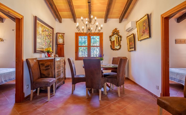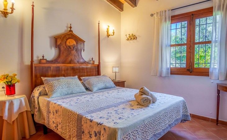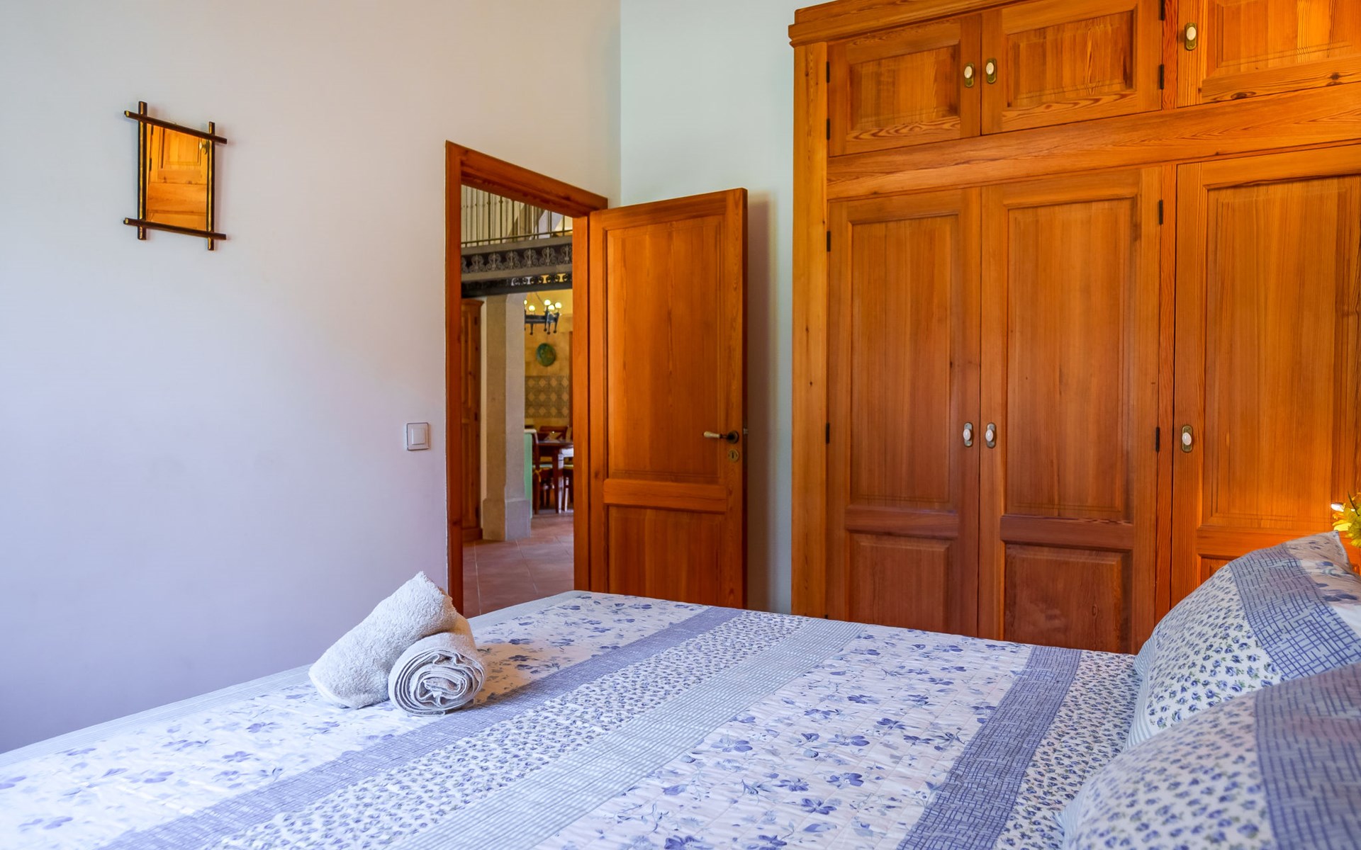 Beautiful, comfortable farm estate "Ses Comes", renovated, surrounded by trees and fields. Outside the resort, 1.1 km from the centre of Biniamar, in a quiet, sunny position, 30 km from the sea, 30 km from the beach. Private: natural state property, beautiful, well-kept garden with lawn and wildlife garden, swimming pool angular (9 x 5 m, depth 170 cm, seasonal availability: 01.Jan. - 31.Dec.). Outdoor shower, patio, arbour, pergola, garden furniture, barbecue, pool maintenance by the owner/gardener. In the house: internet access, WiFi, storage room for bicycles, air conditioning, washing machine. Parking at the house on the premises. Shop 1.7 km, supermarket 2 km, shopping centre 19 km, restaurant 1.1 km, bar 1.1 km, bakery 2 km, 17 minute walk to the centre, bus stop "Biniamar" 1.2 km, railway station "de Lloseta" 1 km, sandy beach "Port Alcúdia" 30 km. Sports harbour 32 km, golf course (18 hole) 24 km, tennis 1.3 km, sports centre 1.3 km, walking paths from the house 500 m, cycle lane. Nearby attractions: Pueblos: Selva, Lloseta, Caimari, Inca. Castillo de Alaro 17 km, Santuari de Lluc 17 km, Playa de Formentor 41 km, Valldemossa 31 km, Palma 27 km. Hiking paths: Serra de Tramuntana, Comuna de Biniamar. Please note: car recommended. Suitable for families, suitable for seniors. Object suitable for 8 adults. The owner does not accept any youth groups. Airfield 32 km from the property.