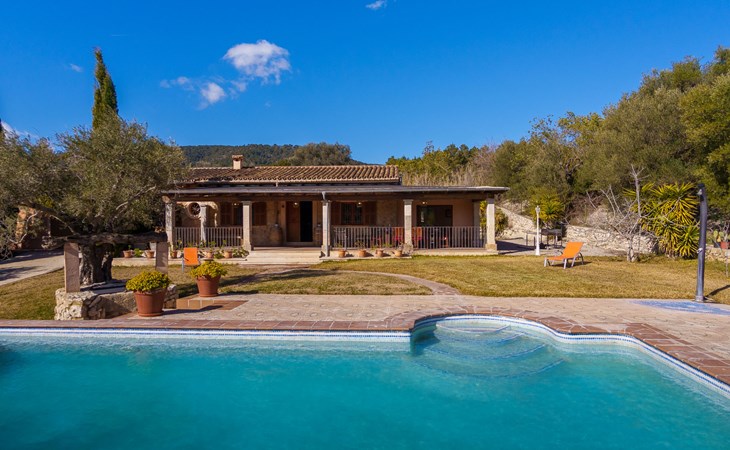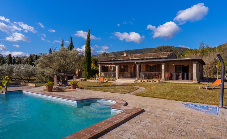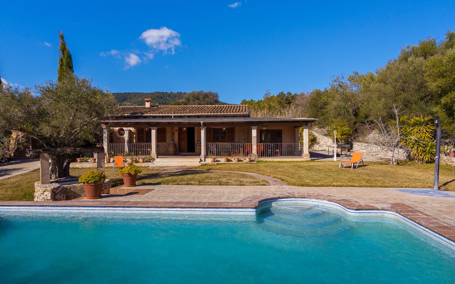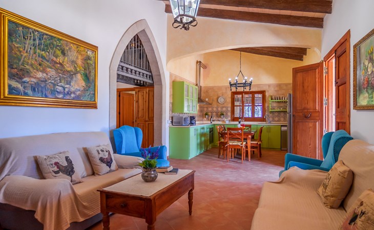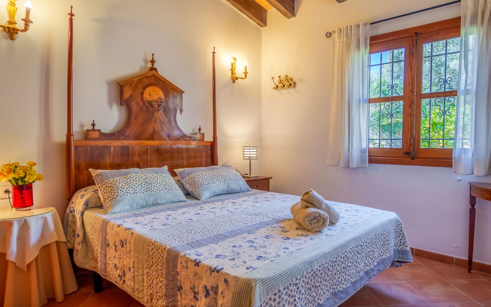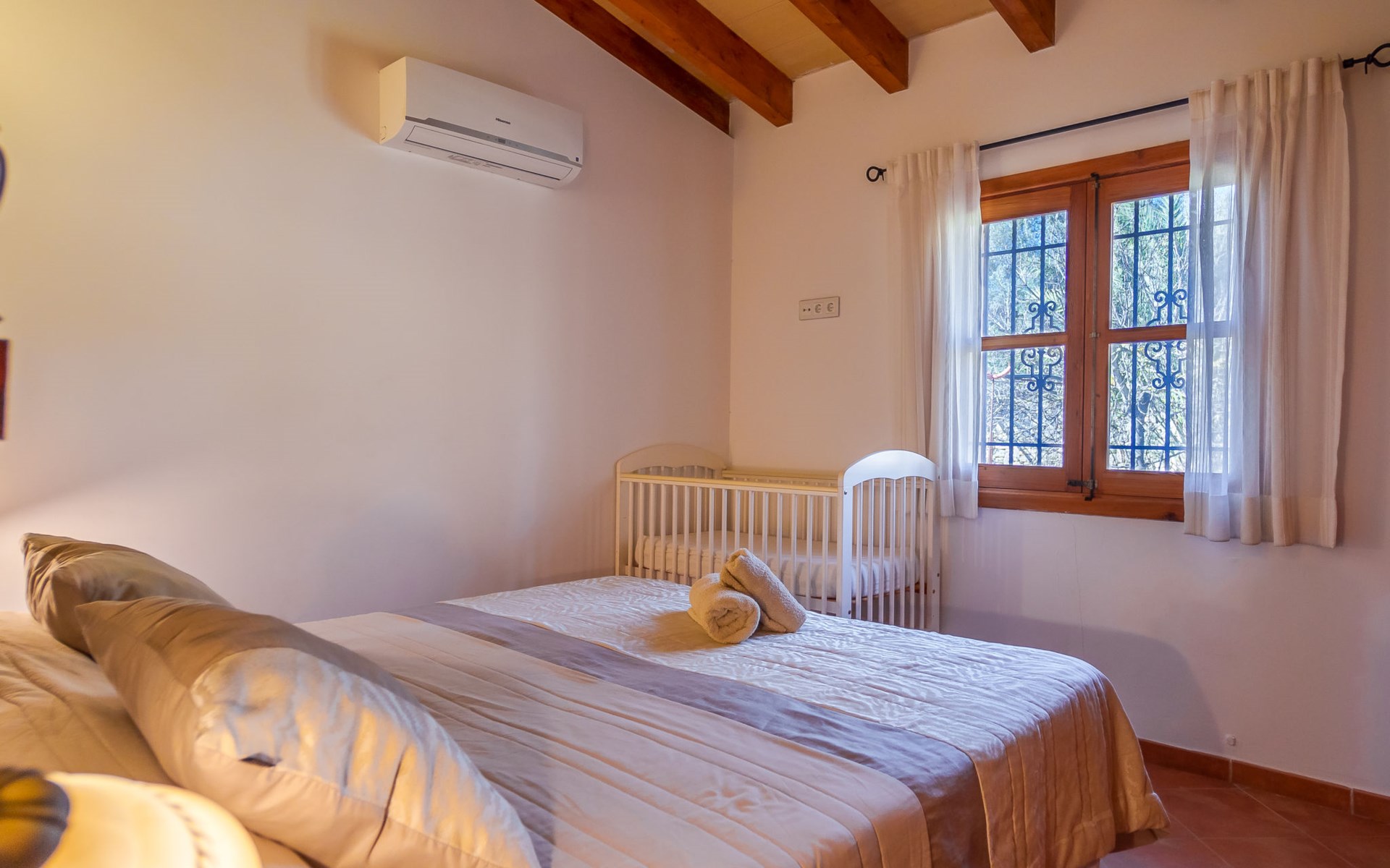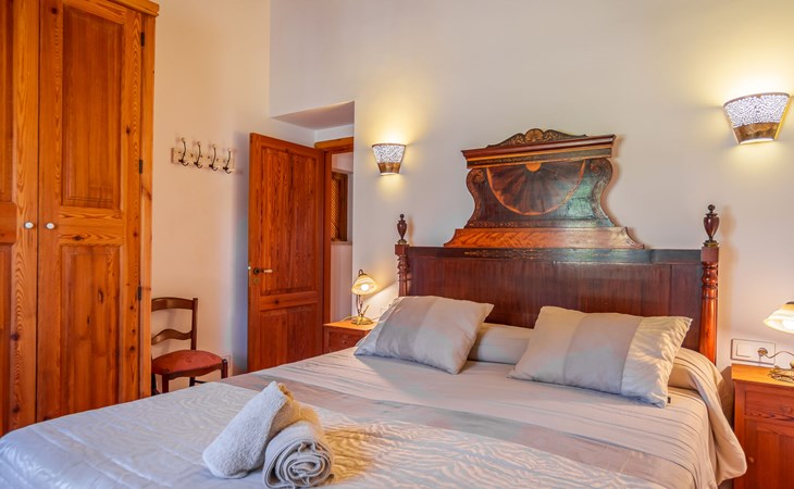Beautiful, comfortable farm estate "Ses Comes", renovated, surrounded by trees and fields. Outside the resort, 1.1 km from the centre of Biniamar, in a quiet, sunny position, 30 km from the sea, 30 km from the beach. Private: natural state property, beautiful, well-kept garden with lawn and wildlife garden, swimming pool angular (9 x 5 m, depth 170 cm, seasonal availability: 01.Jan. - 31.Dec.). Outdoor shower, patio, arbour, pergola, garden furniture, barbecue, pool maintenance by the owner/gardener. In the house: internet access, WiFi, storage room for bicycles, air conditioning, washing machine. Parking at the house on the premises. Shop 1.7 km, supermarket 2 km, shopping centre 19 km, restaurant 1.1 km, bar 1.1 km, bakery 2 km, 17 minute walk to the centre, bus stop "Biniamar" 1.2 km, railway station "de Lloseta" 1 km, sandy beach "Port Alcúdia" 30 km. Sports harbour 32 km, golf course (18 hole) 24 km, tennis 1.3 km, sports centre 1.3 km, walking paths from the house 500 m, cycle lane. Nearby attractions: Pueblos: Selva, Lloseta, Caimari, Inca. Castillo de Alaro 17 km, Santuari de Lluc 17 km, Playa de Formentor 41 km, Valldemossa 31 km, Palma 27 km. Hiking paths: Serra de Tramuntana, Comuna de Biniamar. Please note: car recommended. Suitable for families, suitable for seniors. Object suitable for 8 adults. The owner does not accept any youth groups. Airfield 32 km from the property.