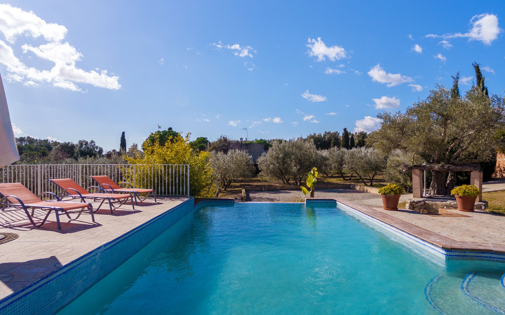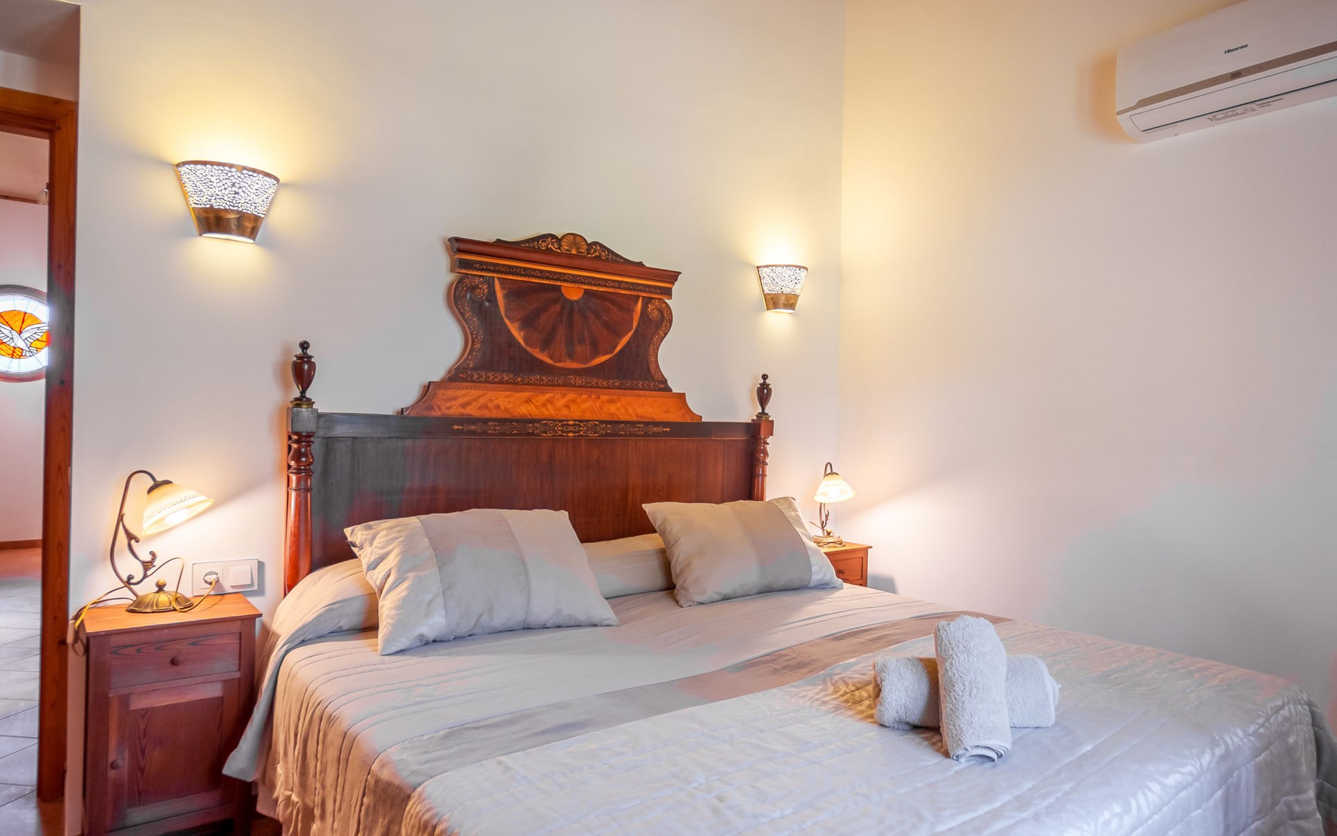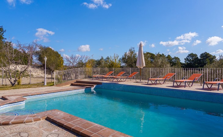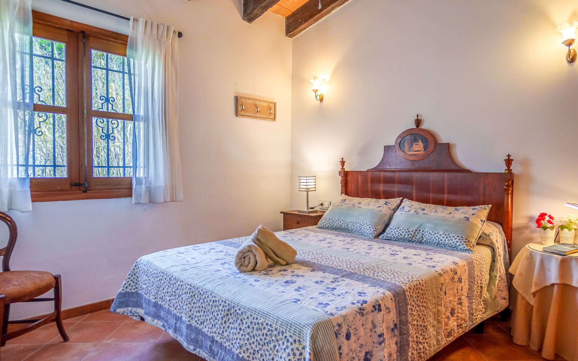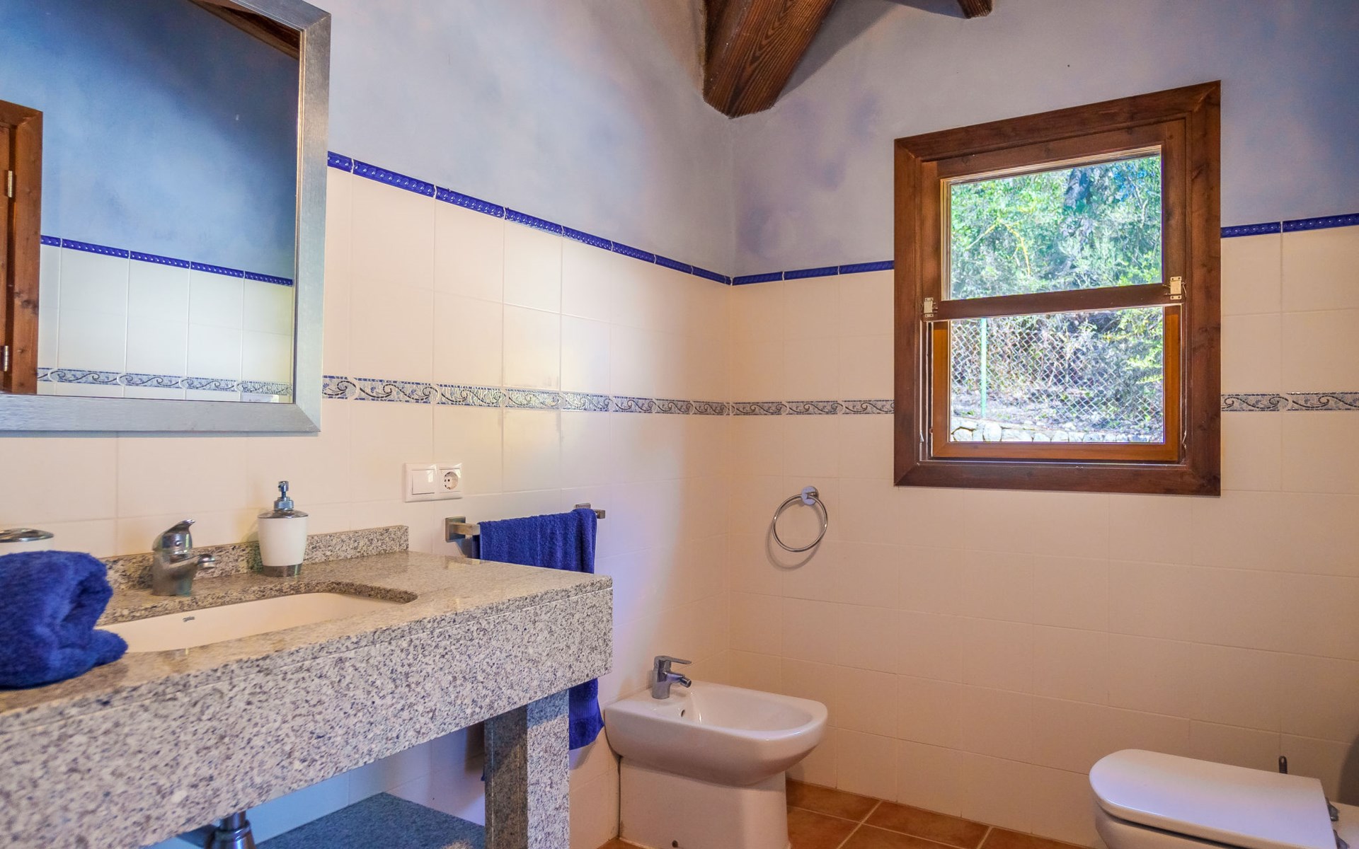 Beautiful, comfortable farm estate "Ses Comes", renovated, surrounded by trees and fields. Outside the resort, 1.1 km from the centre of Biniamar, in a quiet, sunny position, 30 km from the sea, 30 km from the beach. Private: natural state property, beautiful, well-kept garden with lawn and wildlife garden, swimming pool angular (9 x 5 m, depth 170 cm, seasonal availability: 01.Jan. - 31.Dec.). Outdoor shower, patio, arbour, pergola, garden furniture, barbecue, pool maintenance by the owner/gardener. In the house: internet access, WiFi, storage room for bicycles, air conditioning, washing machine. Parking at the house on the premises. Shop 1.7 km, supermarket 2 km, shopping centre 19 km, restaurant 1.1 km, bar 1.1 km, bakery 2 km, 17 minute walk to the centre, bus stop "Biniamar" 1.2 km, railway station "de Lloseta" 1 km, sandy beach "Port Alcúdia" 30 km. Sports harbour 32 km, golf course (18 hole) 24 km, tennis 1.3 km, sports centre 1.3 km, walking paths from the house 500 m, cycle lane. Nearby attractions: Pueblos: Selva, Lloseta, Caimari, Inca. Castillo de Alaro 17 km, Santuari de Lluc 17 km, Playa de Formentor 41 km, Valldemossa 31 km, Palma 27 km. Hiking paths: Serra de Tramuntana, Comuna de Biniamar. Please note: car recommended. Suitable for families, suitable for seniors. Object suitable for 8 adults. The owner does not accept any youth groups. Airfield 32 km from the property.