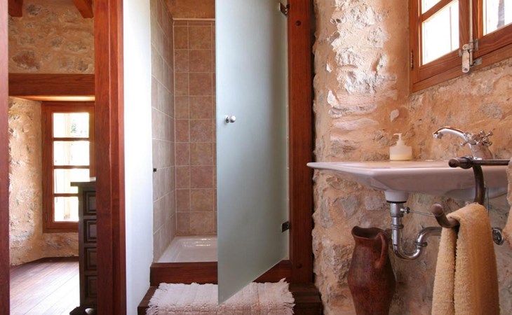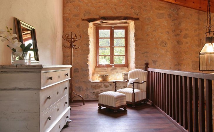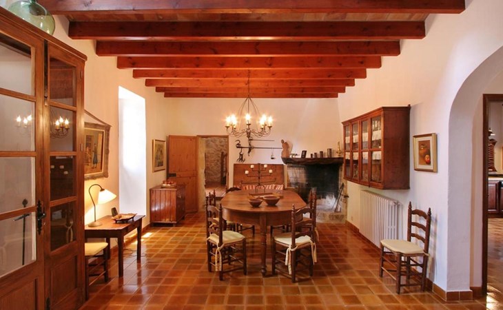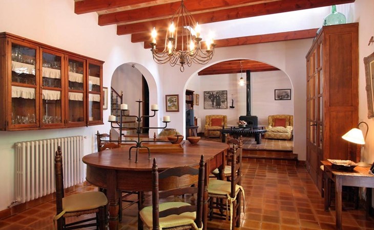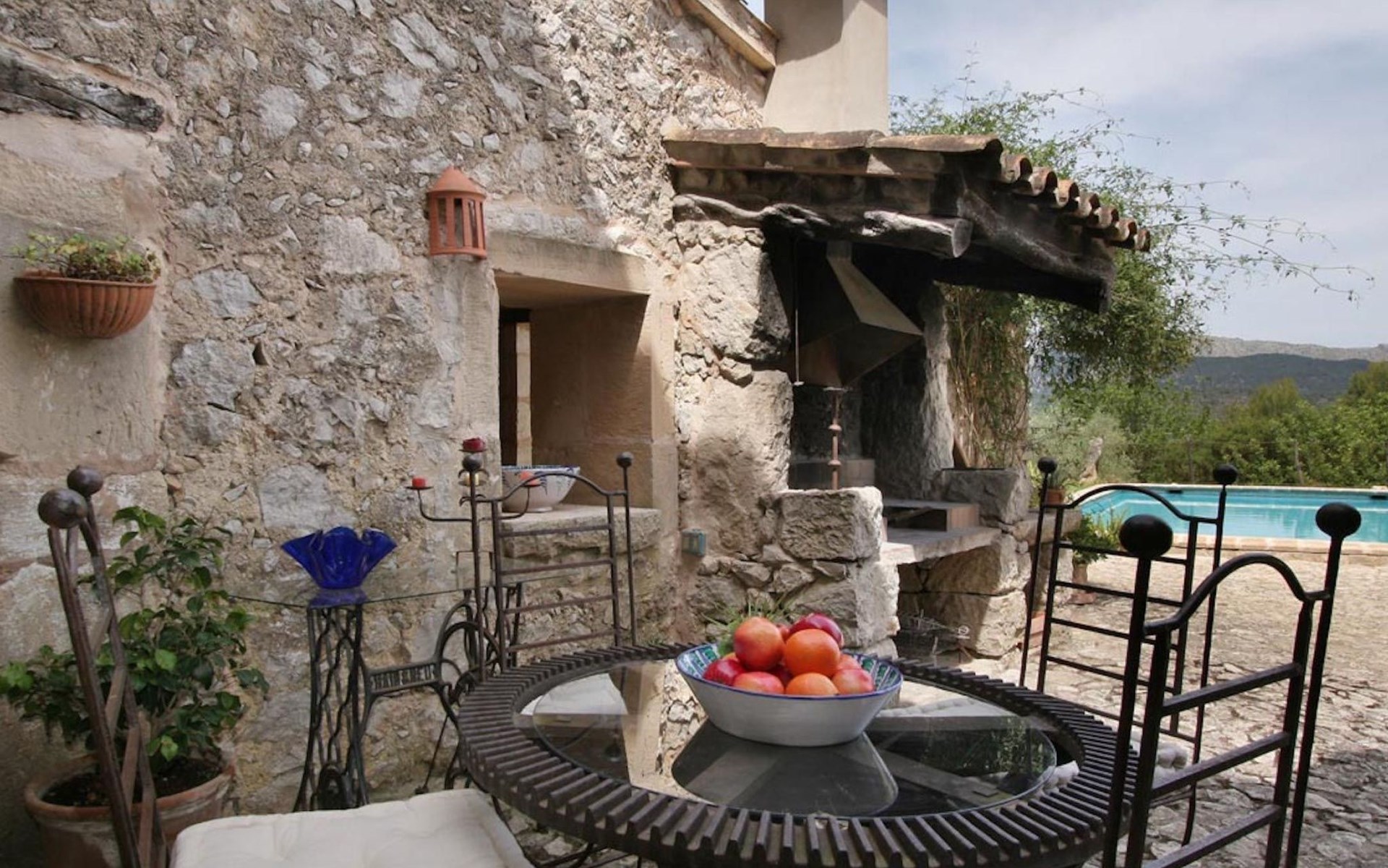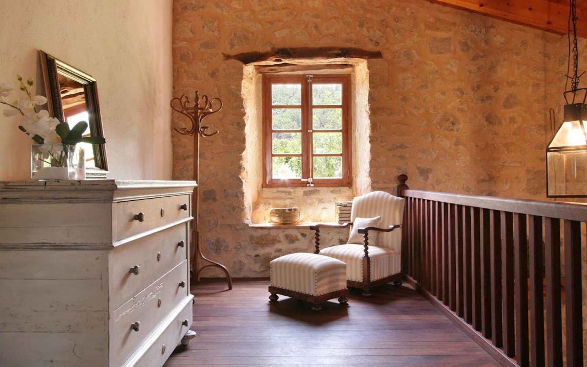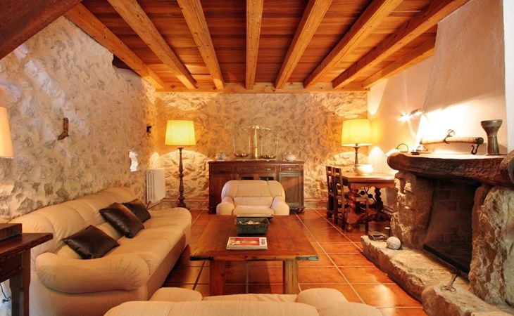The two-storey house is decorated and furnished in a rustic style, as well as other traditional elements such as exposed stone walls, wooden beams, terracotta floors and so on. Old wooden doors give access to the interior of the house, which welcomes us with a spacious dining room. A few steps lead from the dining room to a small living room fully equipped with WIFI internet connection, TV and DVD. Behind the living room is the kitchen, equipped with electric oven, gas hob, fridge/freezer, microwave and dishwasher. The washing machine is located in a small laundry room just behind the house. A separate living room with stone walls, a fireplace and a shower room complete the ground floor of the house. A wooden staircase leads to the master bedroom, which has a double bed and an en suite bathroom. This room has a wooden floor and beautiful views of the mountains. A second staircase leads to the rest of the bedrooms (two double and one twin) which share a full bathroom with bath and shower. The swimming pool has steps for easy access, and is surrounded by terraces furnished with outdoor furniture.