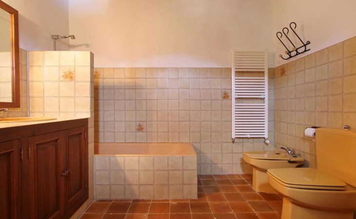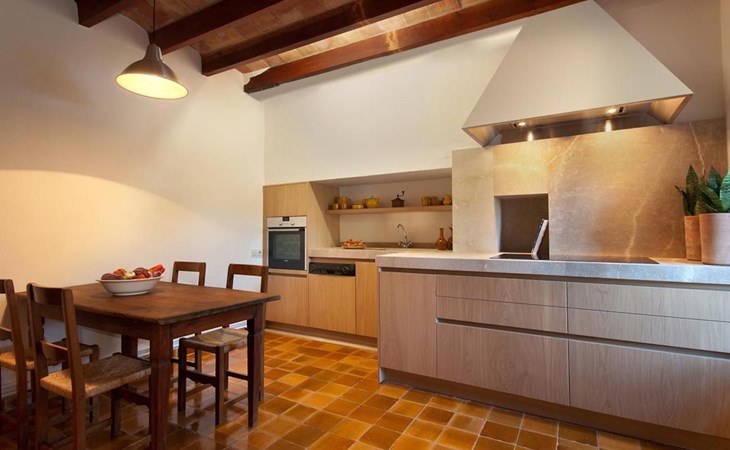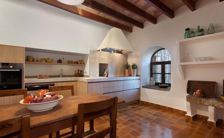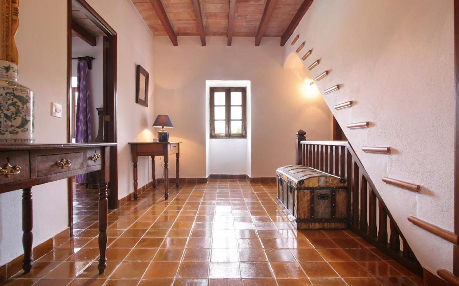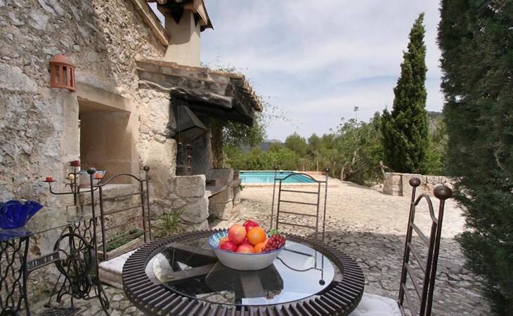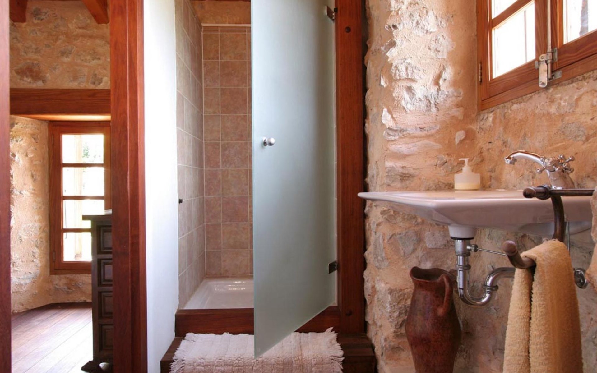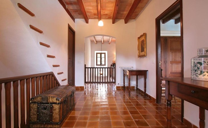 The two-storey house is decorated and furnished in a rustic style, as well as other traditional elements such as exposed stone walls, wooden beams, terracotta floors and so on. Old wooden doors give access to the interior of the house, which welcomes us with a spacious dining room. A few steps lead from the dining room to a small living room fully equipped with WIFI internet connection, TV and DVD. Behind the living room is the kitchen, equipped with electric oven, gas hob, fridge/freezer, microwave and dishwasher. The washing machine is located in a small laundry room just behind the house. A separate living room with stone walls, a fireplace and a shower room complete the ground floor of the house. A wooden staircase leads to the master bedroom, which has a double bed and an en suite bathroom. This room has a wooden floor and beautiful views of the mountains. A second staircase leads to the rest of the bedrooms (two double and one twin) which share a full bathroom with bath and shower. The swimming pool has steps for easy access, and is surrounded by terraces furnished with outdoor furniture.