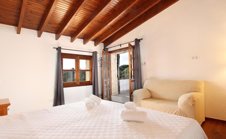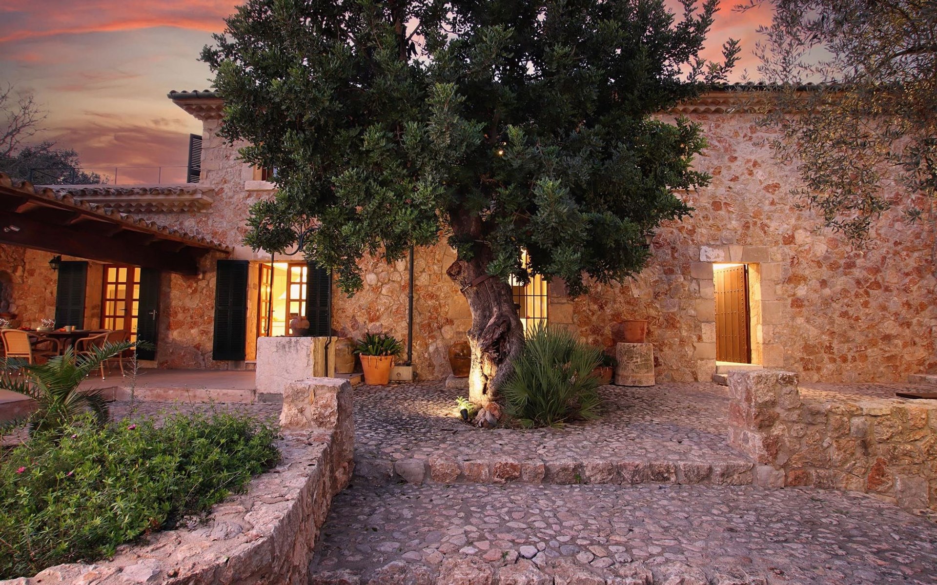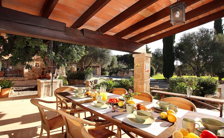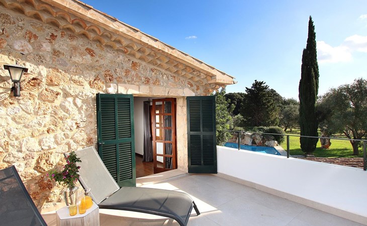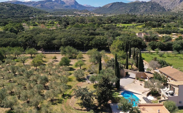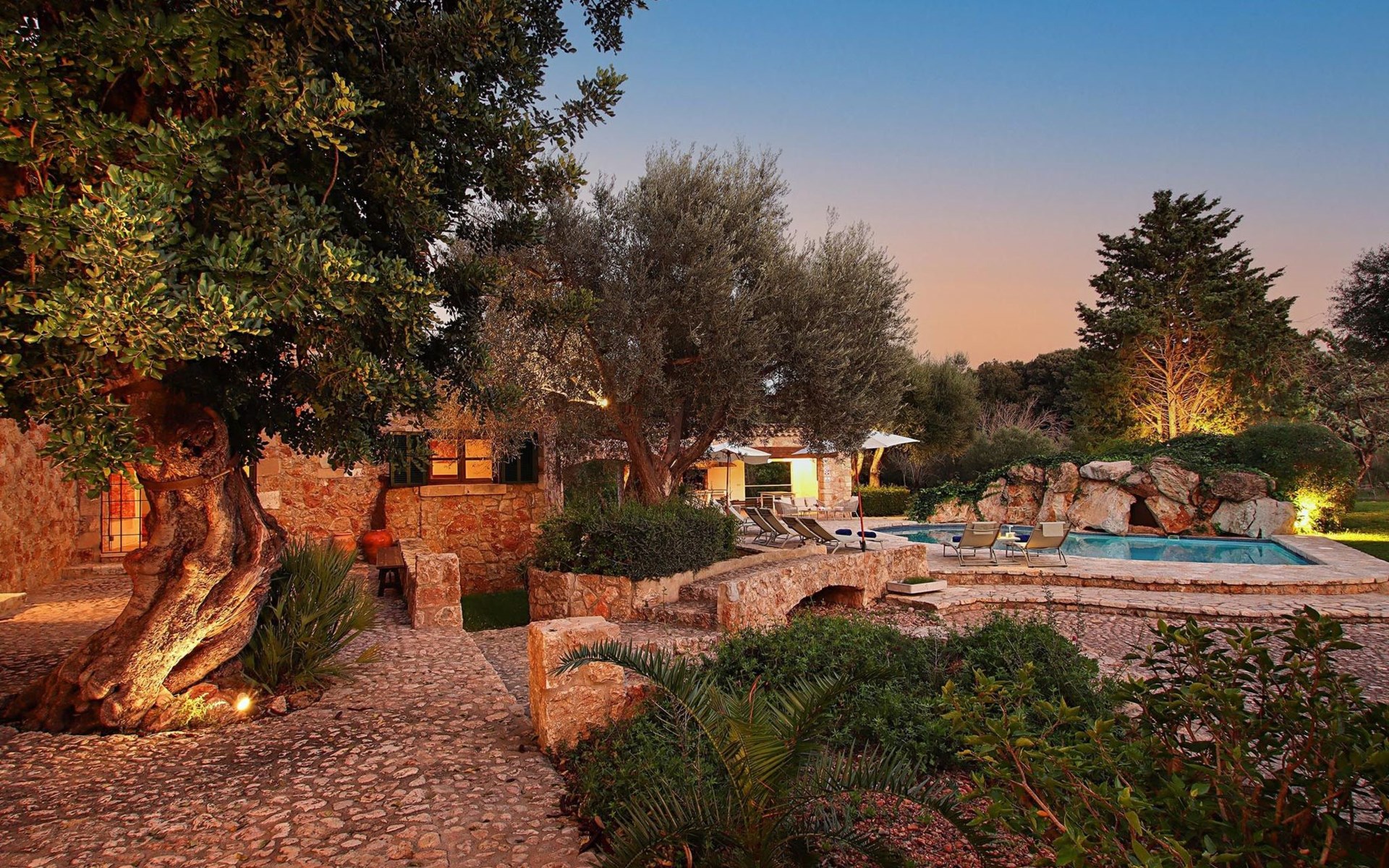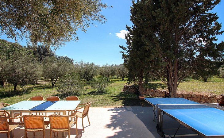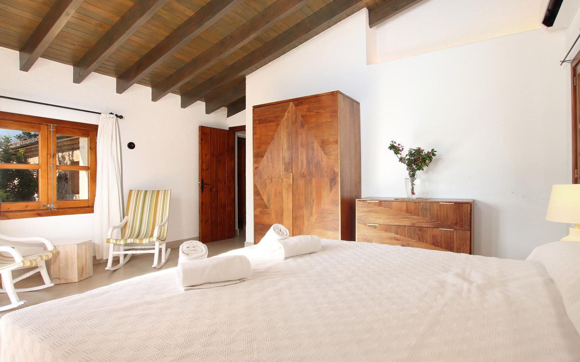 The Bennassar farm stands out for its exterior, located in a field of olive trees, and for its stone terraces, in which a centenary carob tree is located that offers a refreshing shade to whoever wants it. Next to it is a stone bridge that crosses a small but charming pond with plants, and the pool, asymmetrically shaped and large. There is a large outdoor area with several loungers where you can relax and sunbathe, as well as a practical covered barbecue area where you can enjoy a good grill.