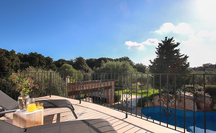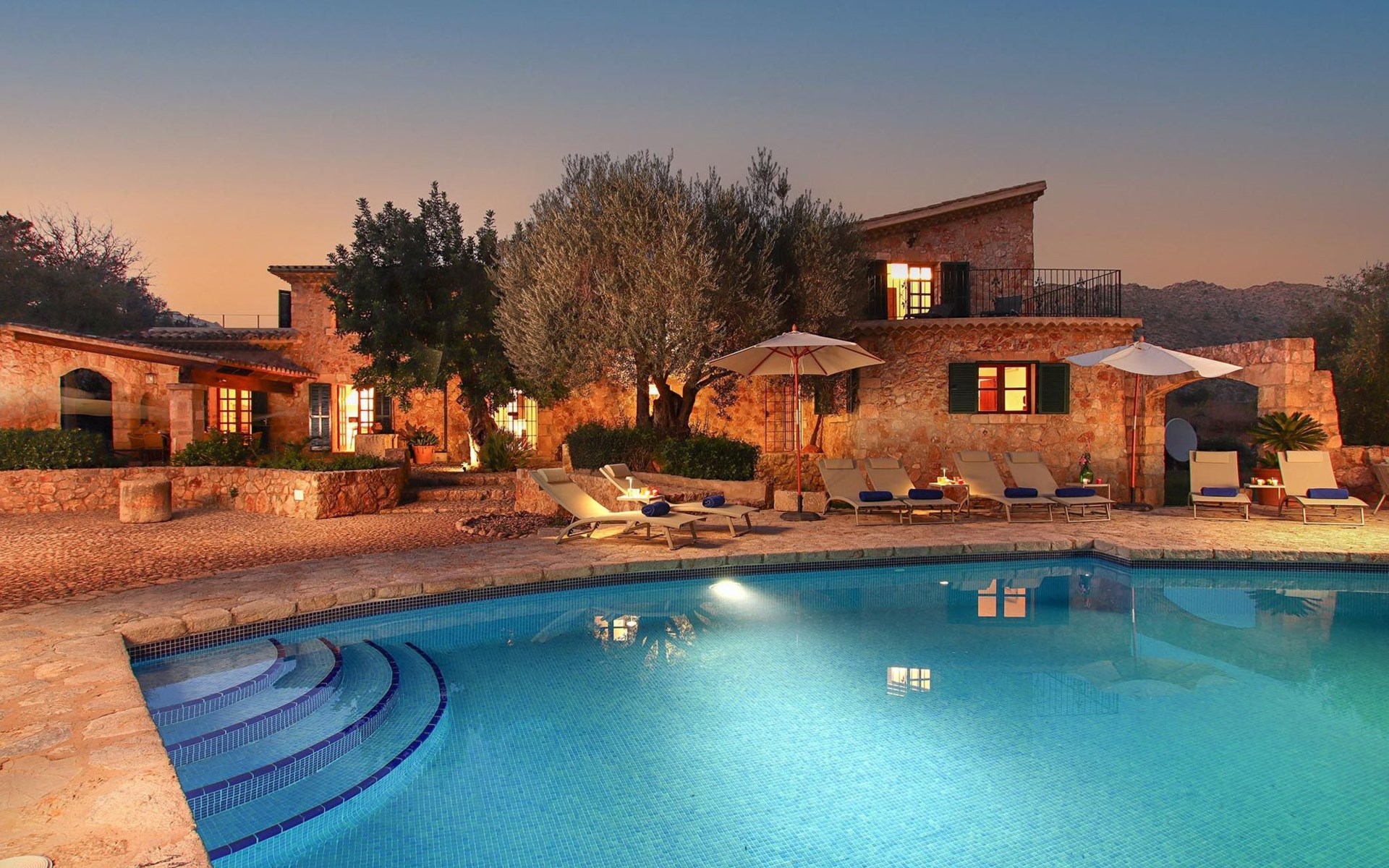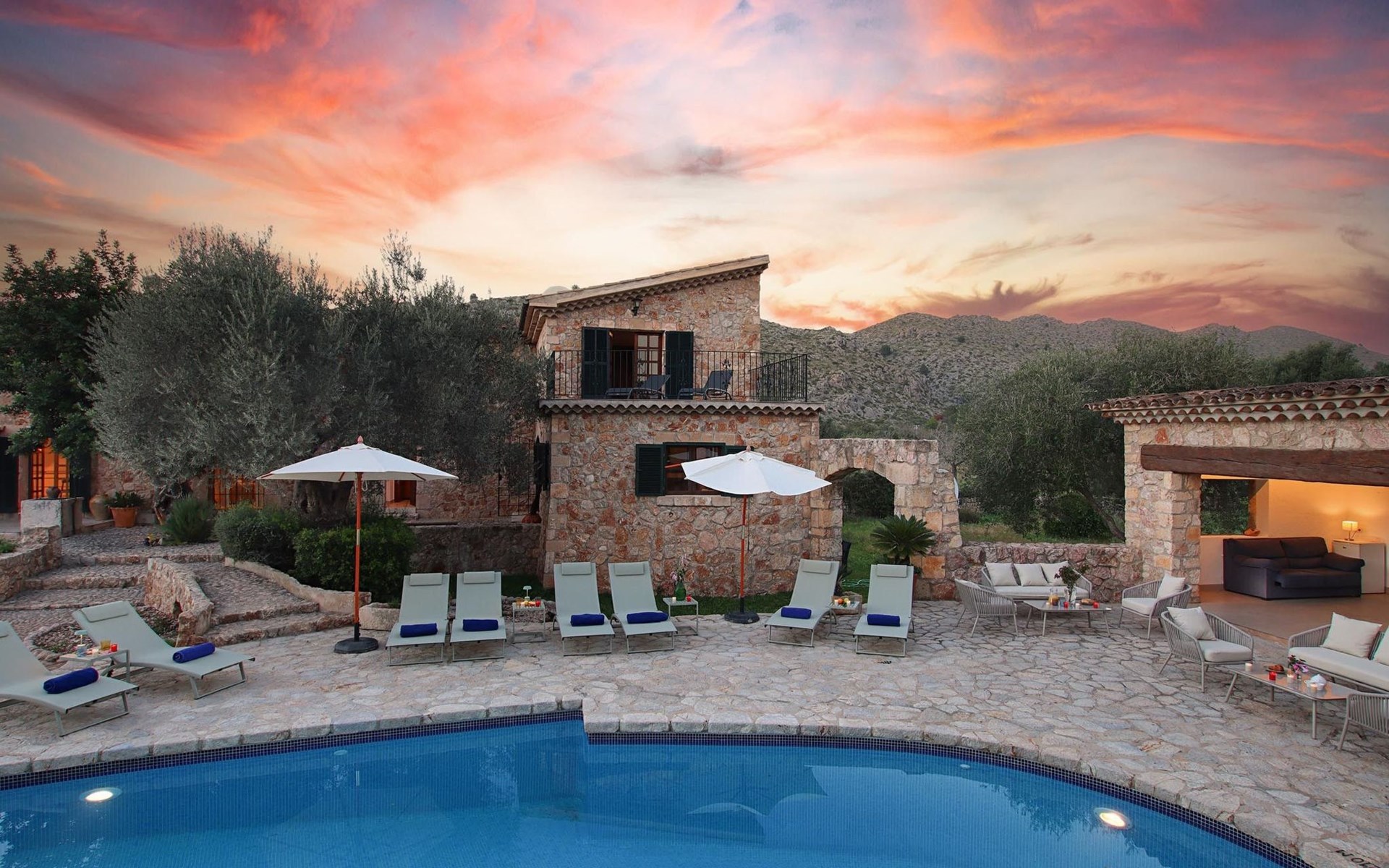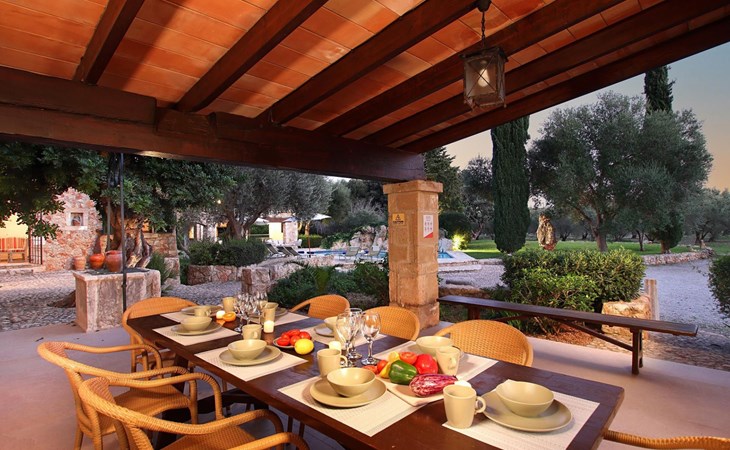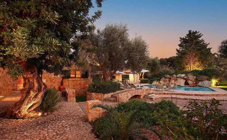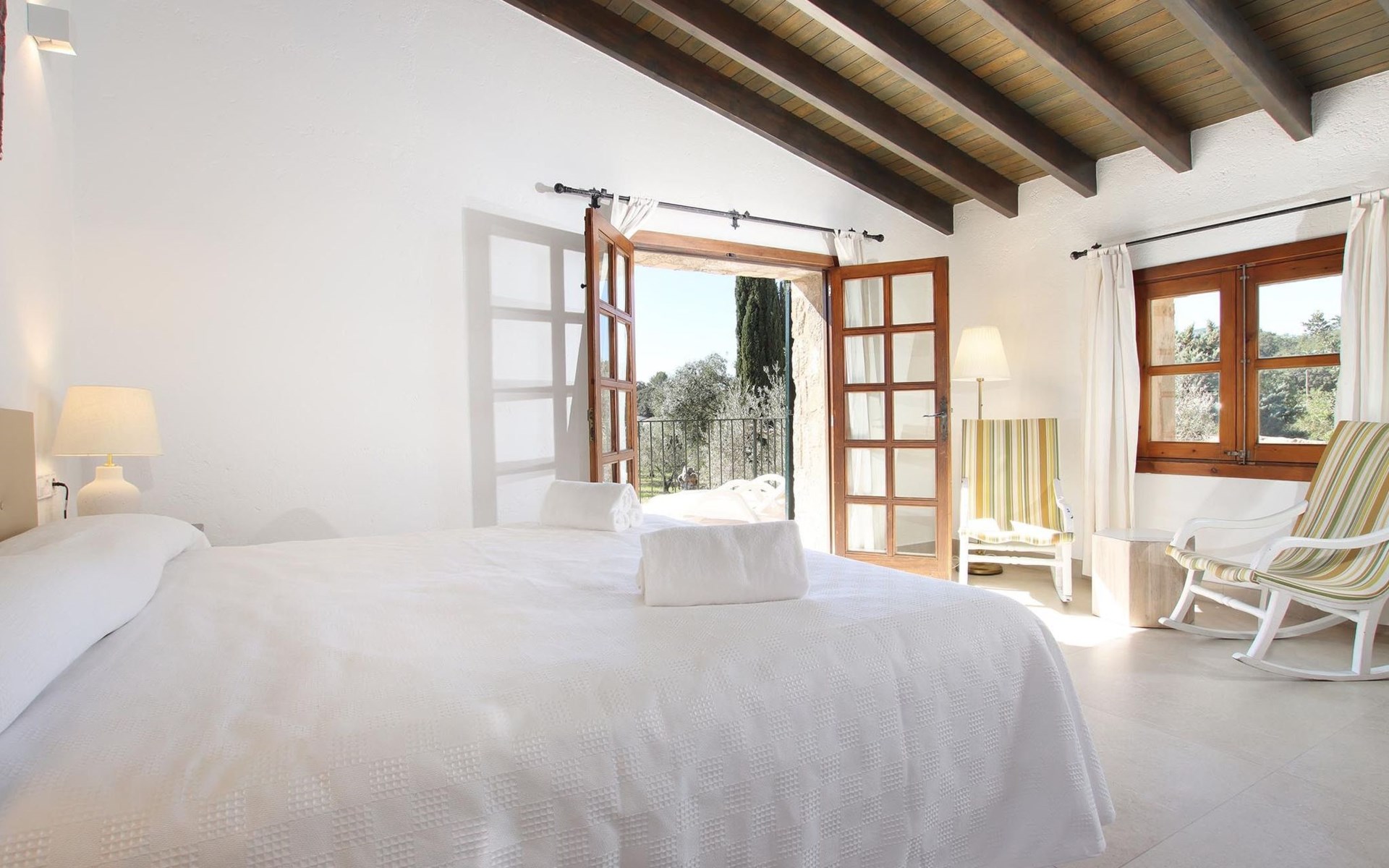 The Bennassar farm stands out for its exterior, located in a field of olive trees, and for its stone terraces, in which a centenary carob tree is located that offers a refreshing shade to whoever wants it. Next to it is a stone bridge that crosses a small but charming pond with plants, and the pool, asymmetrically shaped and large. There is a large outdoor area with several loungers where you can relax and sunbathe, as well as a practical covered barbecue area where you can enjoy a good grill.