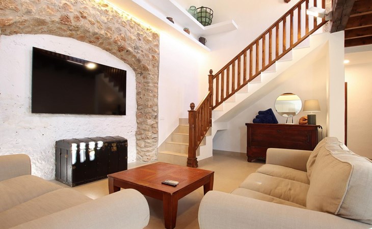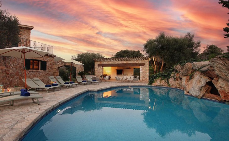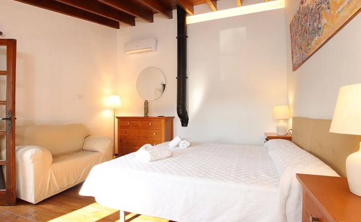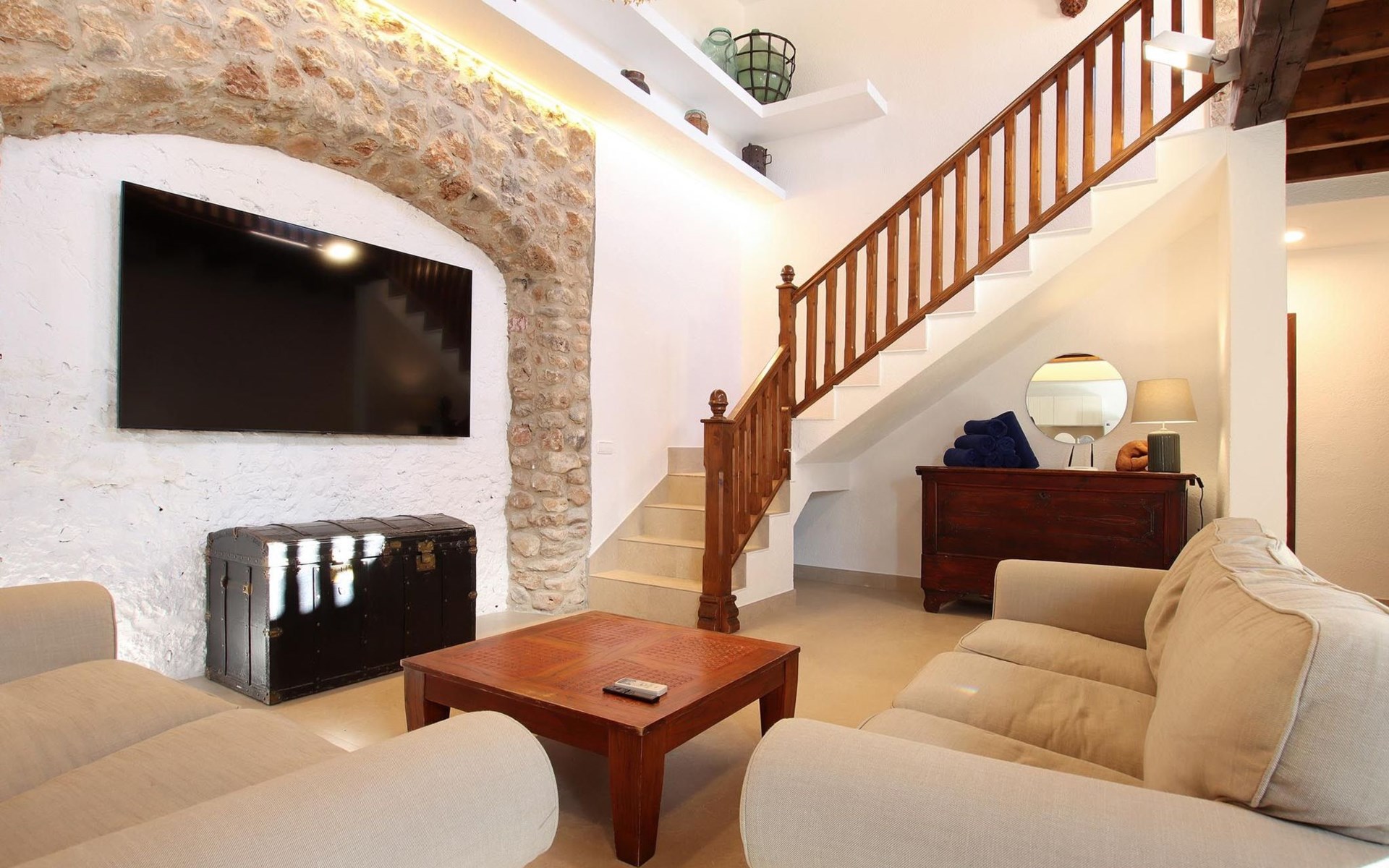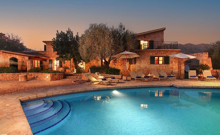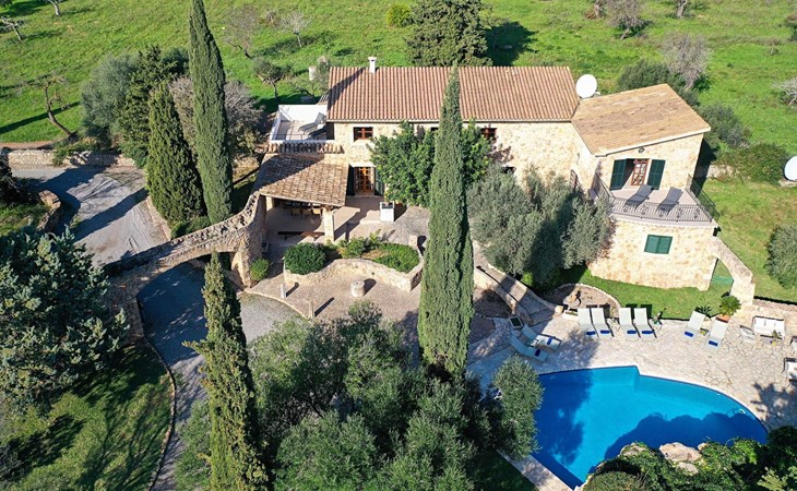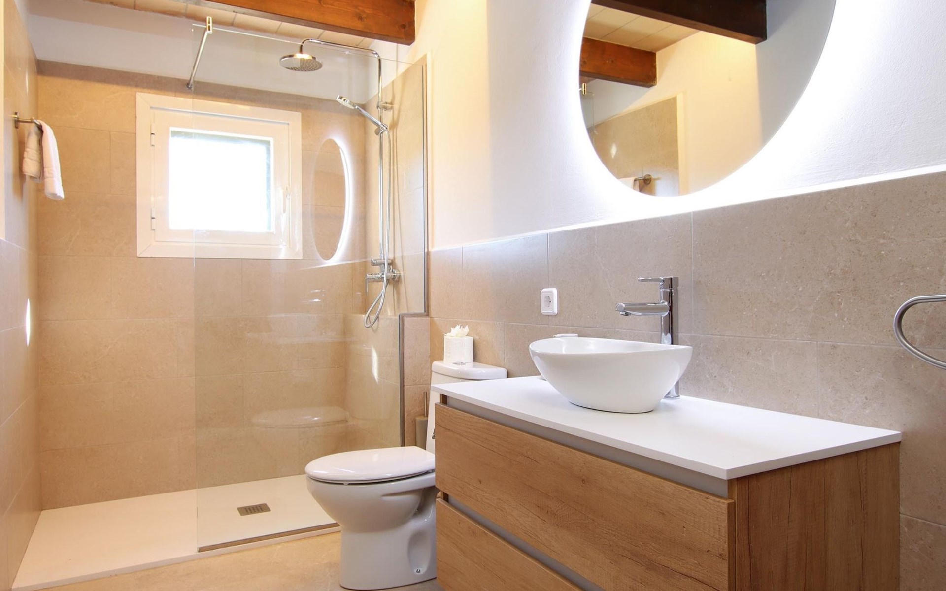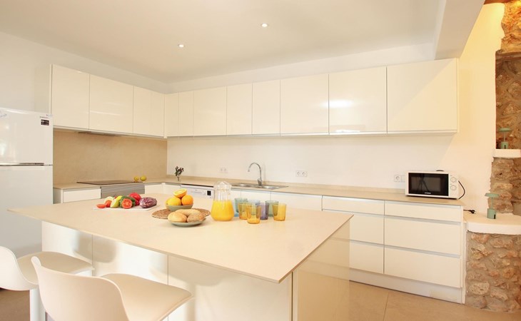 The Bennassar farm stands out for its exterior, located in a field of olive trees, and for its stone terraces, in which a centenary carob tree is located that offers a refreshing shade to whoever wants it. Next to it is a stone bridge that crosses a small but charming pond with plants, and the pool, asymmetrically shaped and large. There is a large outdoor area with several loungers where you can relax and sunbathe, as well as a practical covered barbecue area where you can enjoy a good grill.