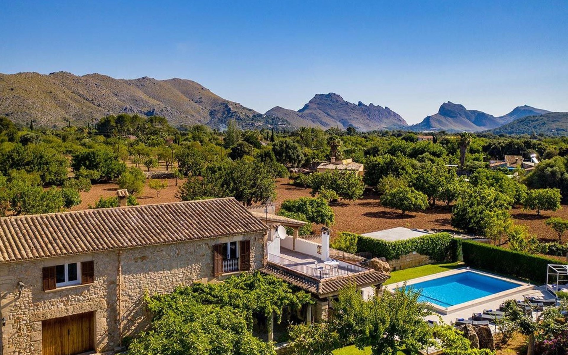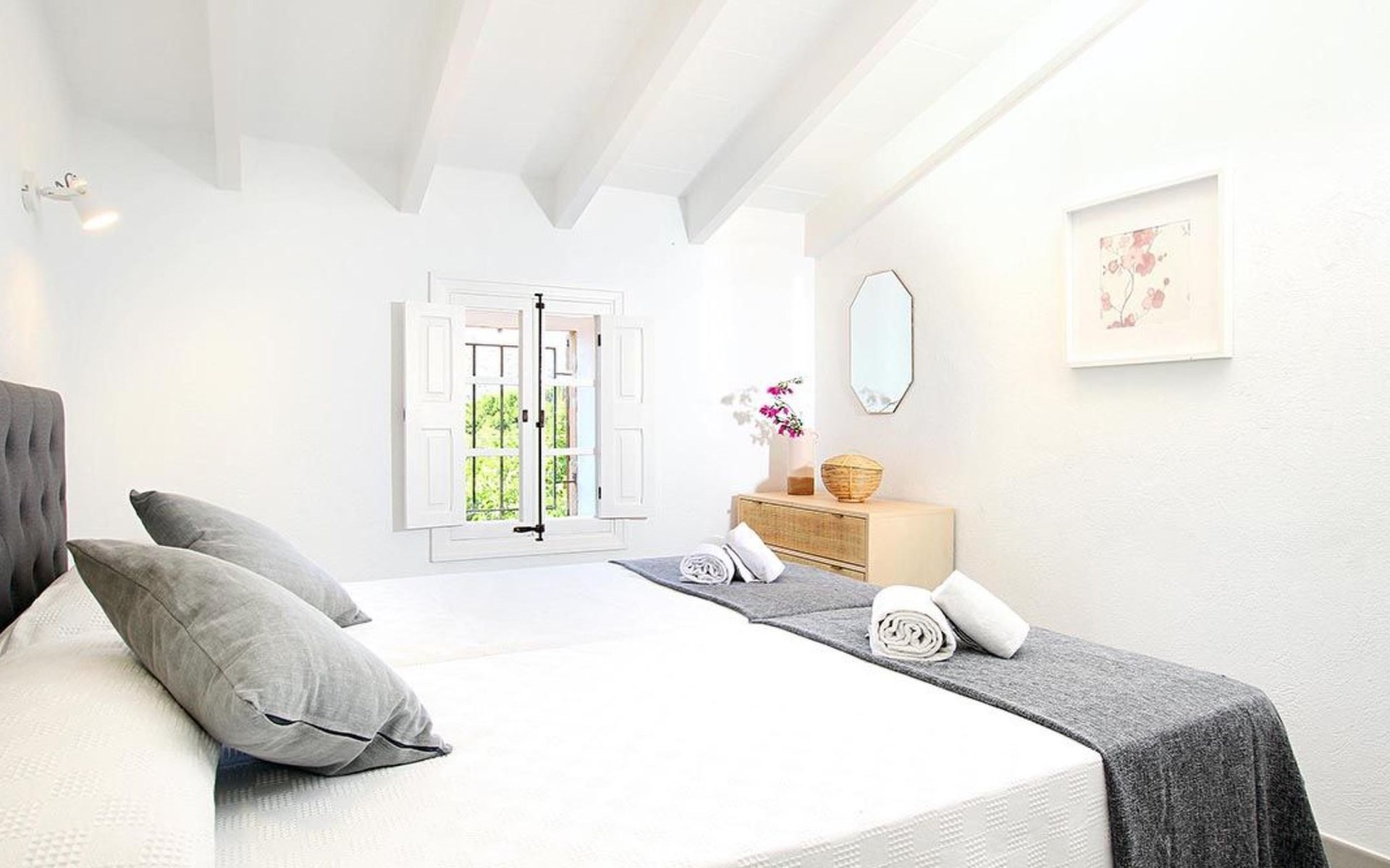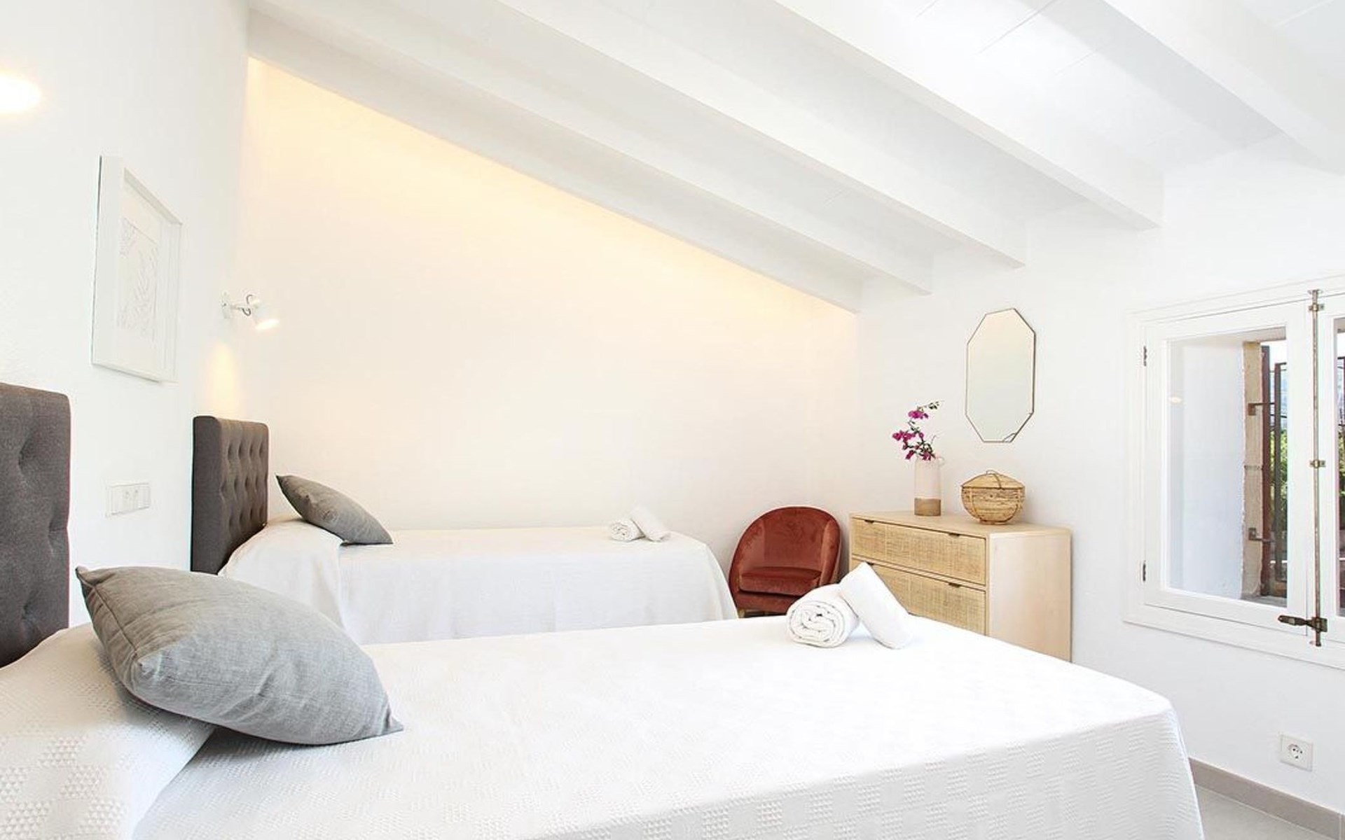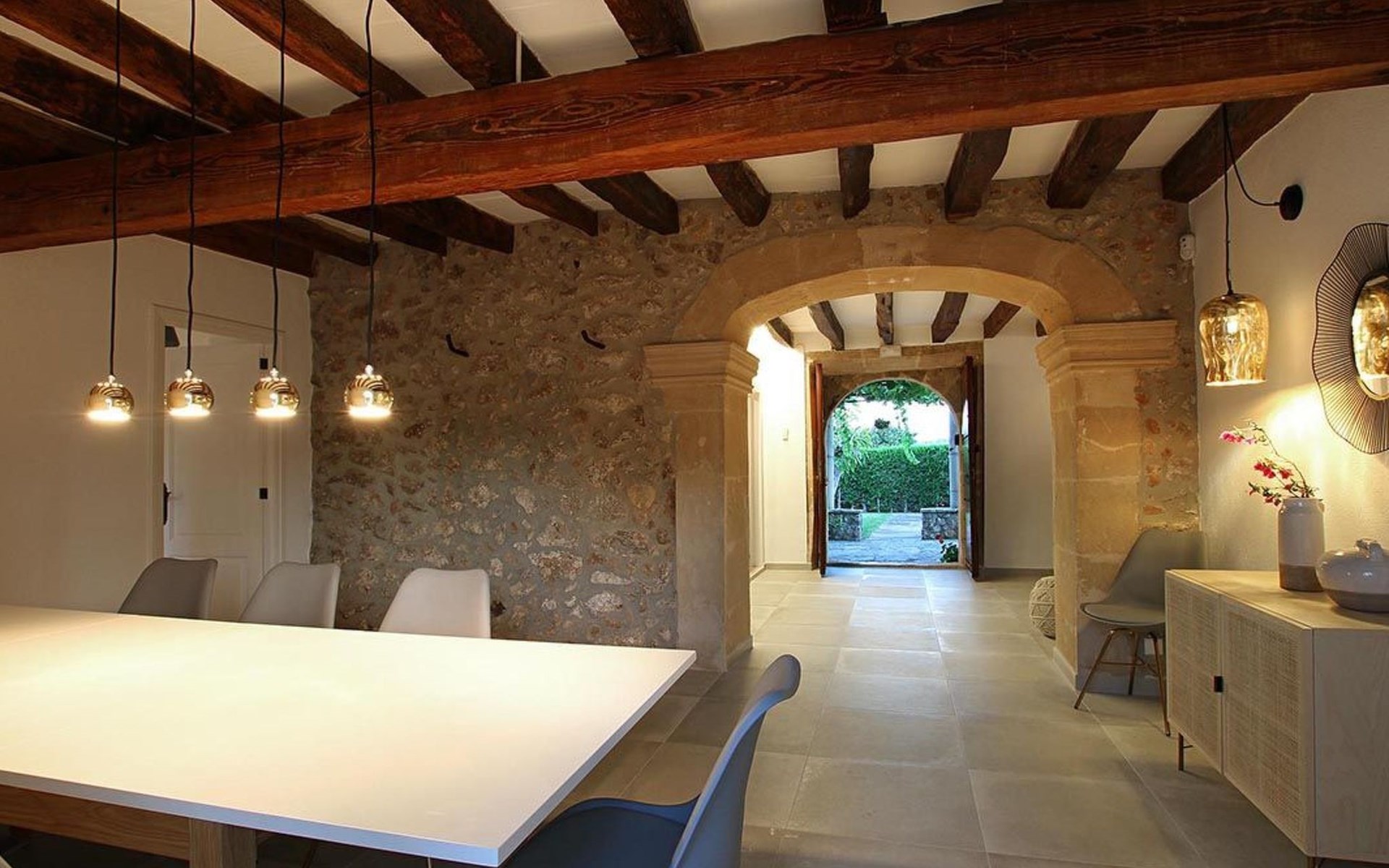 Outside, the house offers idyllic spaces to enjoy the sunny days in Mallorca. A cosy terrace and balcony invite you to relax or dine al fresco, while the exclusive use garden provides a private retreat to unwind, enveloped by the magnificence of the local nature.