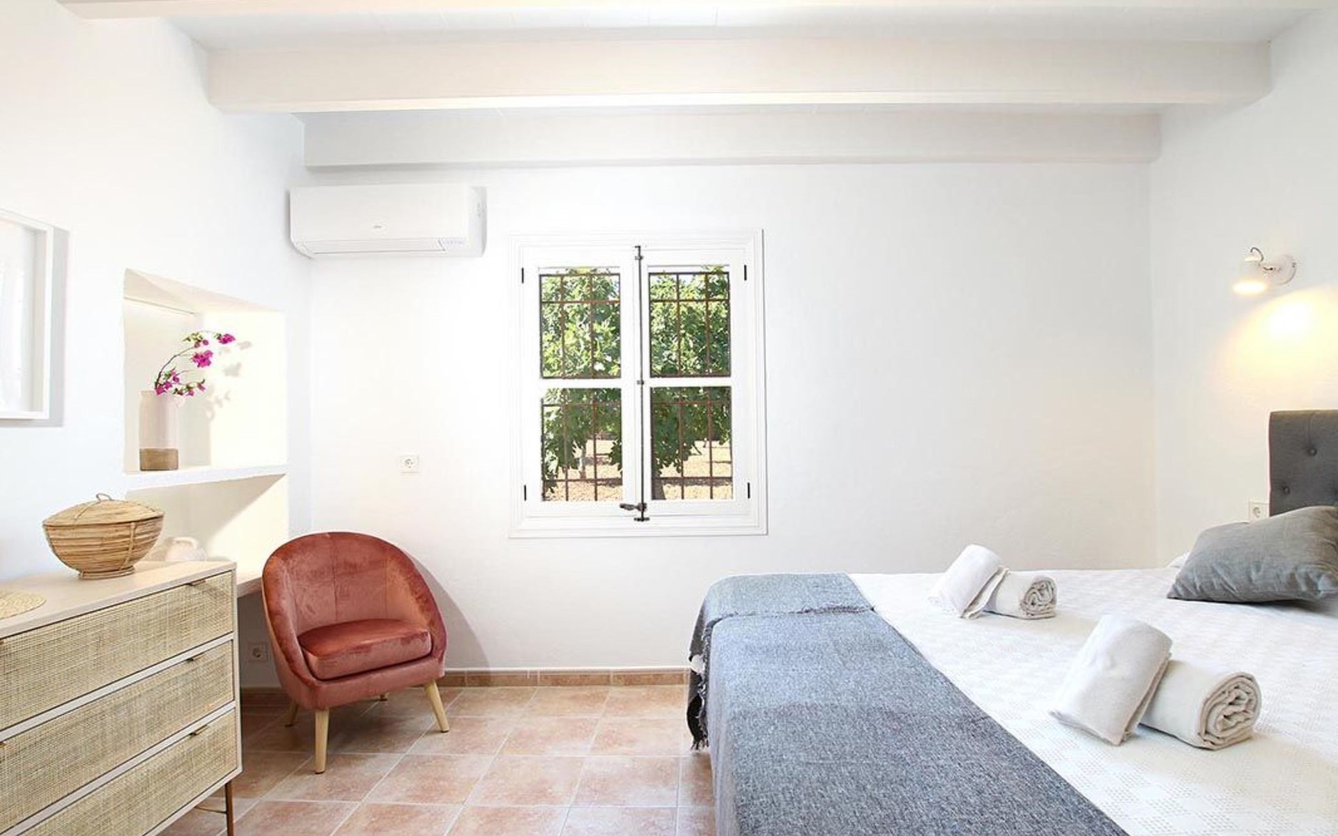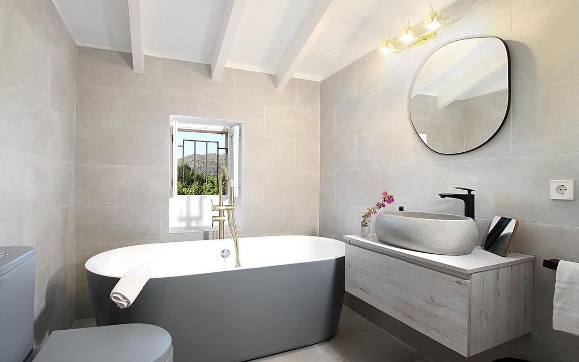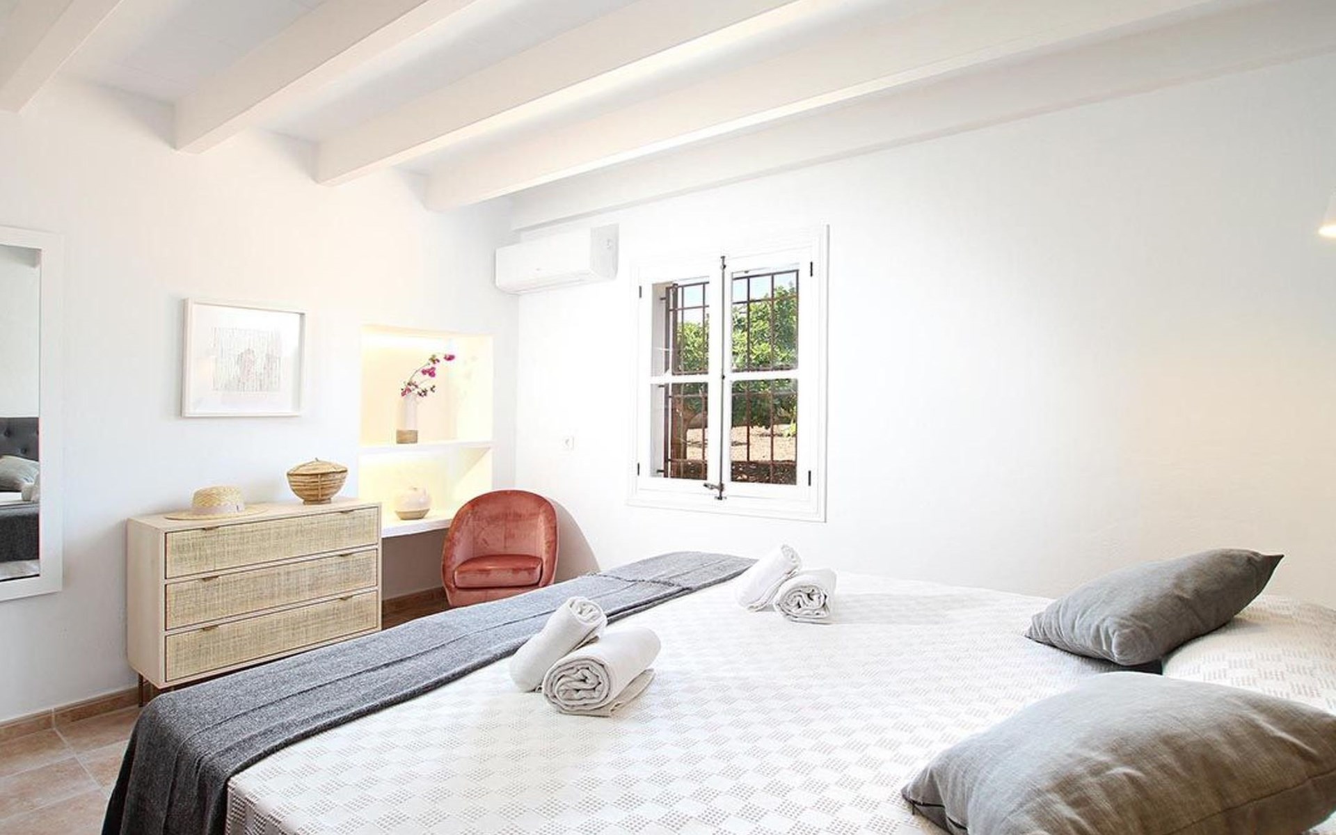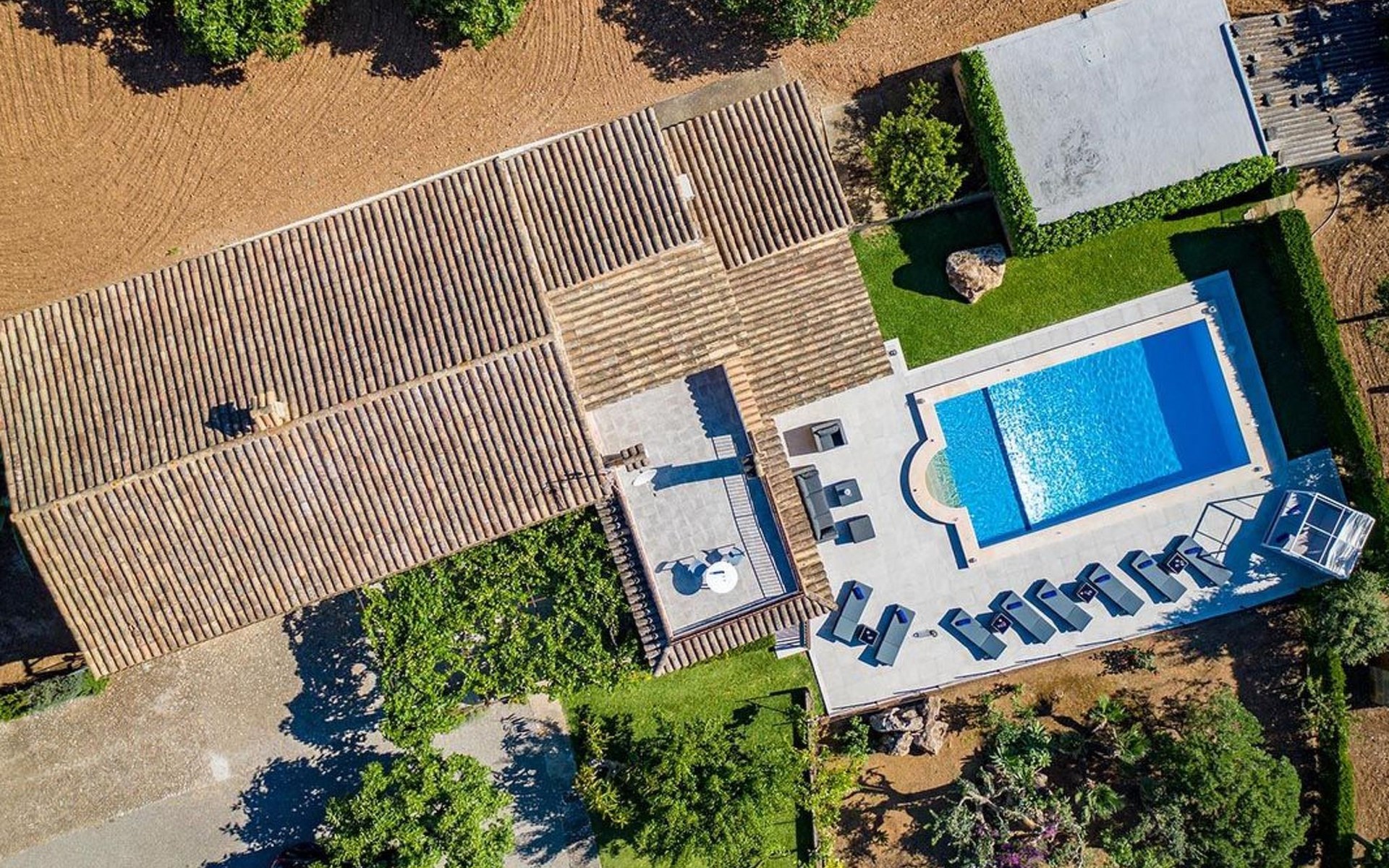 Outside, the house offers idyllic spaces to enjoy the sunny days in Mallorca. A cosy terrace and balcony invite you to relax or dine al fresco, while the exclusive use garden provides a private retreat to unwind, enveloped by the magnificence of the local nature.