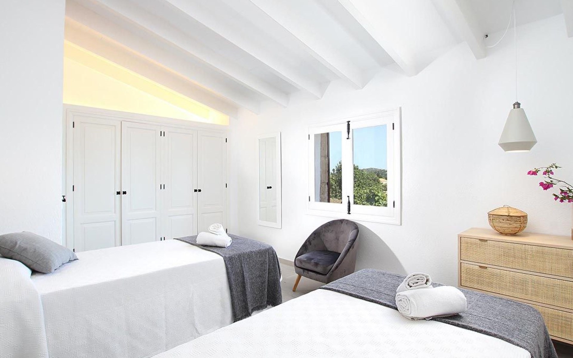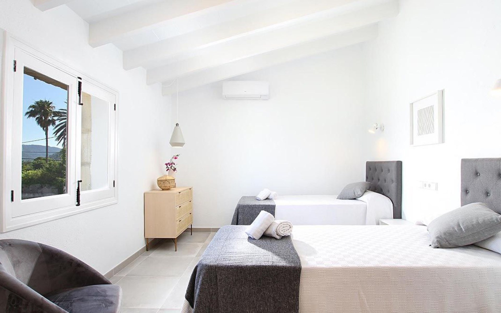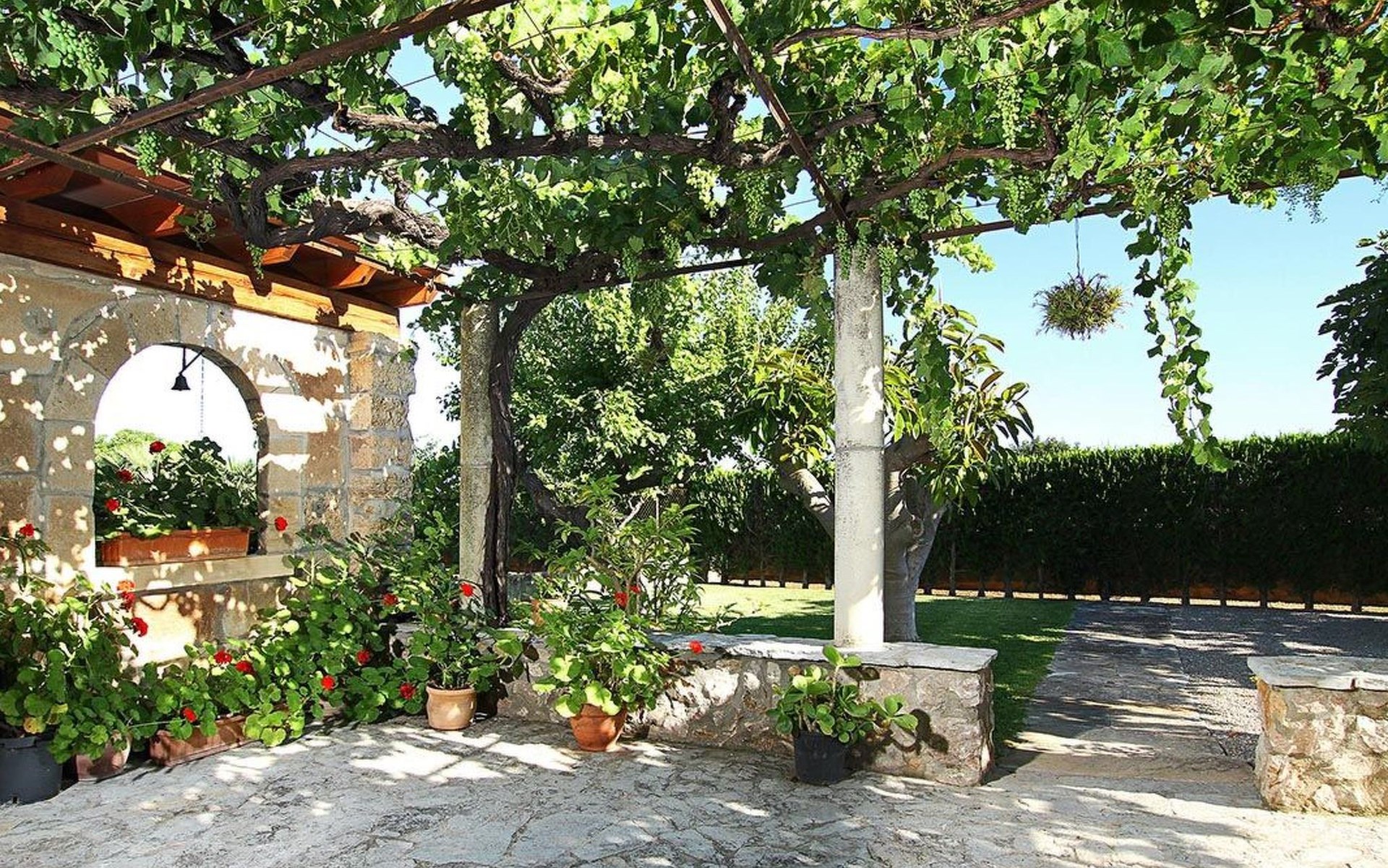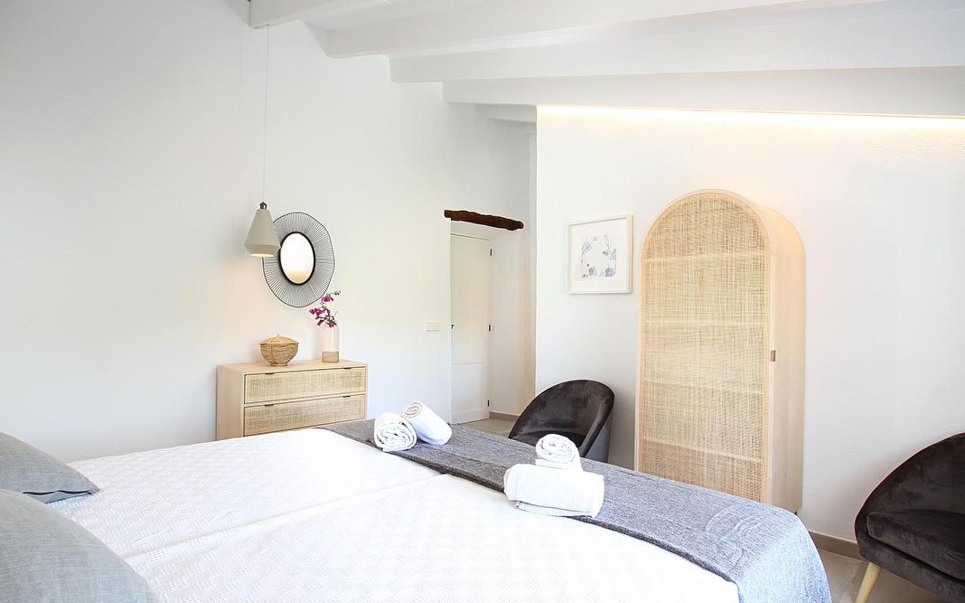 Outside, the house offers idyllic spaces to enjoy the sunny days in Mallorca. A cosy terrace and balcony invite you to relax or dine al fresco, while the exclusive use garden provides a private retreat to unwind, enveloped by the magnificence of the local nature.