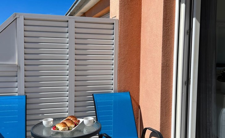 The apartment is completely new and modern. It is possible to get fresh towels and fresh bedding at every moment you like. You have a nice sea view from the balcony. Have a dinner on the balcony or watch the sunset with a good glass of wine and chill on our loungeset.