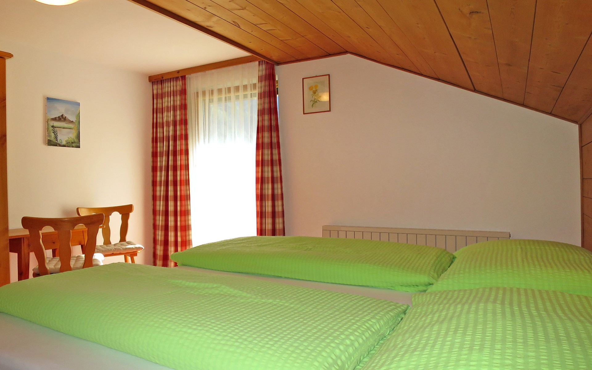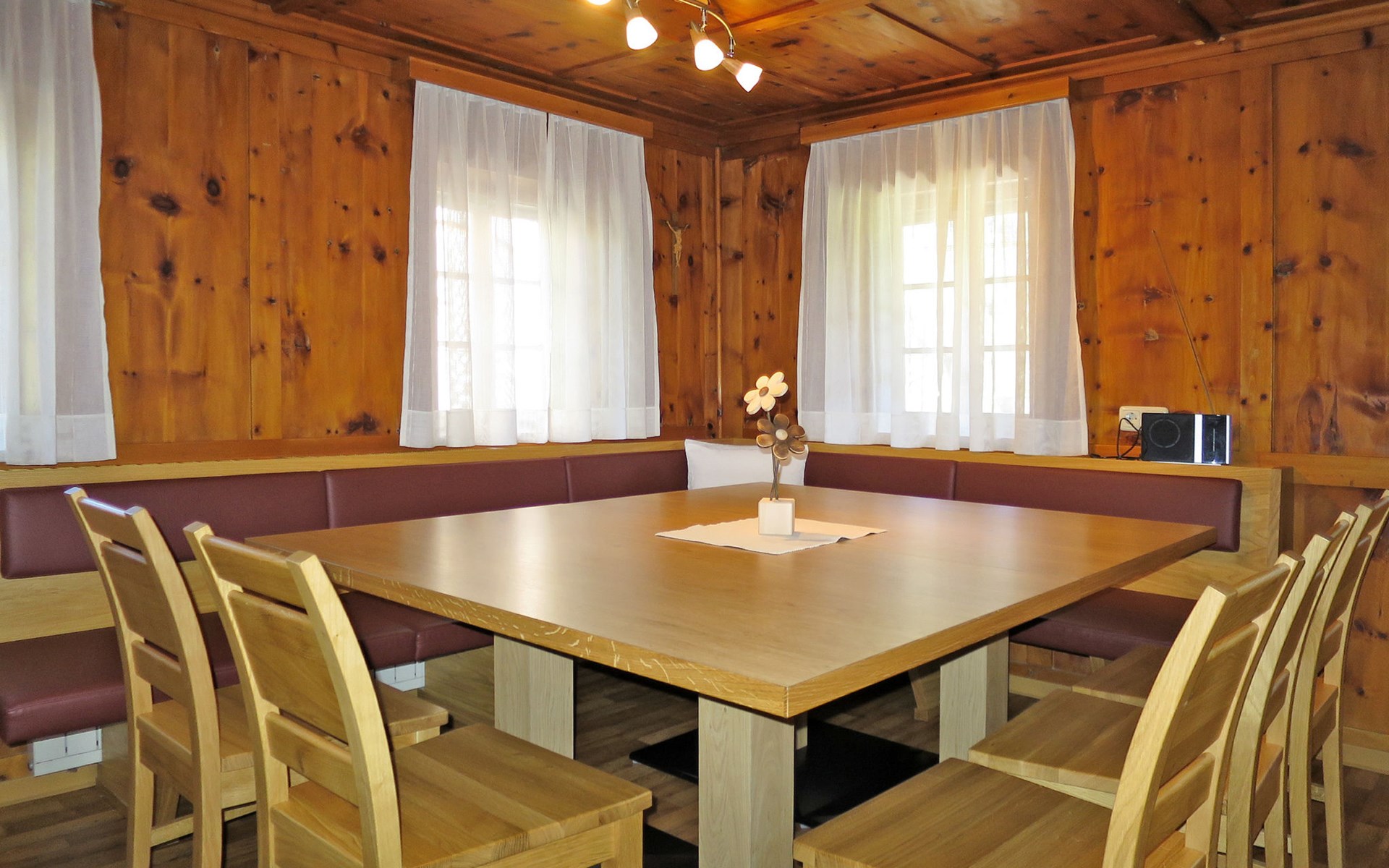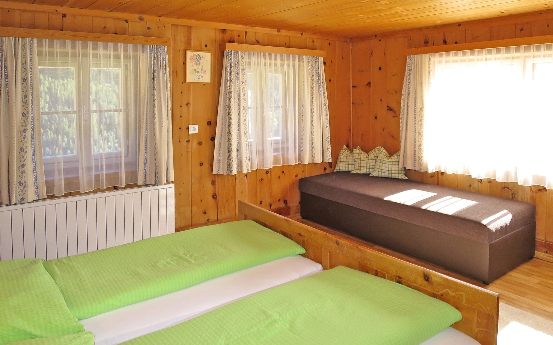 Farmhouse "Oberkofl", 1'400 m a.s.l., surrounded by meadows and fields. In the district of Oberjuns 3 km from the centre of Tux, 2.6 km from the centre of Lanersbach, 16 km from the centre of Mayrhofen, on a slope, in a cul-de-sac. For shared use: terrace, garden furniture. In the house: storage room for skis, ski boot dryer. Bread roll service. Steep, narrow motor access (mountain road). In Winter: please take snow chains. Parking (for 4 cars) on the premises. Supermarket 2.6 km, bus stop "Juns Klausboden" 1.1 km, railway station "Mayrhofen Bahnhof" 14.3 km, indoor swimming pool 16 km. Mountain railway 3.1 km, gondola lift 6.2 km, ski bus stop 1.2 km, cross country ski track 1.3 km. Well-known ski regions can easily be reached: Hintertuxer Gletscher 6.2 km, Eggalmbahn 3.1 km. Please note: the owner lives in the same residence.