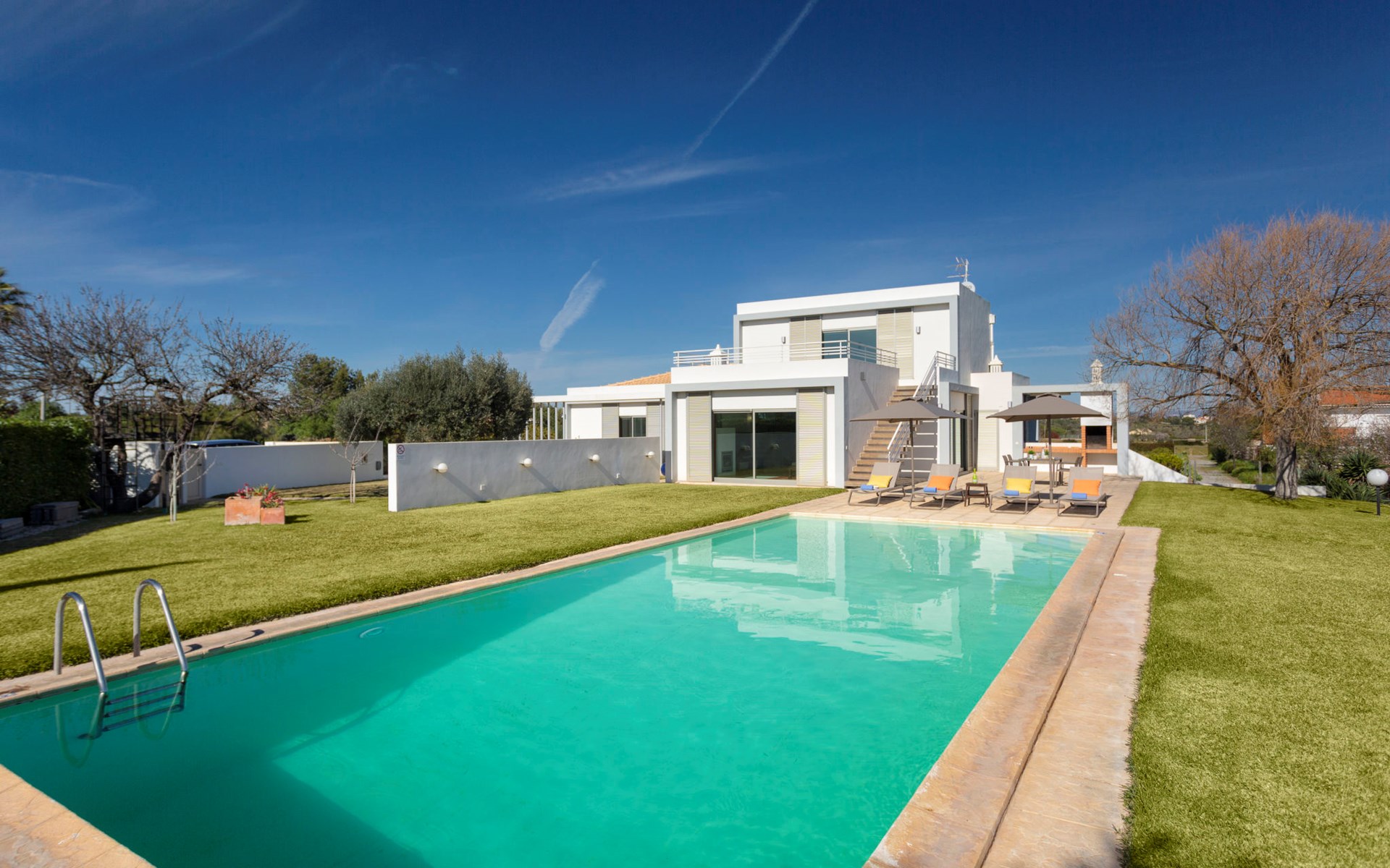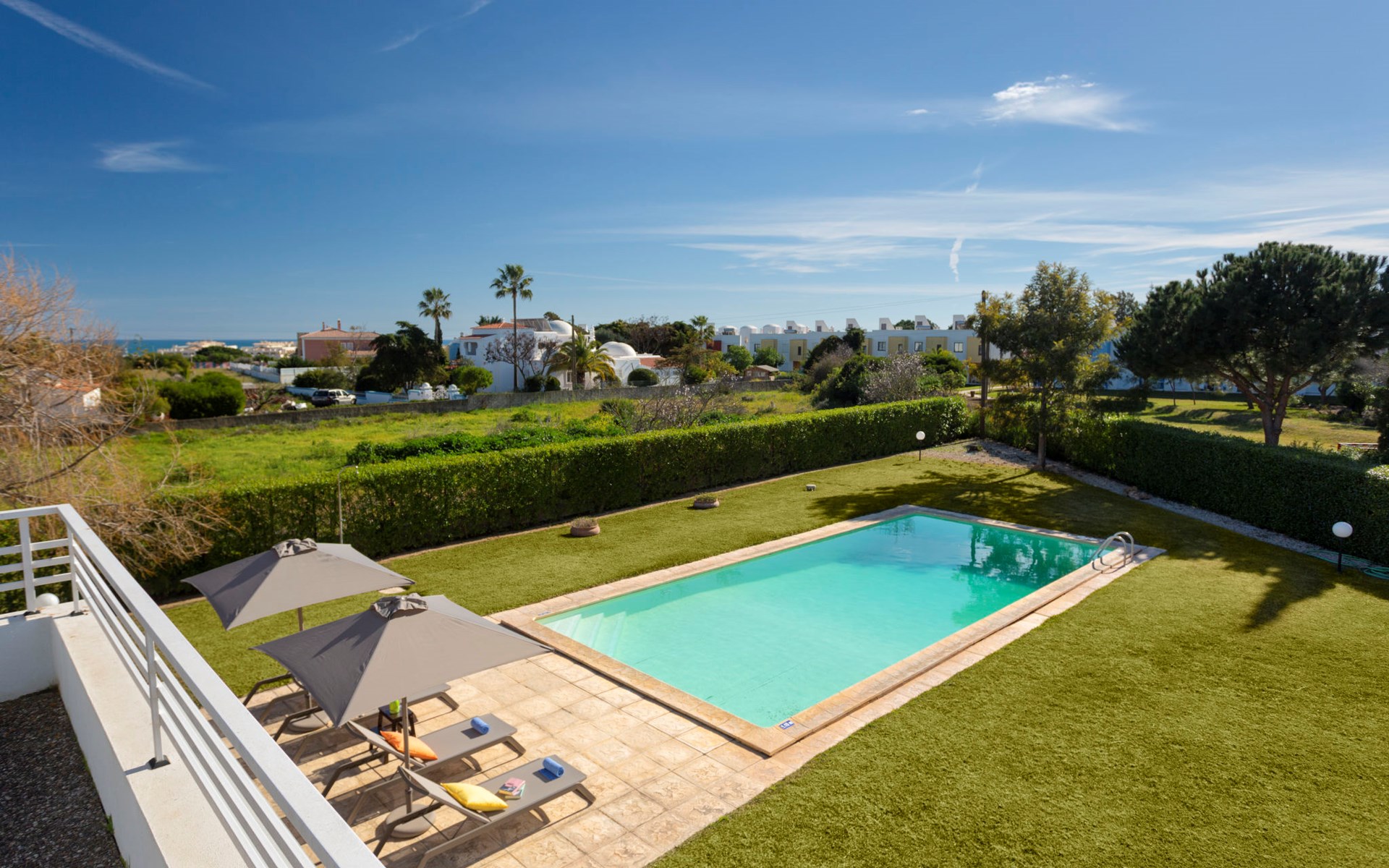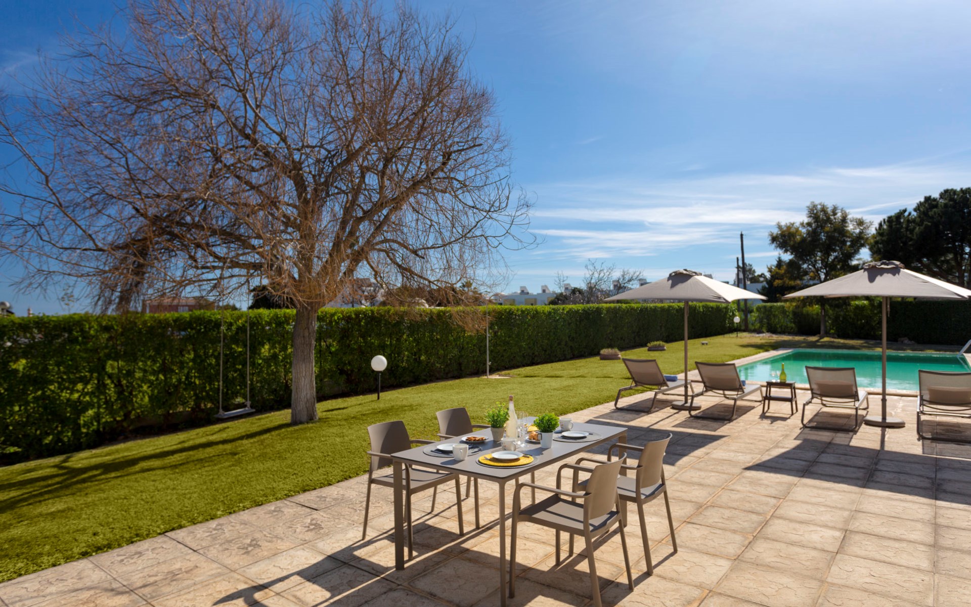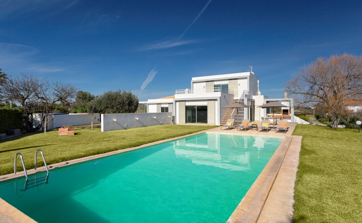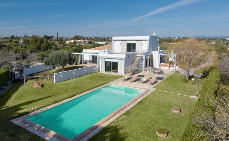 Very beautiful, cosy villa "Almond Tree", 2 storeys, detached, surrounded by trees and fields. Outside the resort, 3.4 km from the centre of Armação de Pera, in a quiet position residential area (villas), 1.3 km from the sea. Private: natural state property 2'520 m2 (fenced) with lawn and wildlife garden, beautiful garden to relax, swimming pool angular (5 x 12 m, depth 100 - 200 cm, seasonal availability: 01.Jan. - 31.Dec.) with salt-electrolysis pool-cleaning system. Outdoor shower, terrace, garden furniture, barbecue (swing), pool maintenance by the owner/gardener. In the house: WiFi, billiard table, air conditioning, washing machine. Parking (for 4 cars). Grocery 800 m, supermarket 1.1 km, shopping centre 13 km, restaurant 650 m, bar 850 m, bakery 1.1 km, café 800 m, pedestrian zone 2.6 km, 40 minute walk to the centre, bus stop "Estrada Armação De Pera" 1.2 km, railway station "Alcantarilha" 12.3 km, sandy beach "Praia da Nossa Senhora da Rocha" 1.3 km, rocky beach "Praia da Cova Redonda" 1.3 km, diving center 3.4 km. Marina 13.9 km, golf course (18 hole) 9.5 km, surf school 3.8 km, indoor tennis centre 16.6 km, minigolf 1.5 km, riding stable 1.3 km, sports centre 16.2 km. Nearby attractions: Zoomarine 8.5 km, Algarve Shopping 11.5 km, Slide & Splash 9.5 km, Albufeira 17 km, Castelo de Silves 17.8 km, Krazy World 16.5 km. Hiking paths: Monchique Passeios na Serra 40.1 km. Please note: car recommended. Object suitable for 12 adults. The owner does not accept any youth groups. Loading and unloading of baggage is possible at the holiday house. Small football field on the land of the house for family fun.
