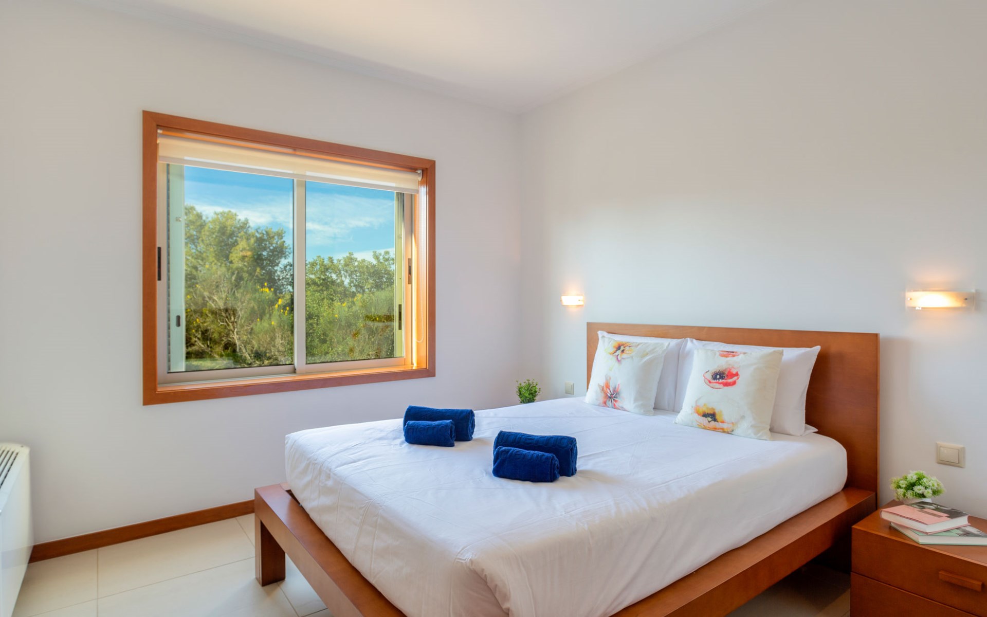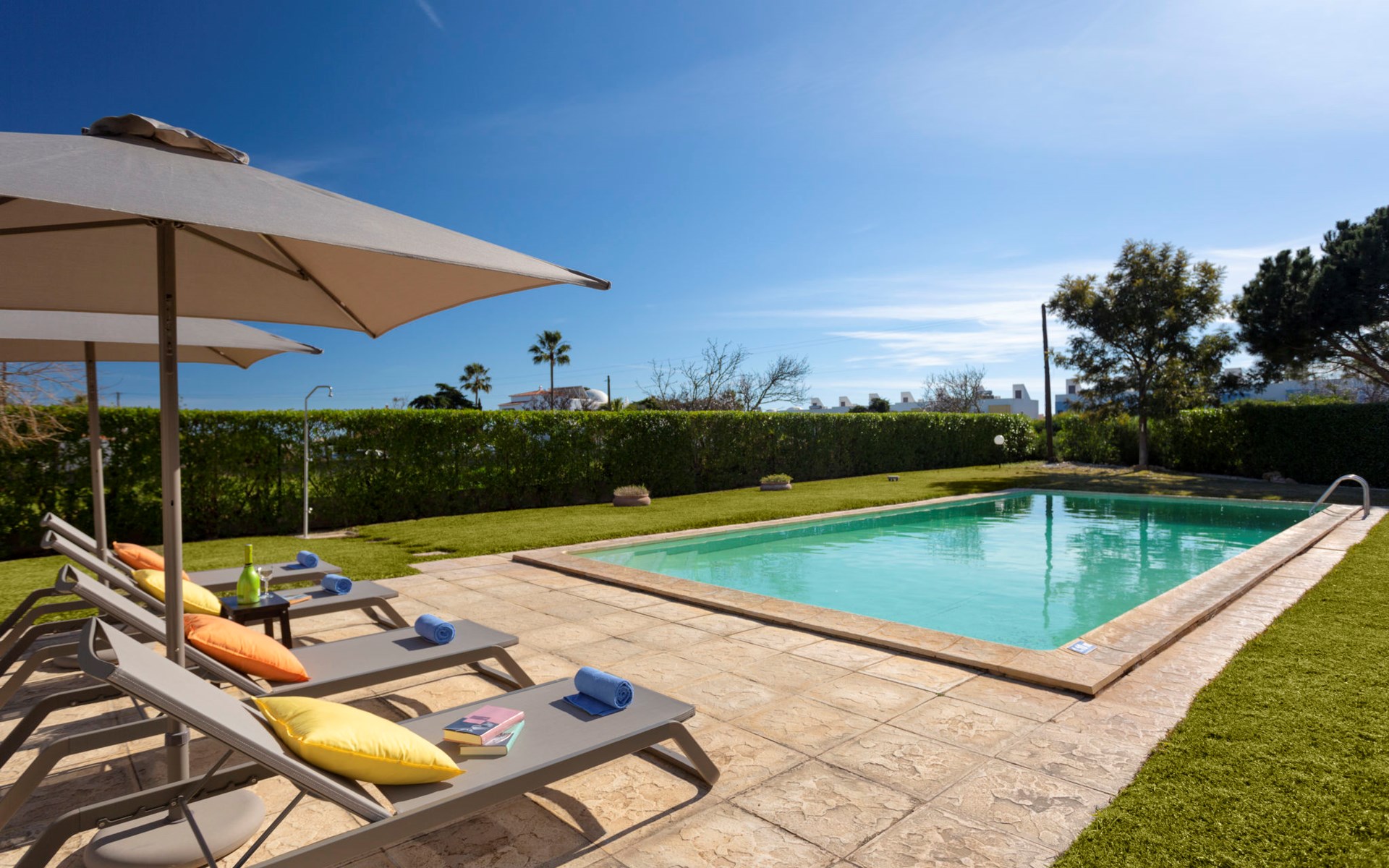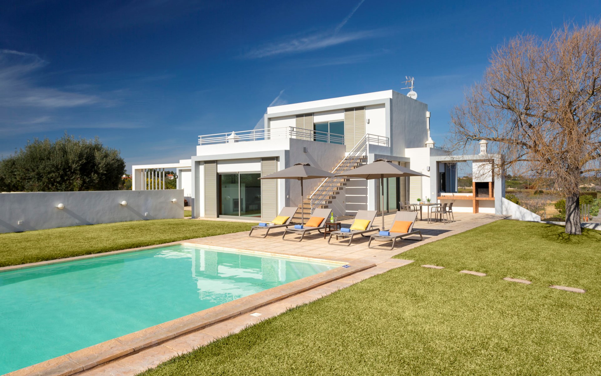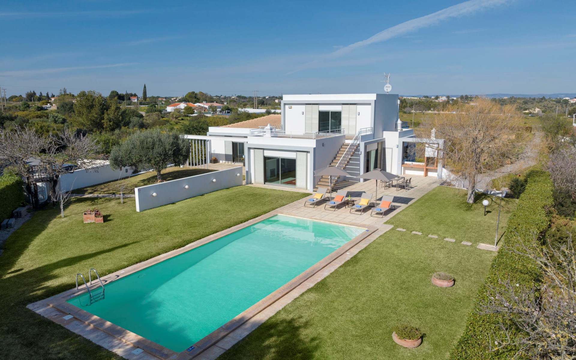 Very beautiful, cosy villa "Almond Tree", 2 storeys, detached, surrounded by trees and fields. Outside the resort, 3.4 km from the centre of Armação de Pera, in a quiet position residential area (villas), 1.3 km from the sea. Private: natural state property 2'520 m2 (fenced) with lawn and wildlife garden, beautiful garden to relax, swimming pool angular (5 x 12 m, depth 100 - 200 cm, seasonal availability: 01.Jan. - 31.Dec.) with salt-electrolysis pool-cleaning system. Outdoor shower, terrace, garden furniture, barbecue (swing), pool maintenance by the owner/gardener. In the house: WiFi, billiard table, air conditioning, washing machine. Parking (for 4 cars). Grocery 800 m, supermarket 1.1 km, shopping centre 13 km, restaurant 650 m, bar 850 m, bakery 1.1 km, café 800 m, pedestrian zone 2.6 km, 40 minute walk to the centre, bus stop "Estrada Armação De Pera" 1.2 km, railway station "Alcantarilha" 12.3 km, sandy beach "Praia da Nossa Senhora da Rocha" 1.3 km, rocky beach "Praia da Cova Redonda" 1.3 km, diving center 3.4 km. Marina 13.9 km, golf course (18 hole) 9.5 km, surf school 3.8 km, indoor tennis centre 16.6 km, minigolf 1.5 km, riding stable 1.3 km, sports centre 16.2 km. Nearby attractions: Zoomarine 8.5 km, Algarve Shopping 11.5 km, Slide & Splash 9.5 km, Albufeira 17 km, Castelo de Silves 17.8 km, Krazy World 16.5 km. Hiking paths: Monchique Passeios na Serra 40.1 km. Please note: car recommended. Object suitable for 12 adults. The owner does not accept any youth groups. Loading and unloading of baggage is possible at the holiday house. Small football field on the land of the house for family fun.