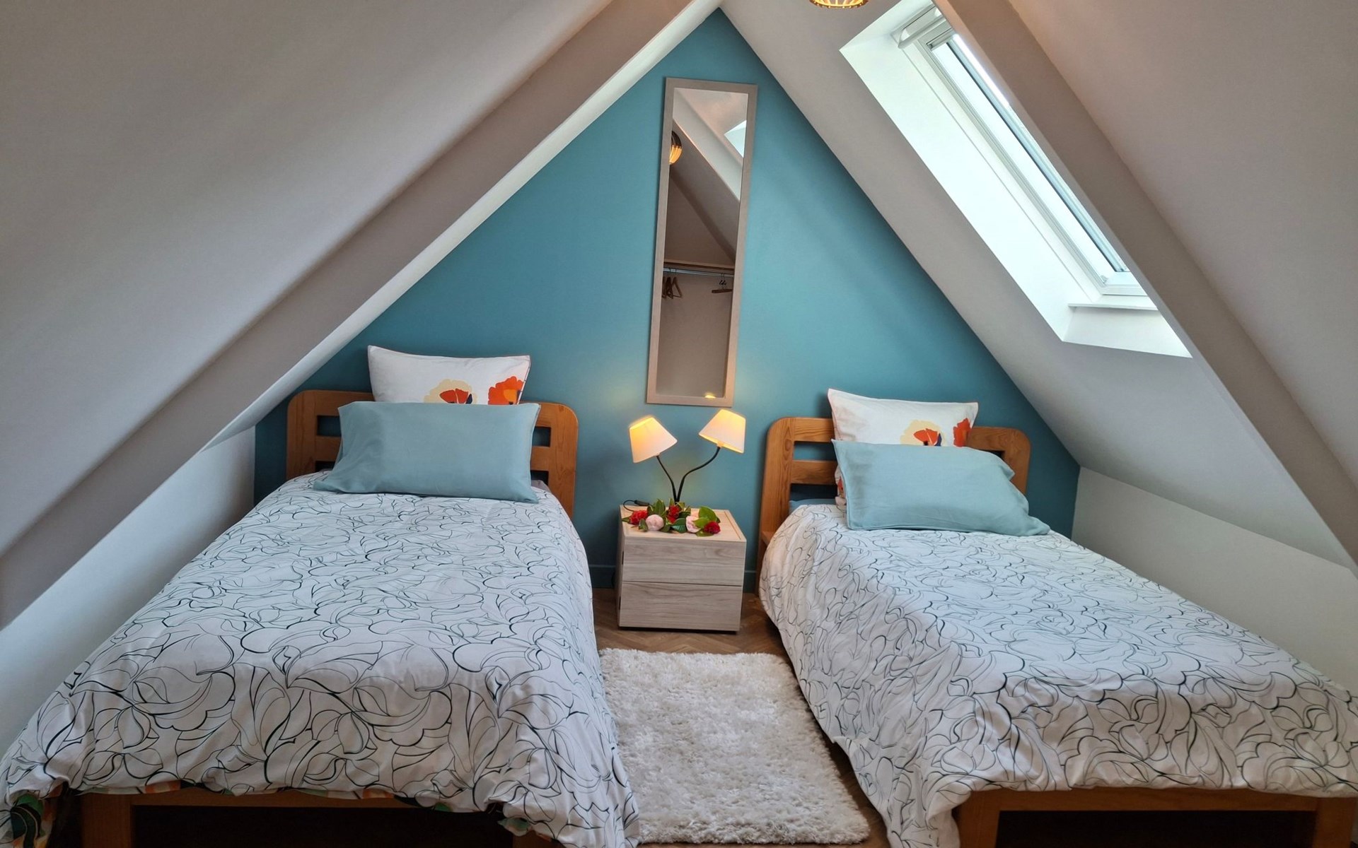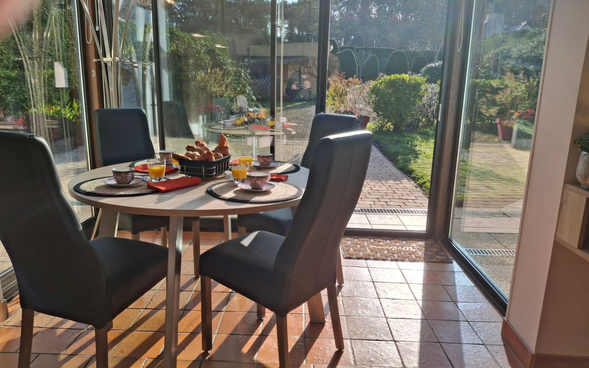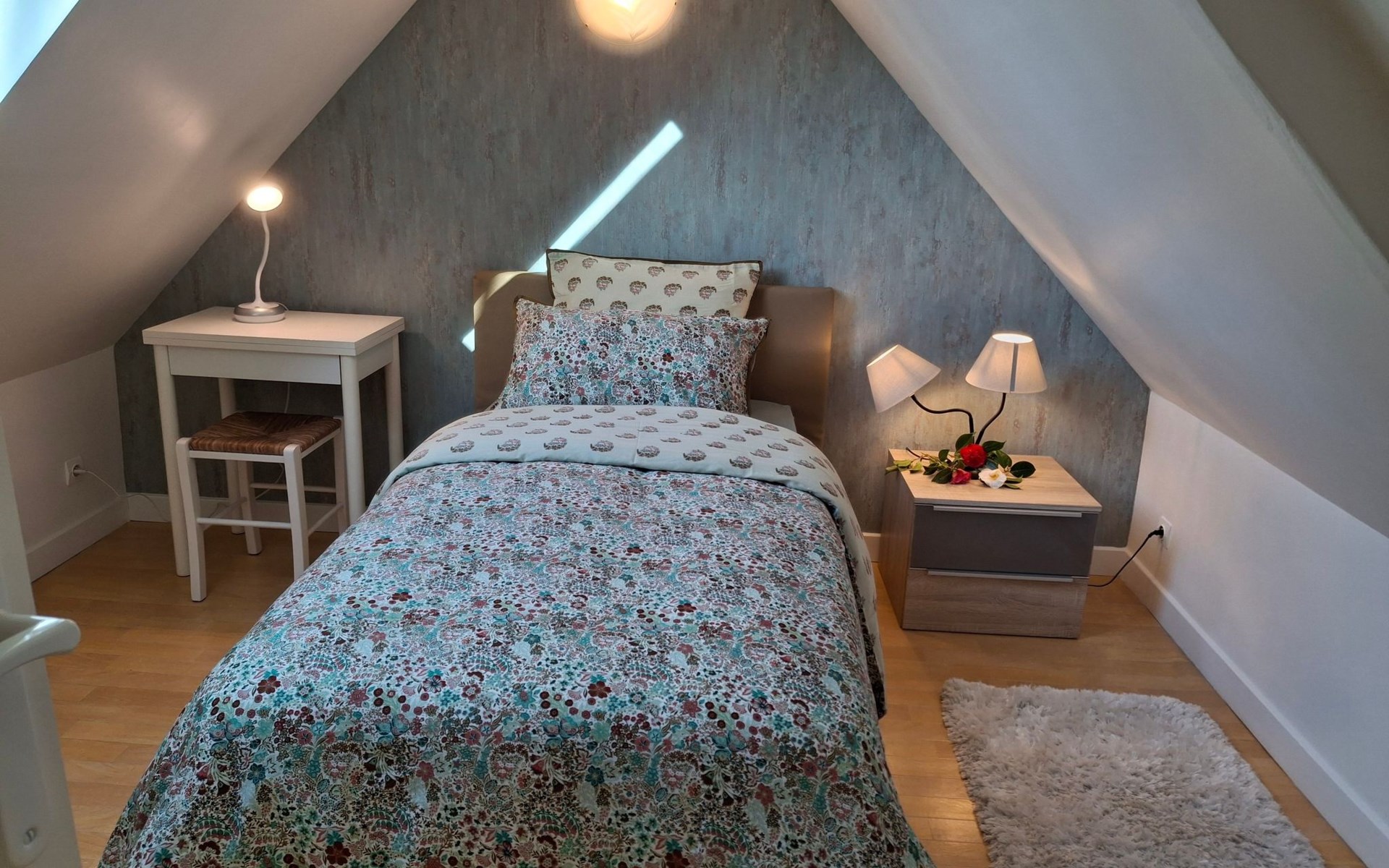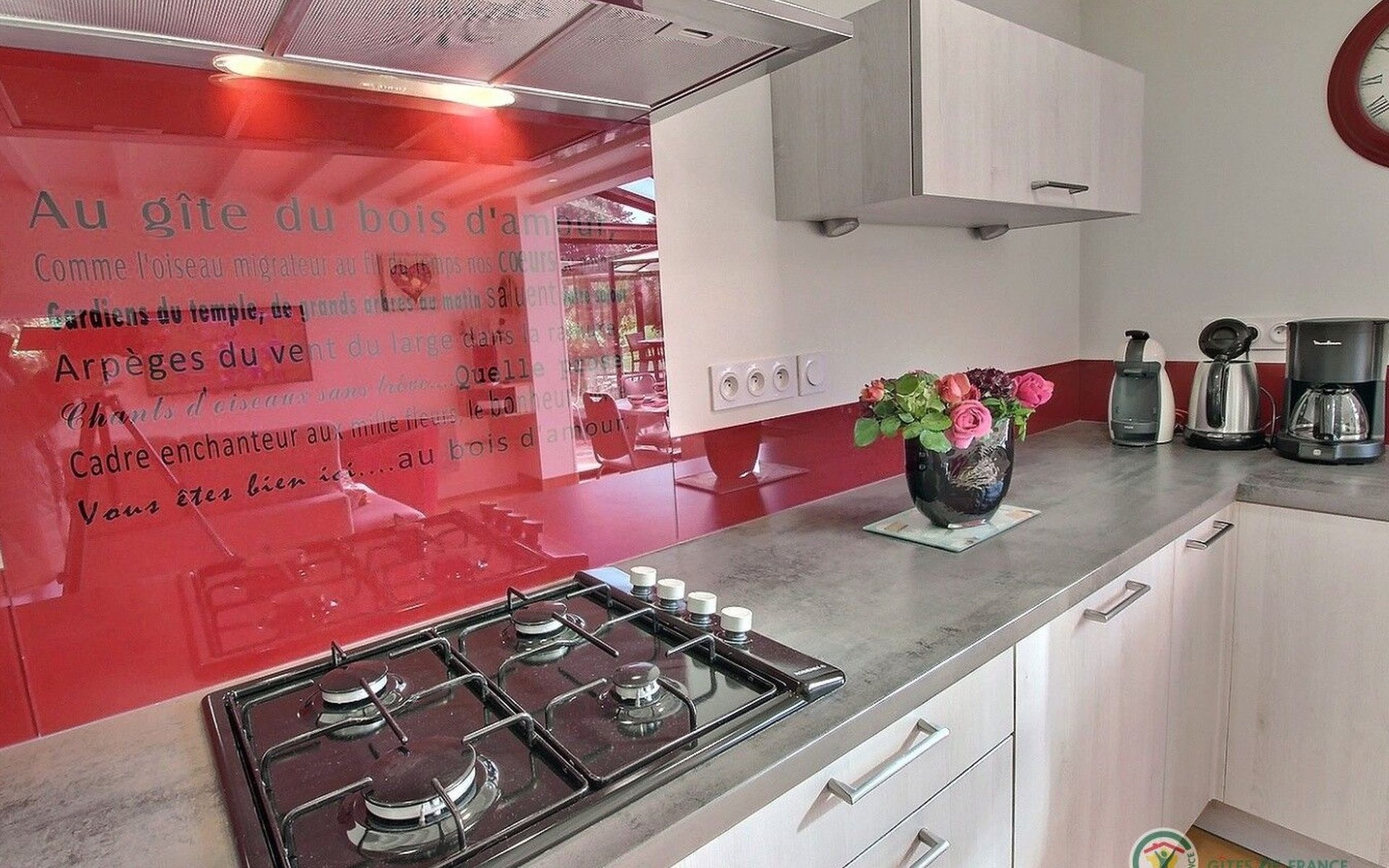 The interior of the gîte is an invitation to rest and tranquillity, combining modern comforts with tasteful decorative touches to create a welcoming atmosphere. There is a fully equipped kitchen with mini-oven, cooker and dishwasher, as well as a lounge area with a comfortable sofa, armchairs and a selected bookcase. New premium bedding ensures a restful night's sleep, complemented by an 80cm flat-screen TV with USB drive and free WIFI for all your multimedia and connectivity needs.