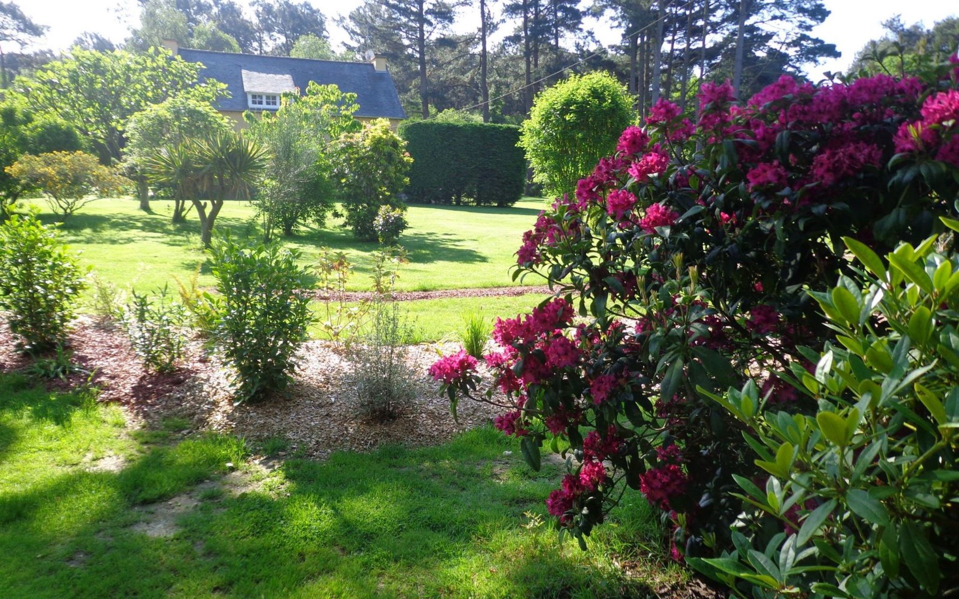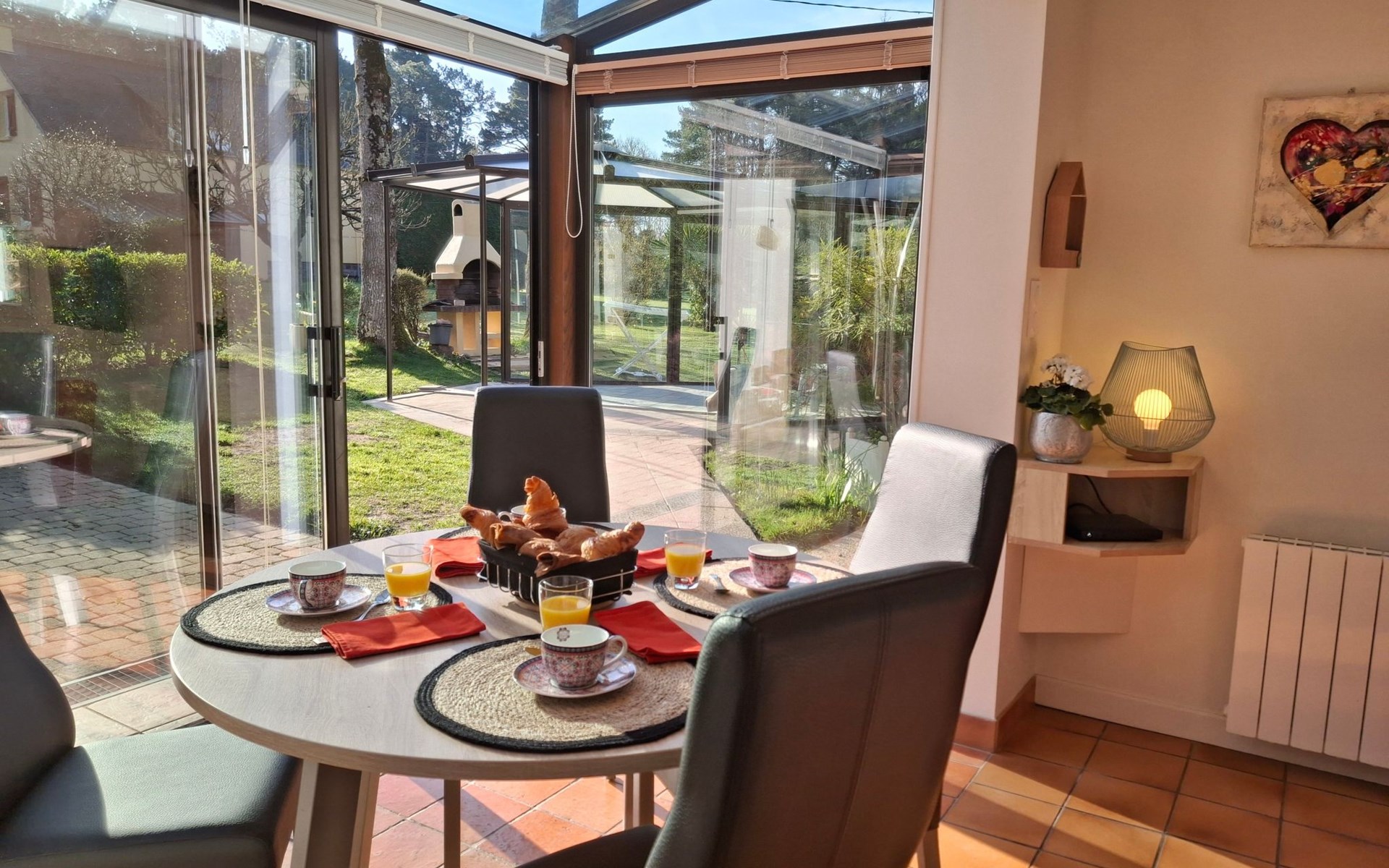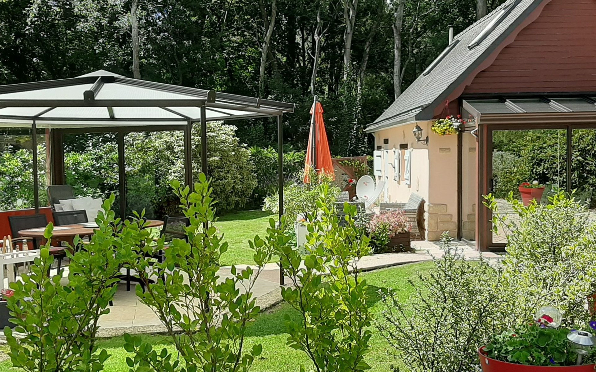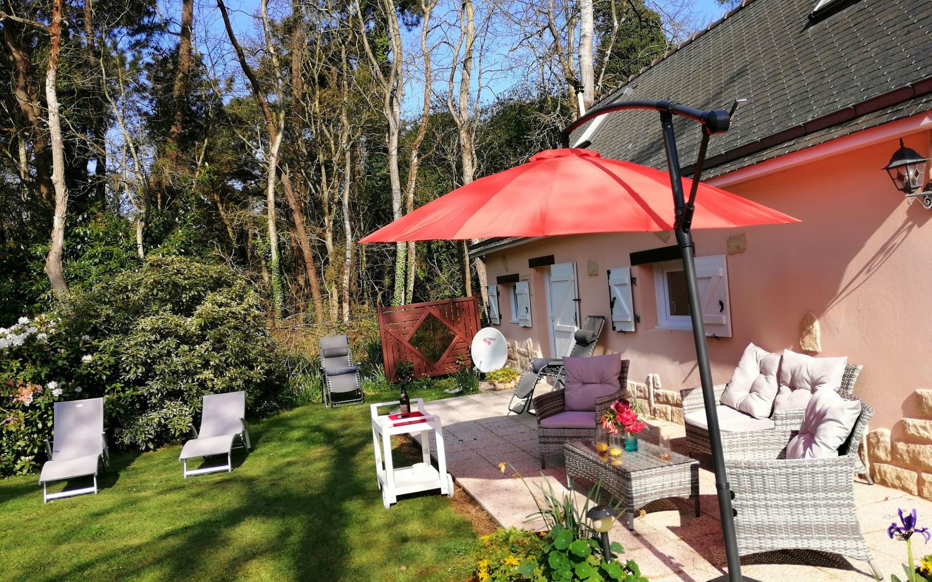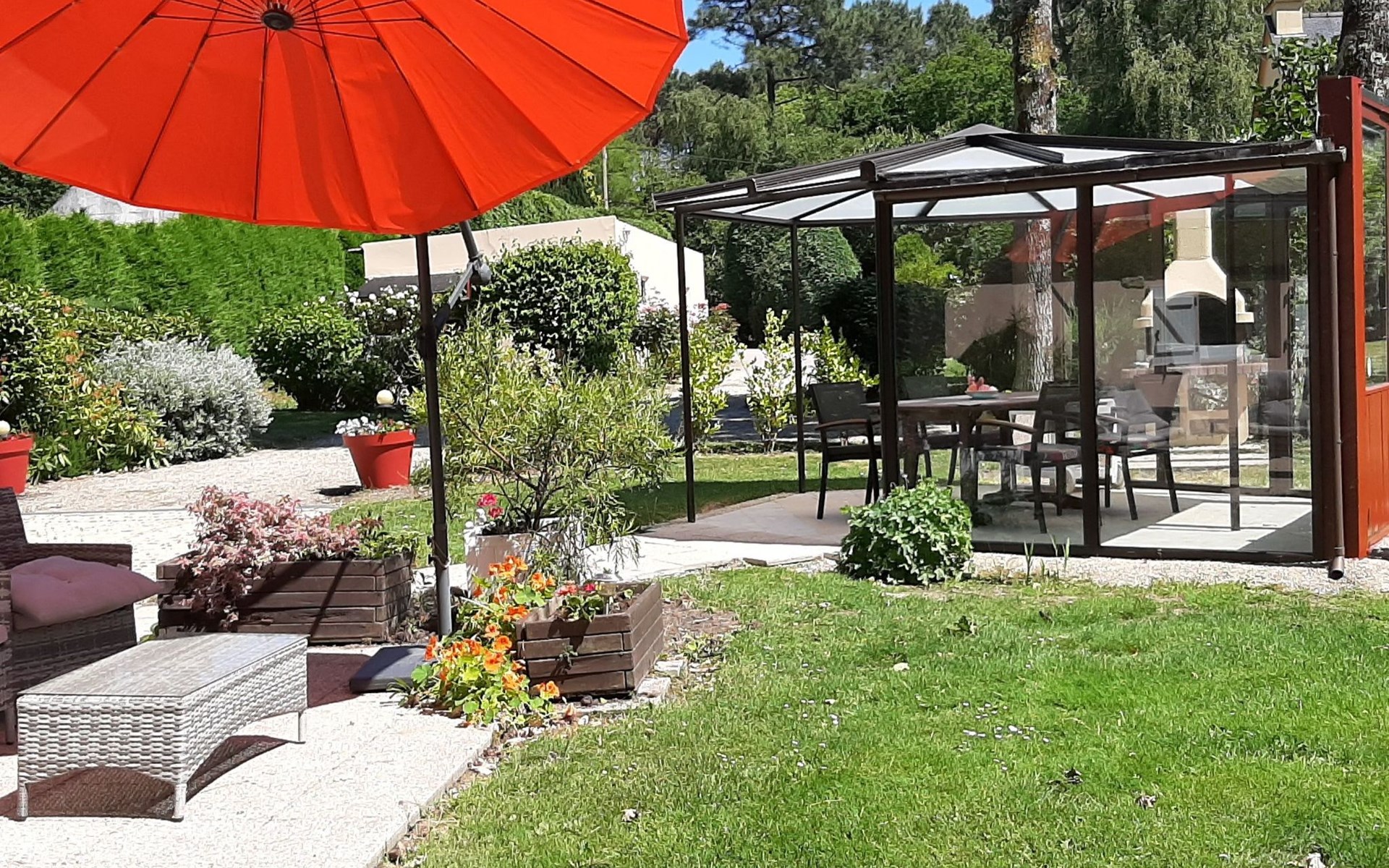 Outside, the gîte is surrounded by 6050 m² of fenced parkland, an Eden of trees and flowers, creating a peaceful and aesthetically pleasing setting. The south-facing terrace, pergola and windbreaks, plus leisure facilities such as a swing, children's swing, fixed barbecue and sun loungers, allow you to make the most of the outdoors and the mild climate.