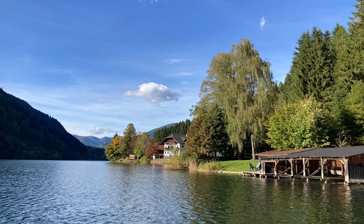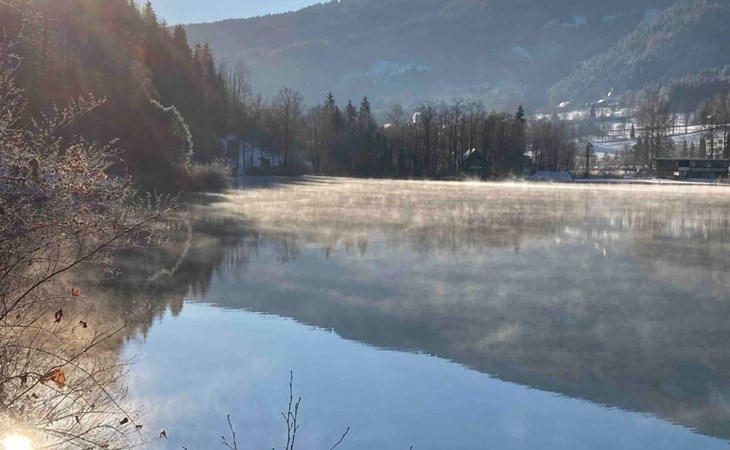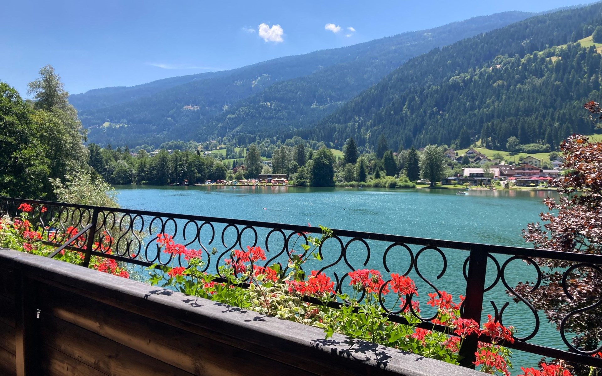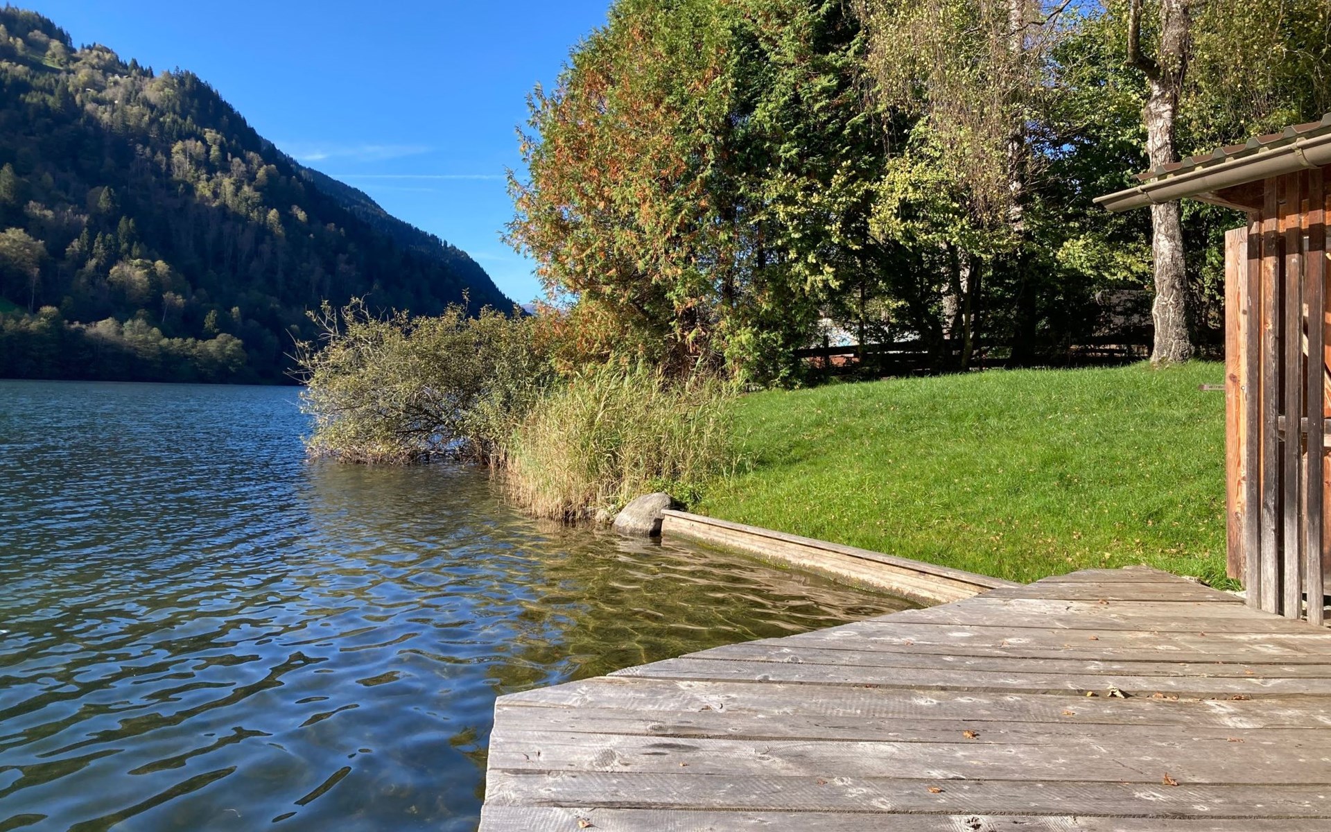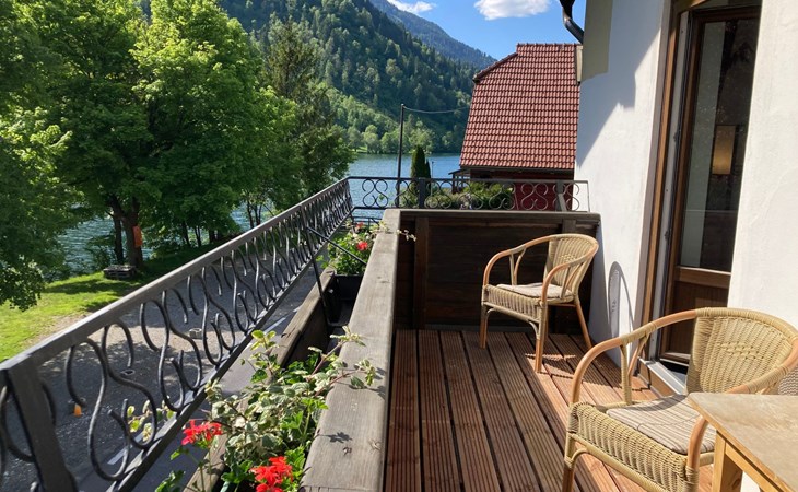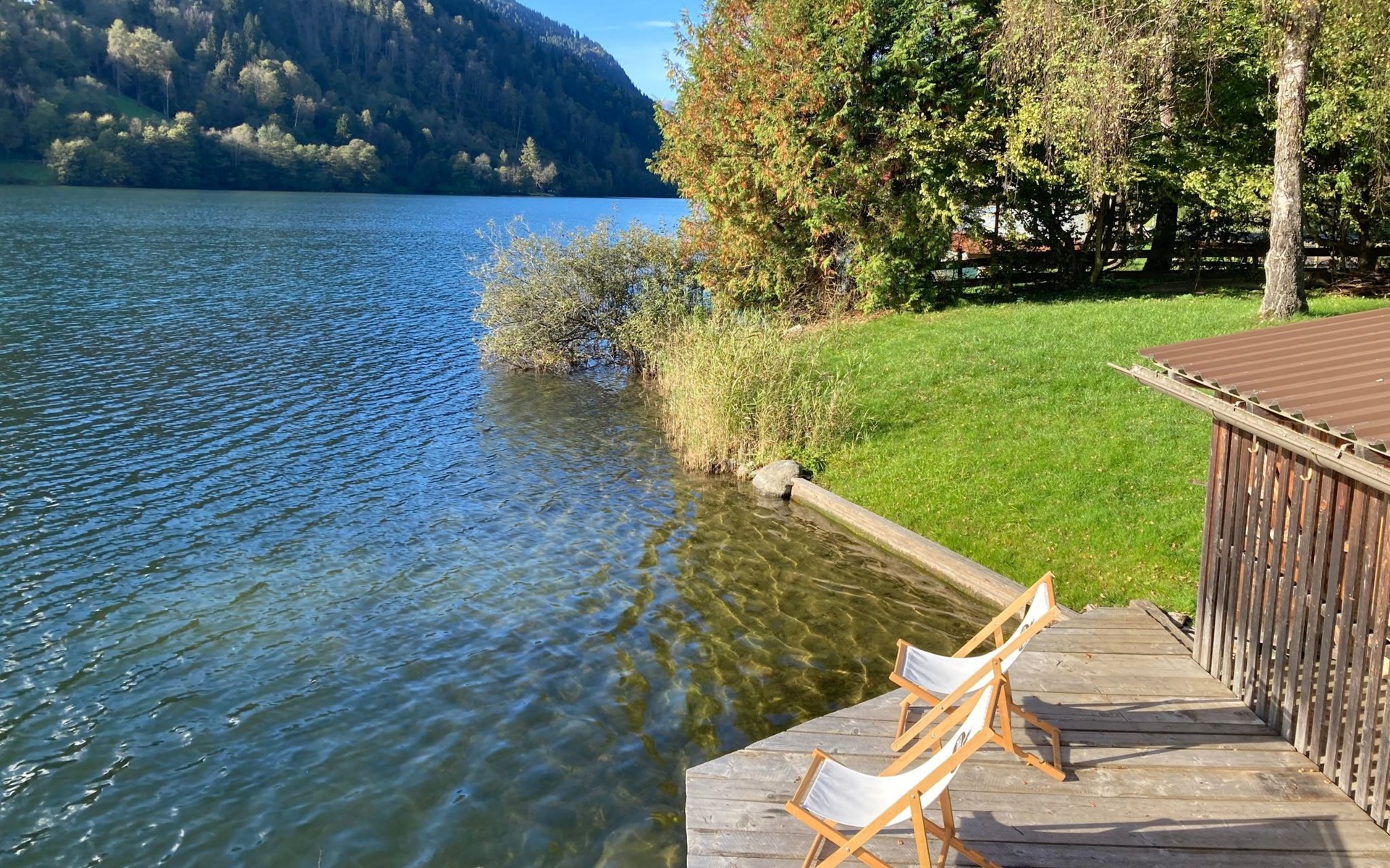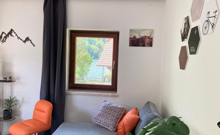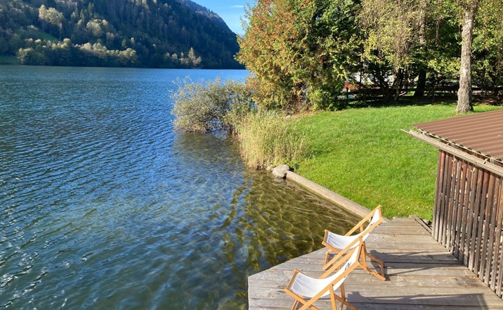 The immediate surroundings of the flat are absolutely stunning with its unique location right on the edge of the forest on the side of a mountain, just 10 metres from the beach and the lake. For active holidaymakers, the surrounding area offers everything from water sports to cycling trails right on the doorstep. The nearest town centre is just 900 metres away, with grocery stores, bus stop and much more within easy reach.