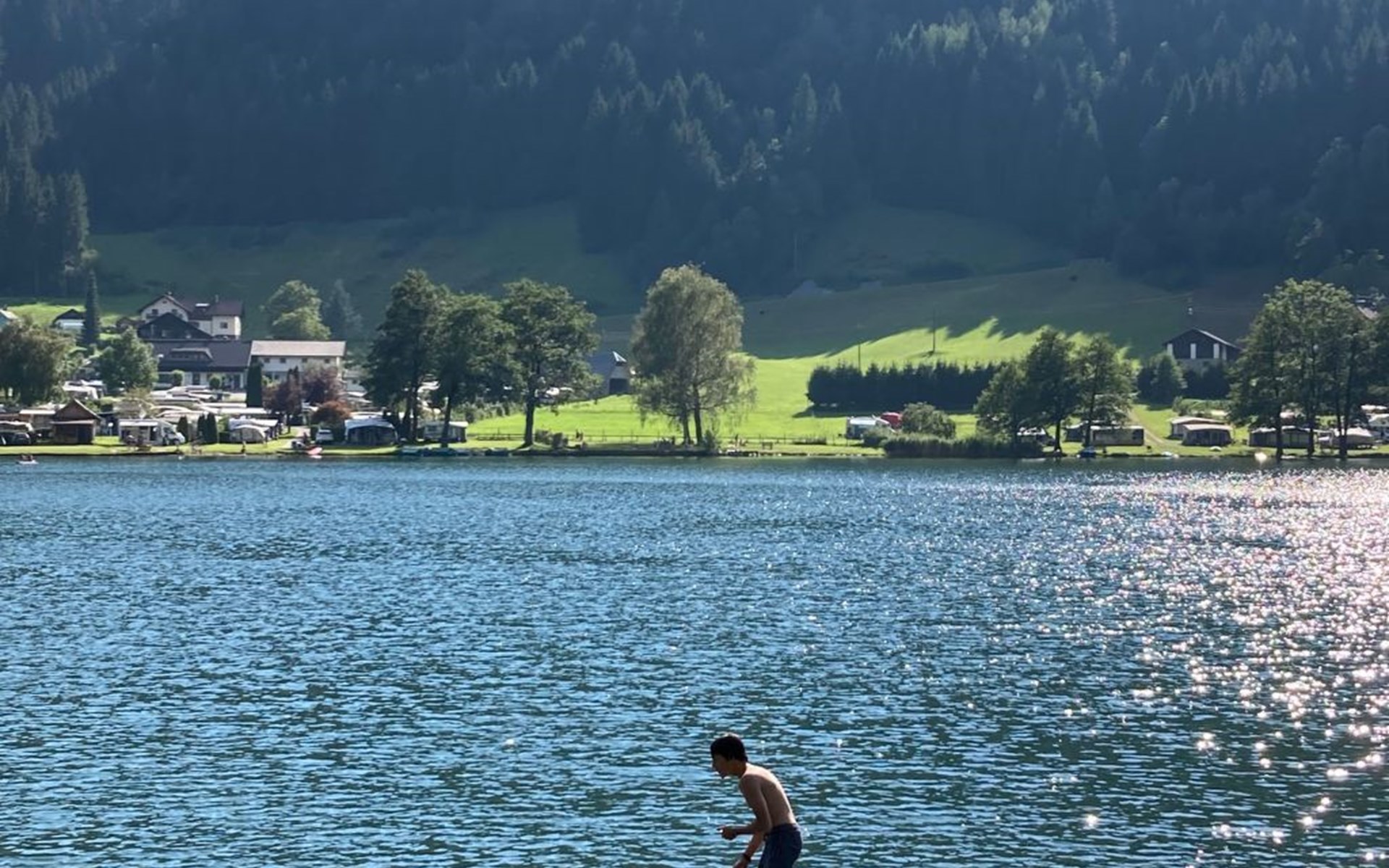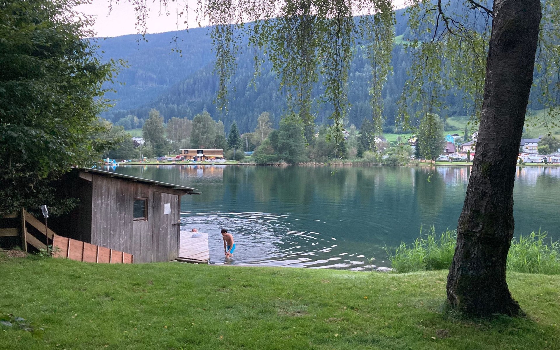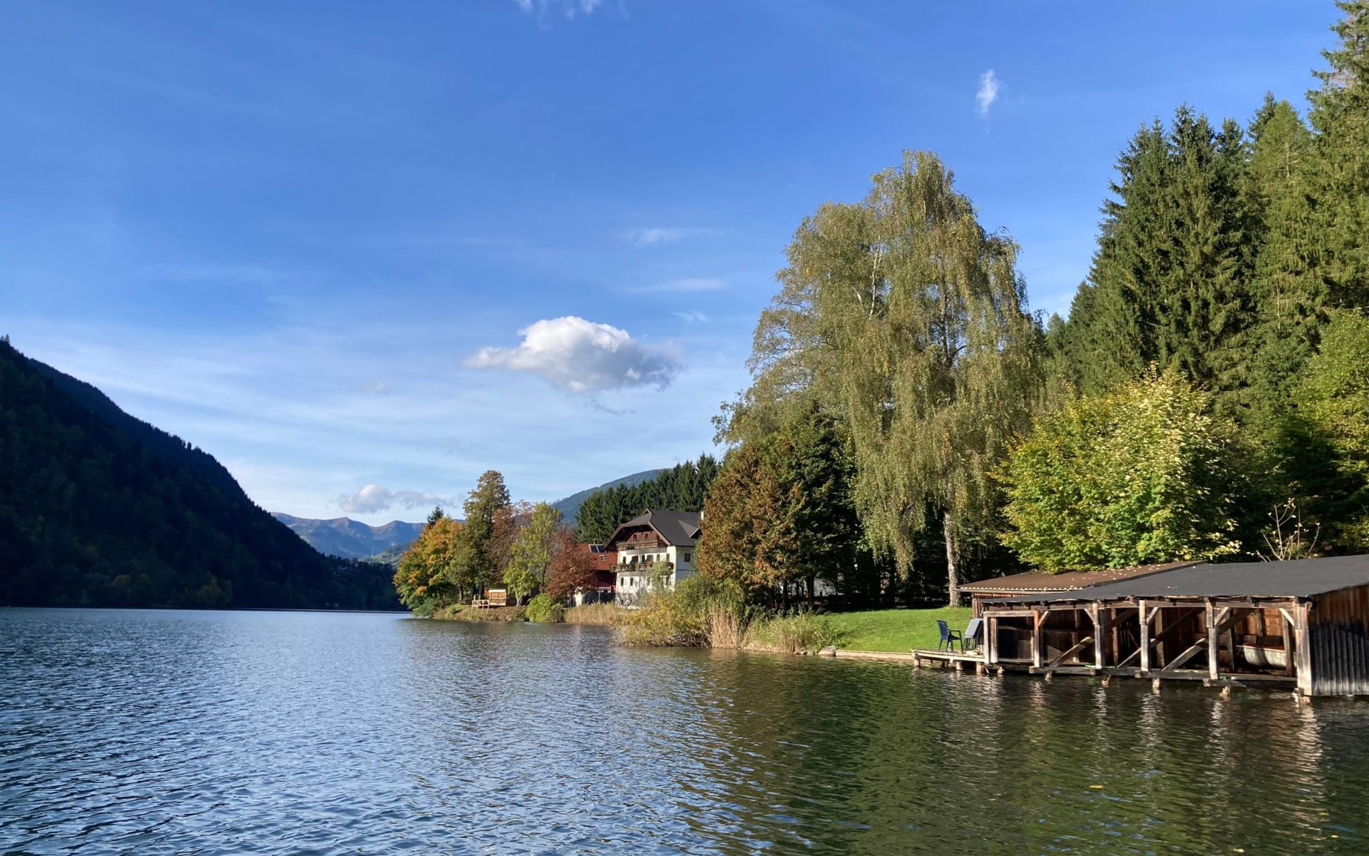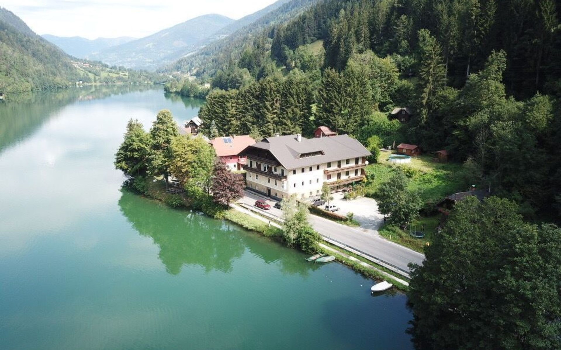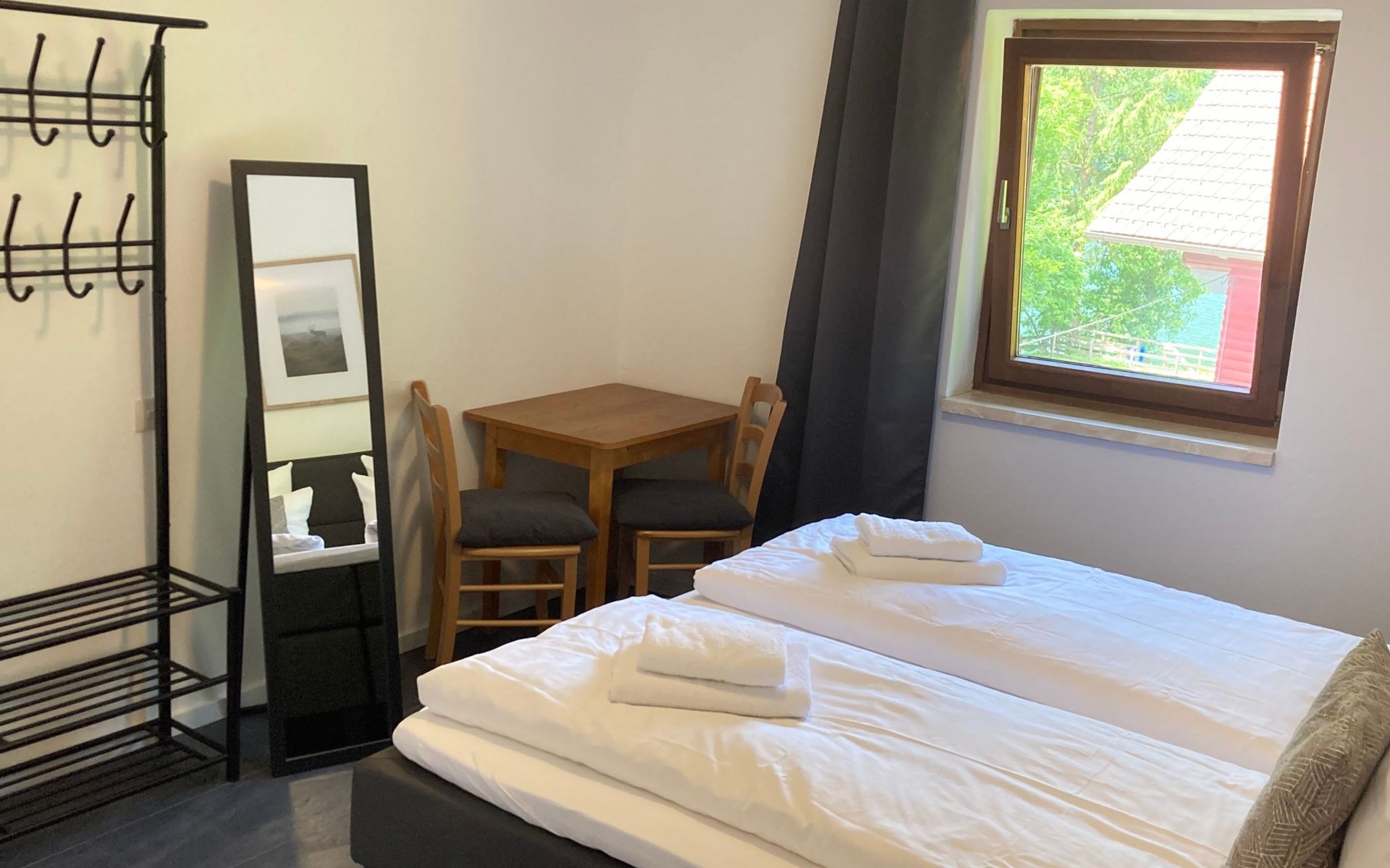 The immediate surroundings of the flat are absolutely stunning with its unique location right on the edge of the forest on the side of a mountain, just 10 metres from the beach and the lake. For active holidaymakers, the surrounding area offers everything from water sports to cycling trails right on the doorstep. The nearest town centre is just 900 metres away, with grocery stores, bus stop and much more within easy reach.