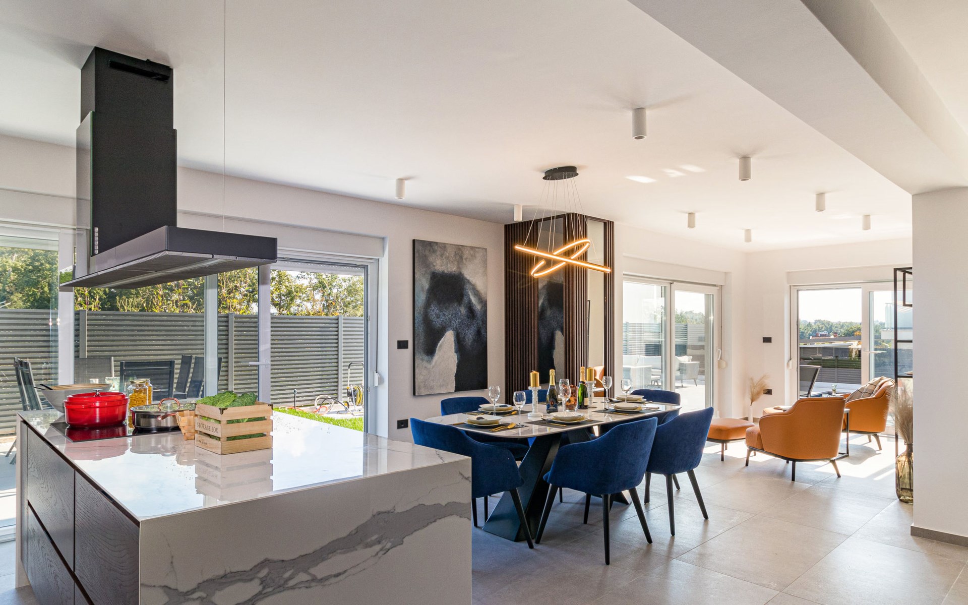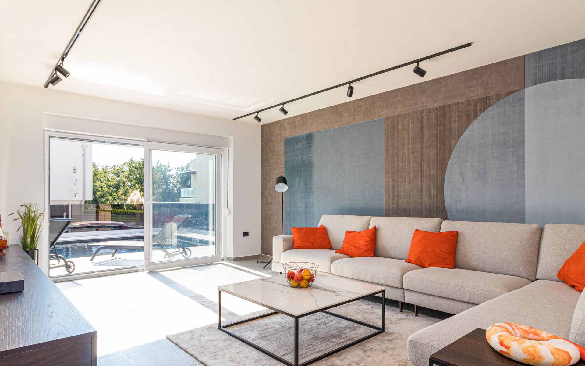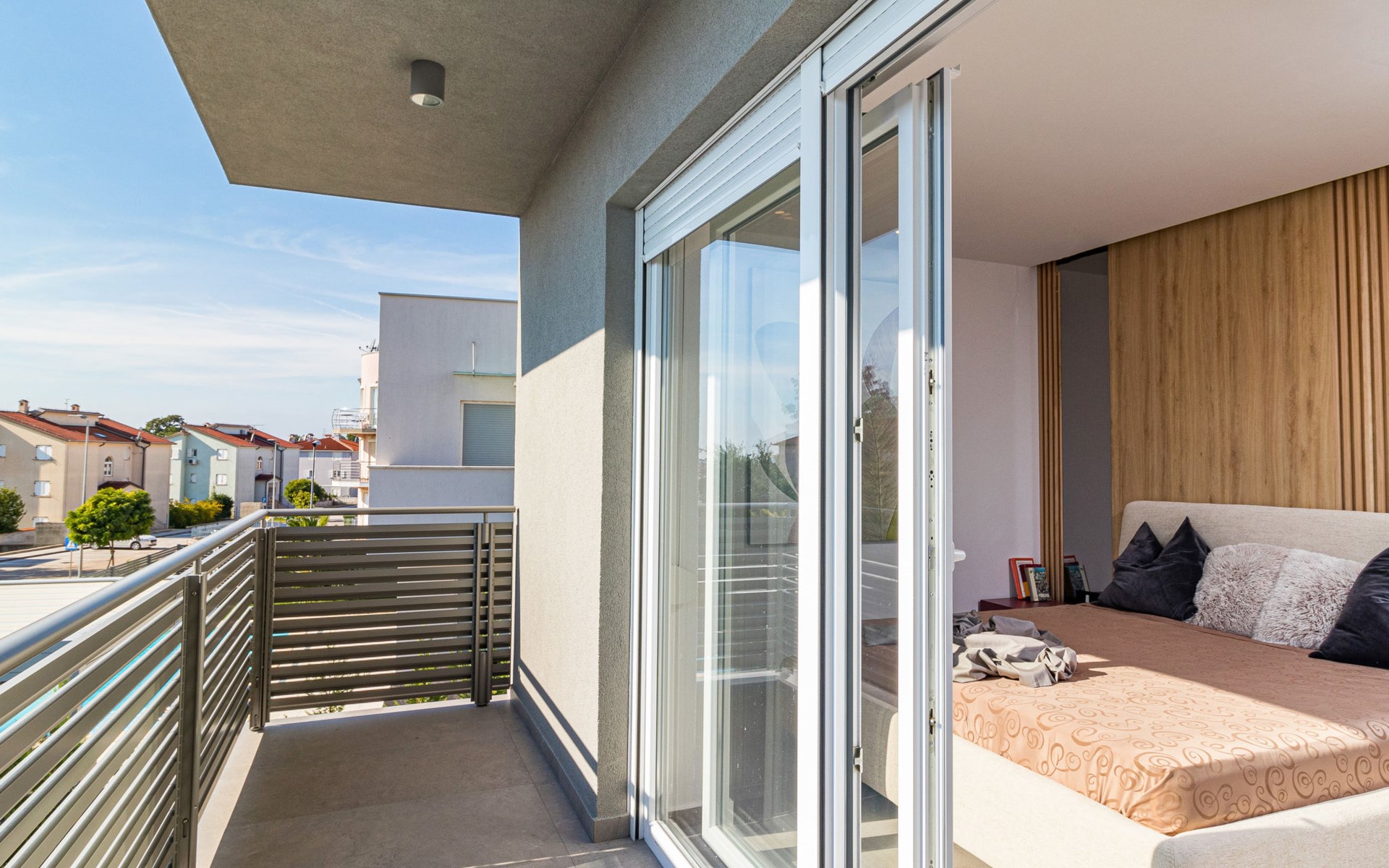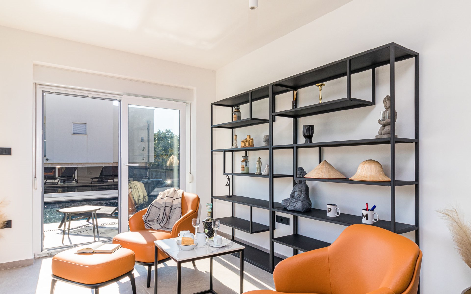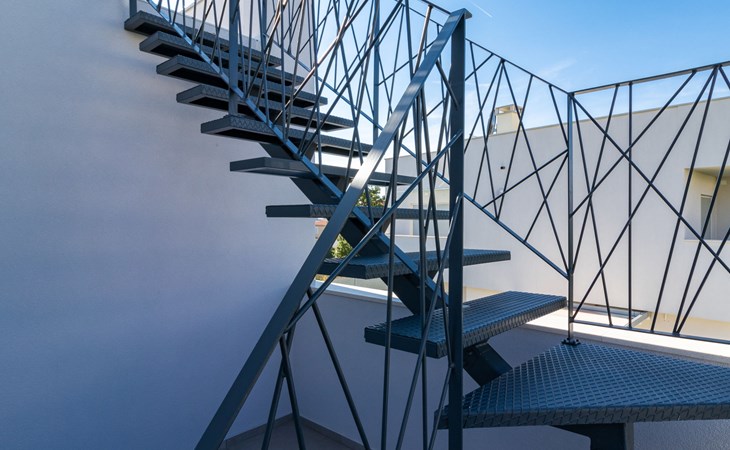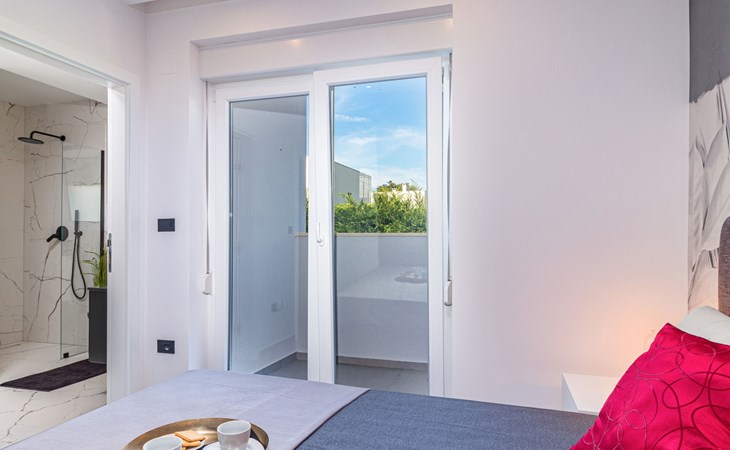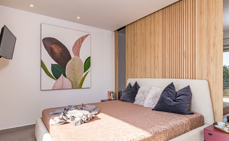 Modern, beautiful villa "Athos", 2 storeys, built in 2020. In the hamlet Karigador 4 km from the centre of Novigrad, in a quiet, sunny position, from the sea, 200 m from the beach. Private: property 550 m2 (fenced), lawn 300 m2, swimming pool angular, heated (8 x 4 m, depth 150 cm, seasonal availability: 01.Jan. - 31.Dec.) with internal staircase. Outdoor shower, arbour (16 m2), pergola (16 m2), garden furniture, barbecue. In the house: internet access, hot tub, roof terrace, burglar alarm system, washing machine. Airport transfer (extra). Parking (for 2 cars) at the house on the premises. Shop 100 m, supermarket 4 km, restaurant, café 100 m, bus stop 400 m, sandy beach, rocky beach 200 m. Children's playground 100 m. Please note: suitable for families. The owner does not accept any youth groups. Swimming pool with hydromassage. It is necessary to announce 7 days in advance if the pool heating is required. Hot tub for 5 persons, garden furniture are situated on the roof terrace (80 m2, exterior staircase).