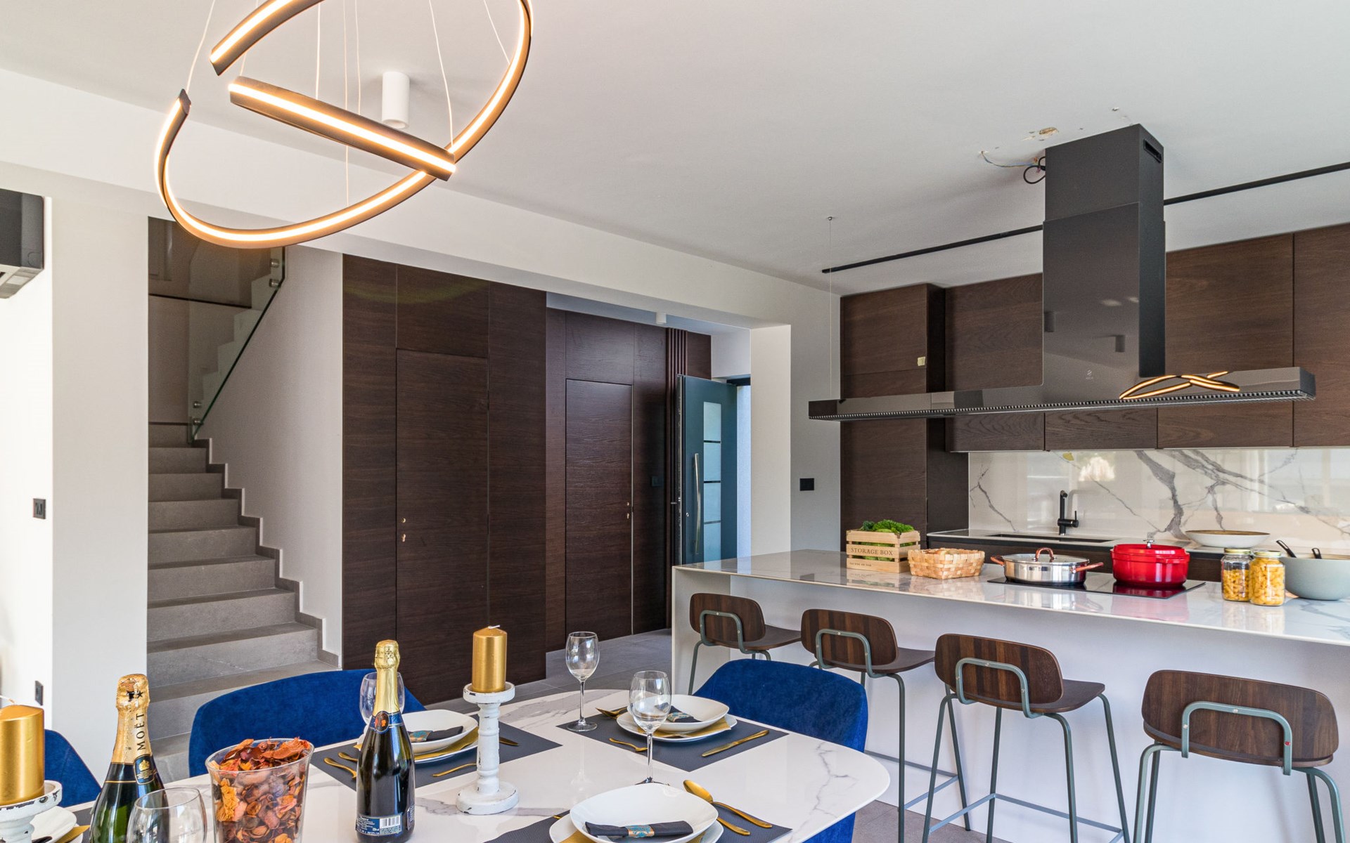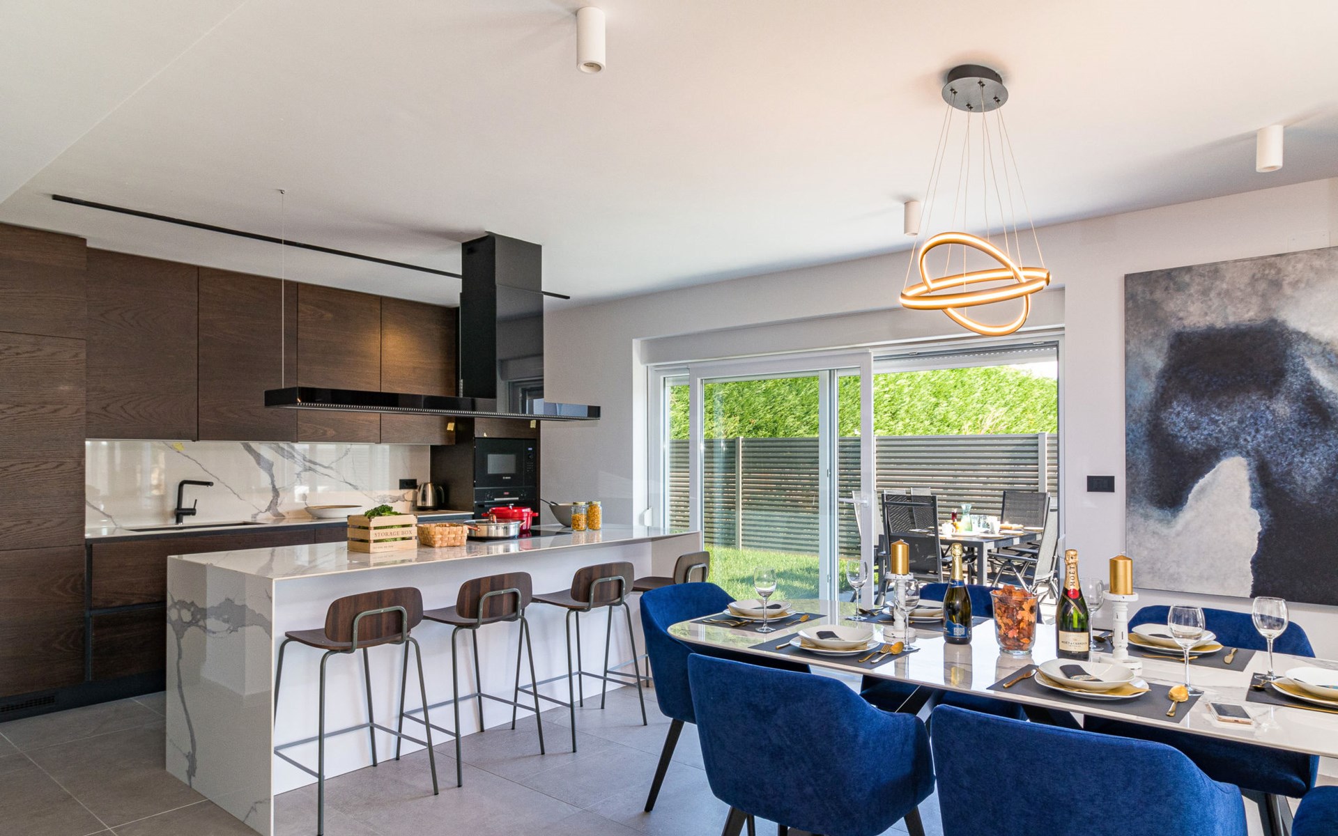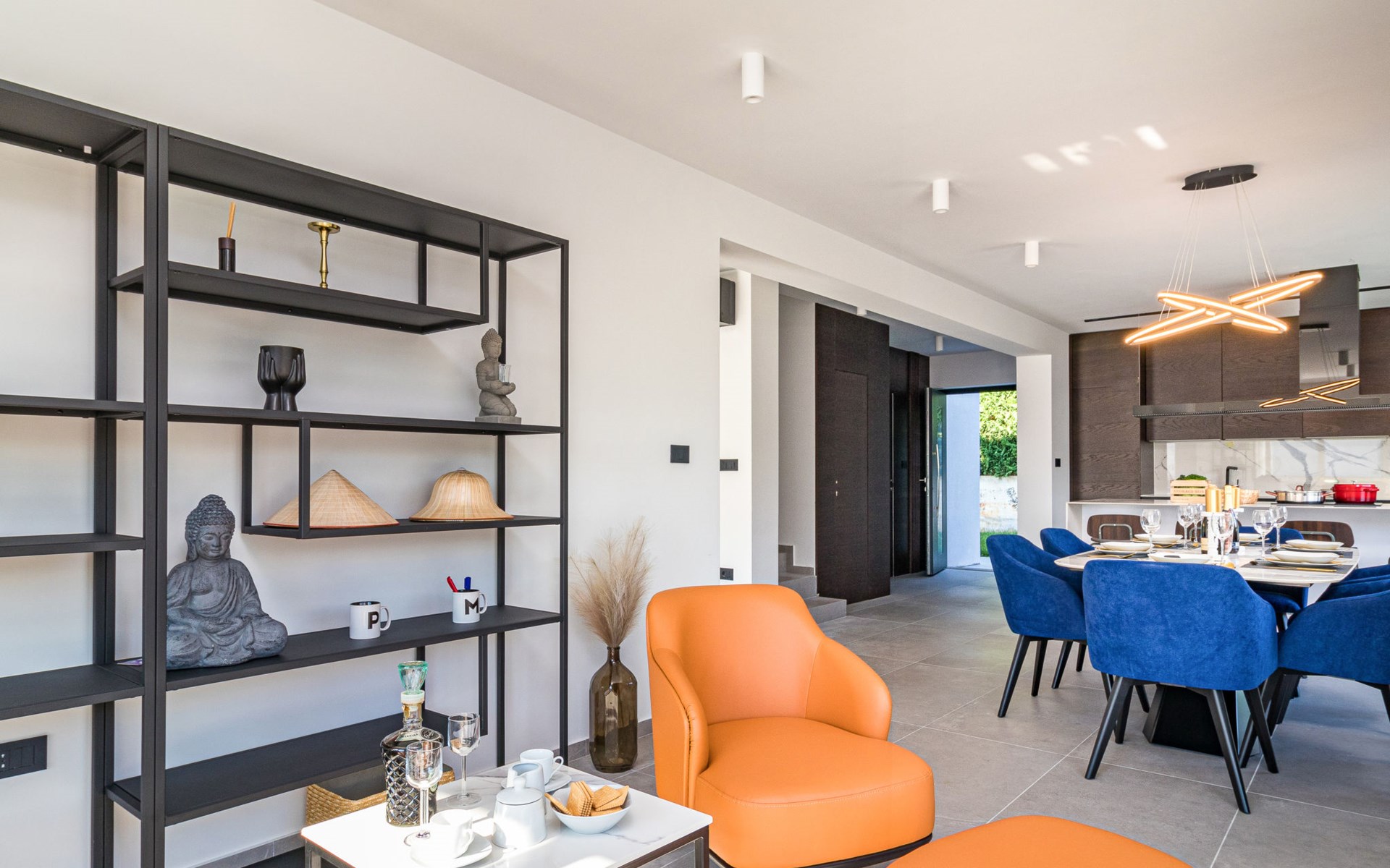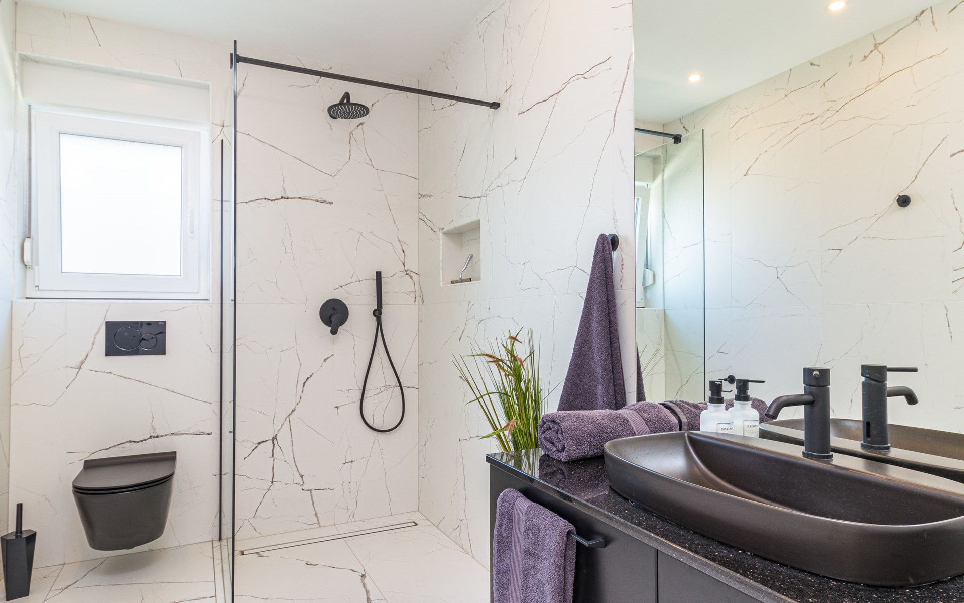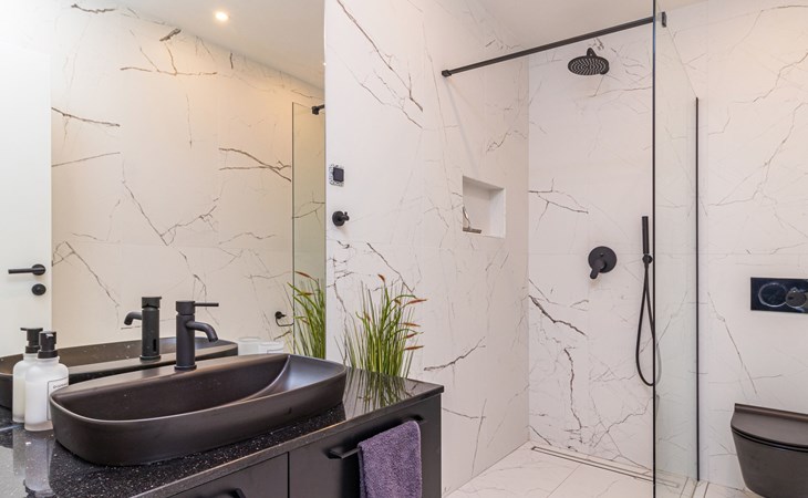 Modern, beautiful villa "Athos", 2 storeys, built in 2020. In the hamlet Karigador 4 km from the centre of Novigrad, in a quiet, sunny position, from the sea, 200 m from the beach. Private: property 550 m2 (fenced), lawn 300 m2, swimming pool angular, heated (8 x 4 m, depth 150 cm, seasonal availability: 01.Jan. - 31.Dec.) with internal staircase. Outdoor shower, arbour (16 m2), pergola (16 m2), garden furniture, barbecue. In the house: internet access, hot tub, roof terrace, burglar alarm system, washing machine. Airport transfer (extra). Parking (for 2 cars) at the house on the premises. Shop 100 m, supermarket 4 km, restaurant, café 100 m, bus stop 400 m, sandy beach, rocky beach 200 m. Children's playground 100 m. Please note: suitable for families. The owner does not accept any youth groups. Swimming pool with hydromassage. It is necessary to announce 7 days in advance if the pool heating is required. Hot tub for 5 persons, garden furniture are situated on the roof terrace (80 m2, exterior staircase).