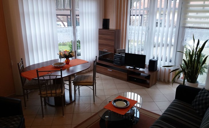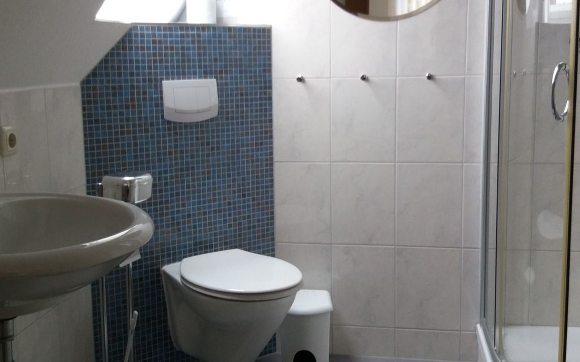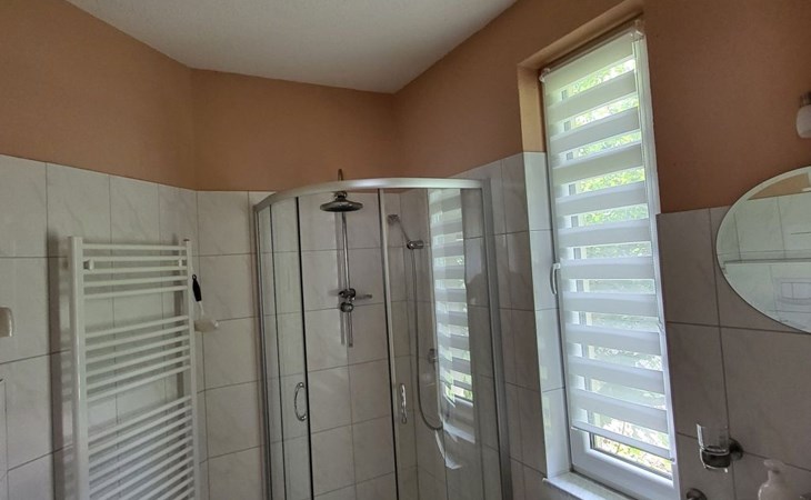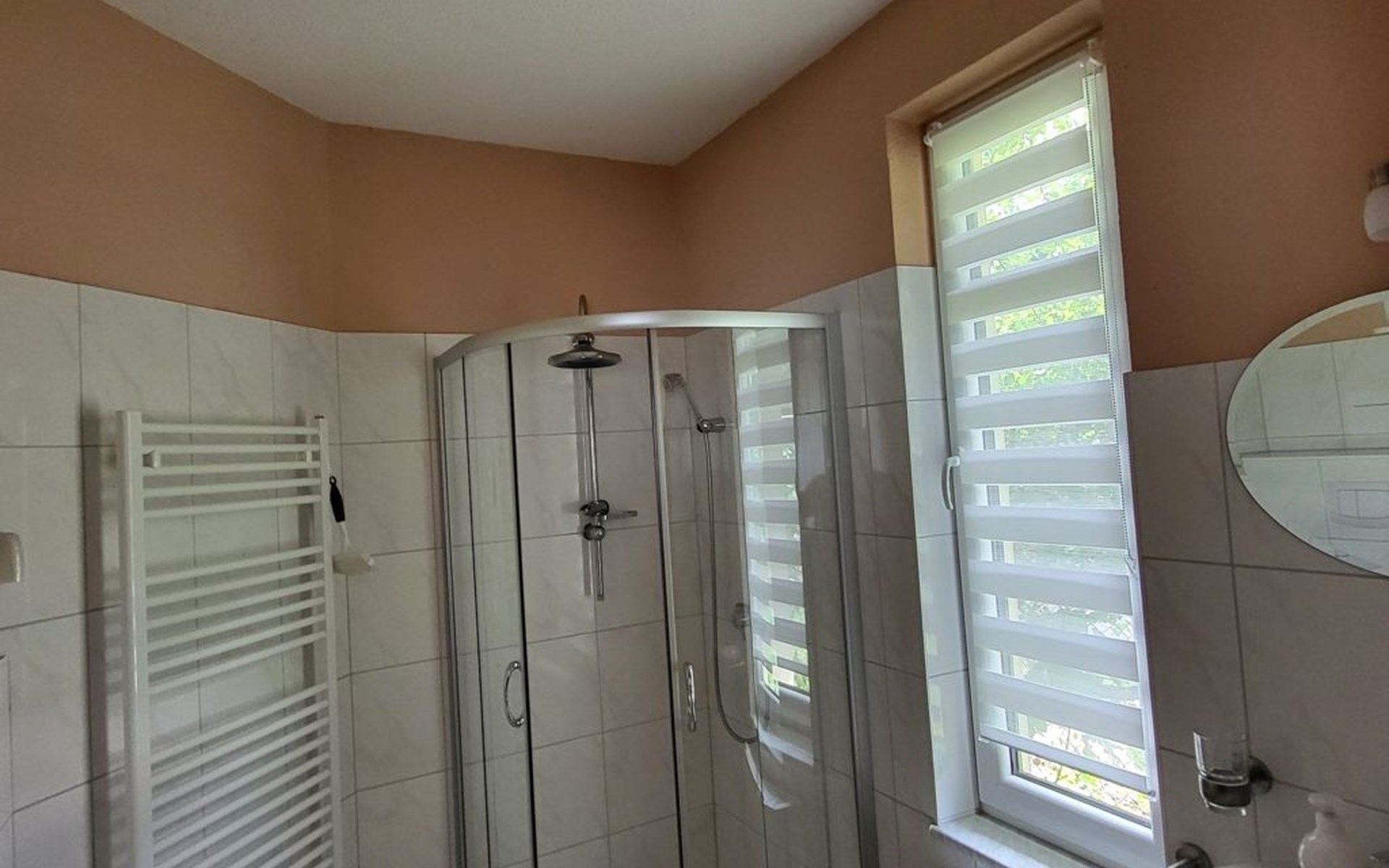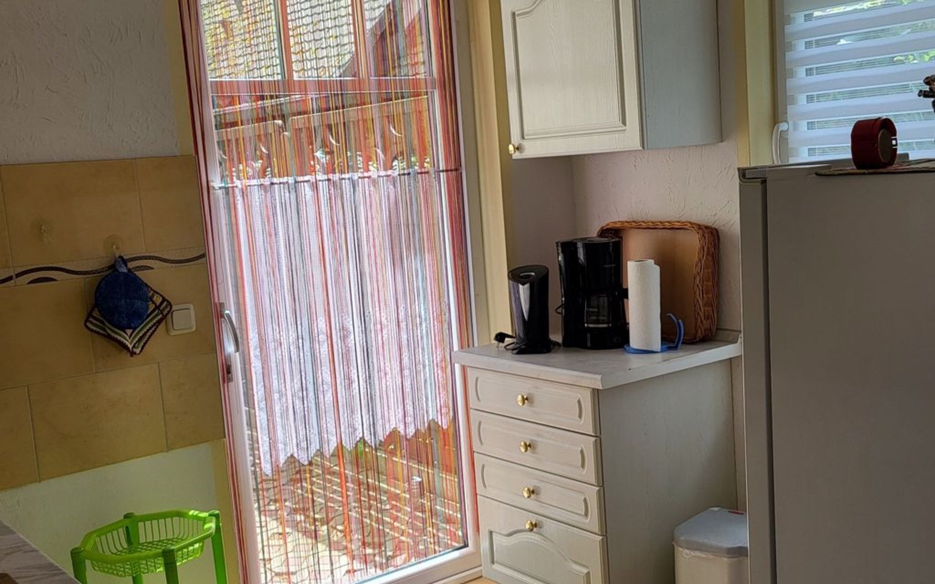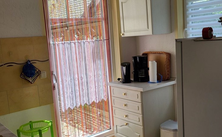 The bedroom is located on the upper floor (1 bed + 1 bed + 1 double bed). There is also a shower/WC on the upper floor. The upper floor can be reached via a spiral staircase. In the outdoor area of the property you can use two terraces, one of which faces the lake. You also have the option of using the garden benches in the garden facing the lake and enjoying the marvellous view over the lake.