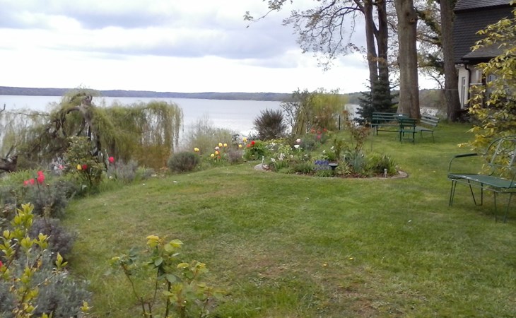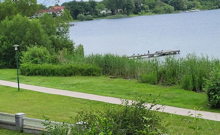 As our holiday home is situated on a hill, you have an unrestricted view of Lake Plau. You can easily reach the lakeside promenade via our property steps. On the lakeside promenade you will find beautiful bathing spots with a dog bathing beach, jetties, kiosks and hotel restaurants.