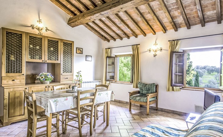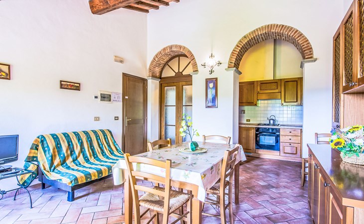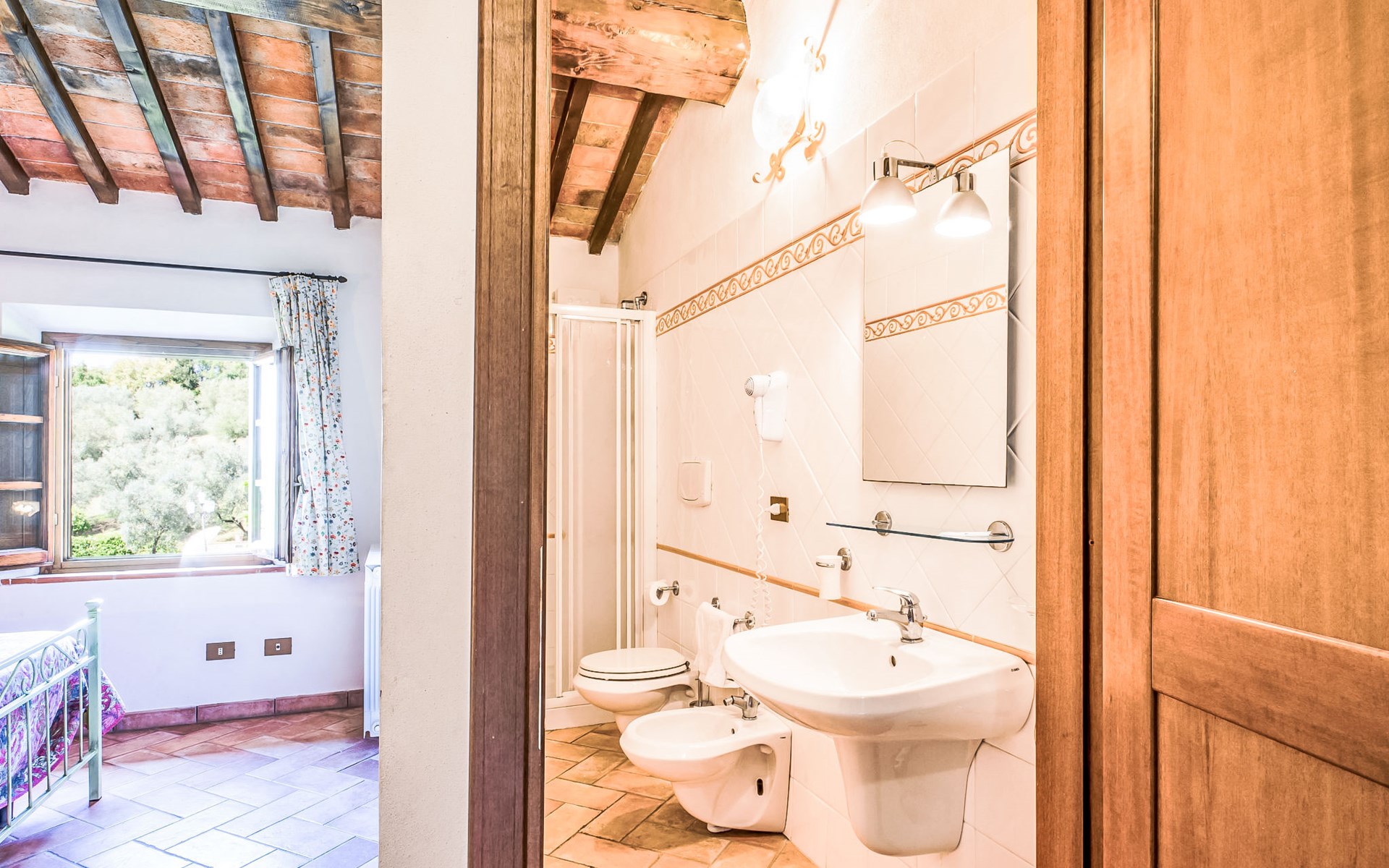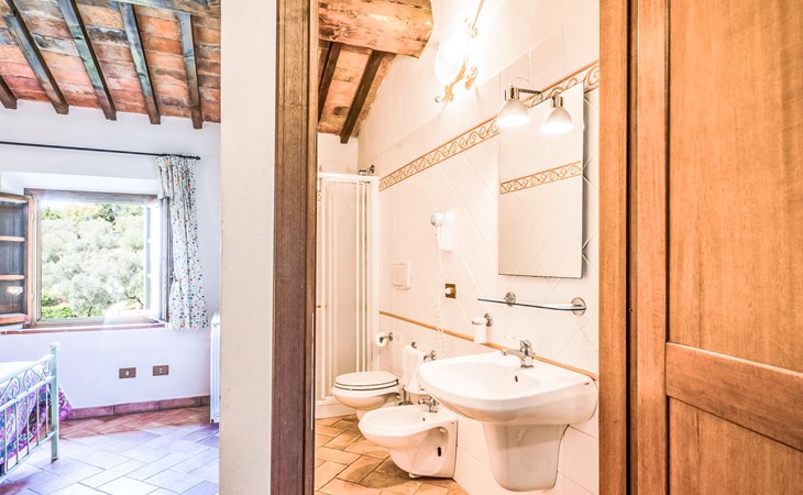 Large working farm "Montereggi", built in 1600. 12 apartments in the property. 12 km from the centre of Vinci, 33 km from the centre of Firenze, 45 km from the centre of San Gimignano, in a secluded, quiet, sunny position on top of a hill, in the countryside. For shared use: property 100 ha, swimming pool fenced (18 x 8 m, depth 100 - 150 cm, seasonal availability: 04.May. - 28.Sep.). Outdoor shower, garden furniture, barbecue. In the complex: WiFi, washing machine. Motor access to the house (600 m via unmade road). Parking at the house. E-charging station. Grocery 1 km, supermarket 3 km, bus stop 300 m, railway station "Montelupo Fiorentino" 3 km, thermal baths "Montecatini Terme" 33 km. Golf course (9 hole) 9 km. Nearby attractions: Montelupo Fiorentino 5 km, Carmignano 10 km, San Miniato 17 km, San Casciano in Val di Pesa 22 km. Local sale of farm products. Please note: the photograph shows a typical example.
