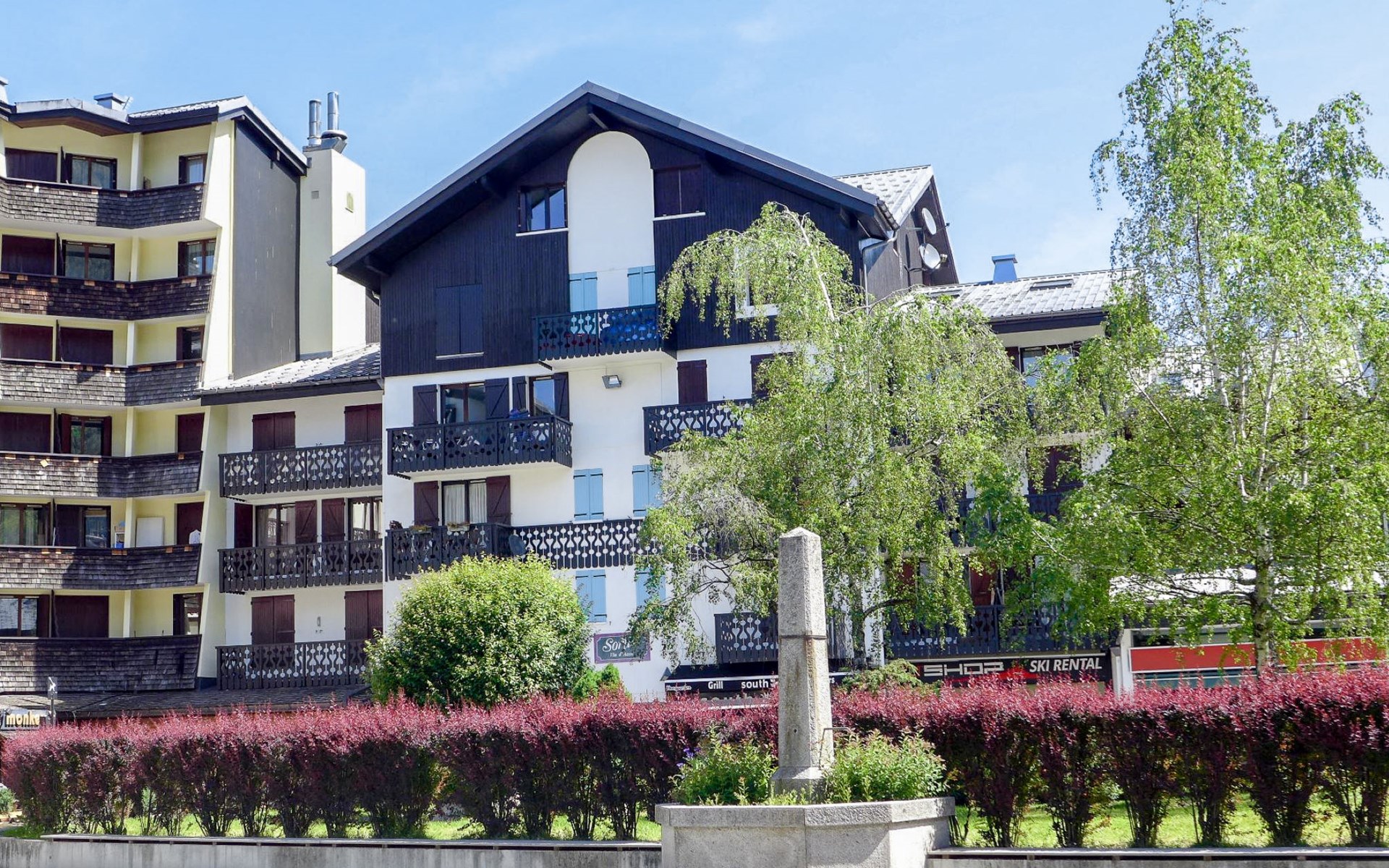 Residence "Le Chailloud", 3 storeys. In the district of Chamonix Sud, 600 m from the centre, in a busy position. In the complex: lift. Shop 50 m, supermarket, shopping centre 600 m, restaurant 50 m, bar, bus stop 200 m, railway station 800 m. Golf course (18 hole) 4.4 km, sports centre 1 km, skisport facilities 1 km, cross country ski track 1 km. Please note: nightclub/disco close by.