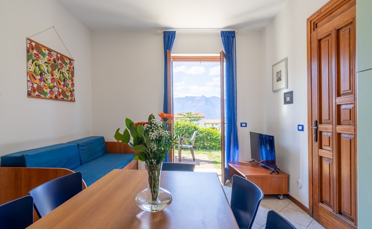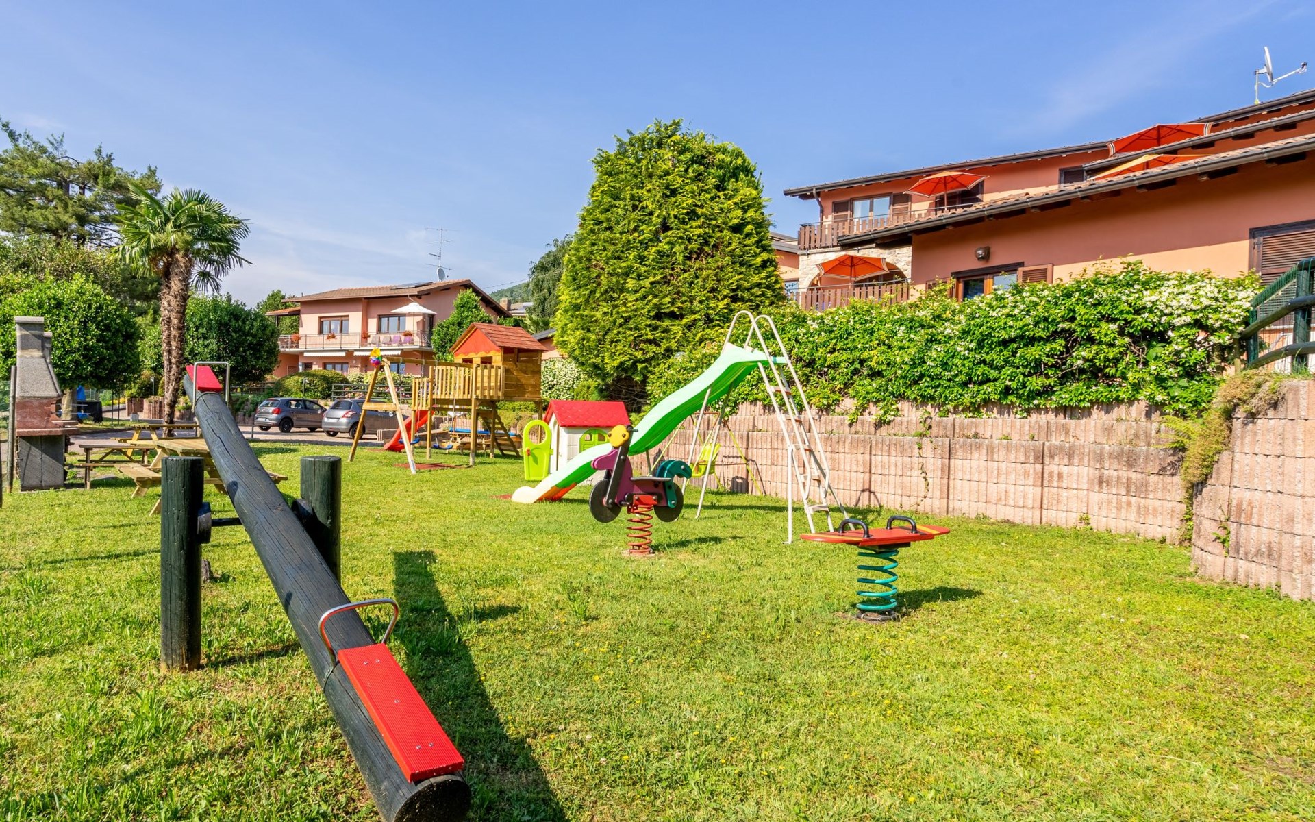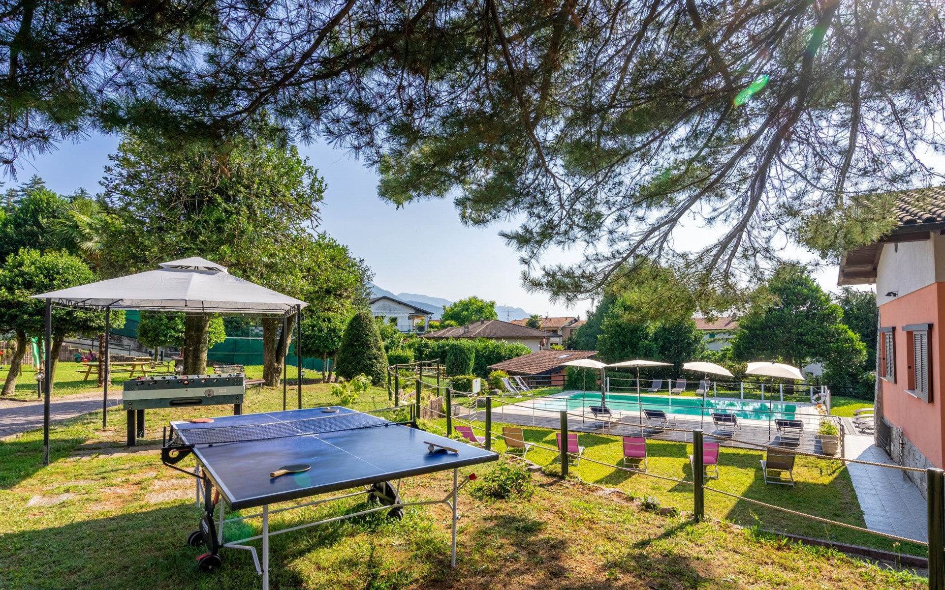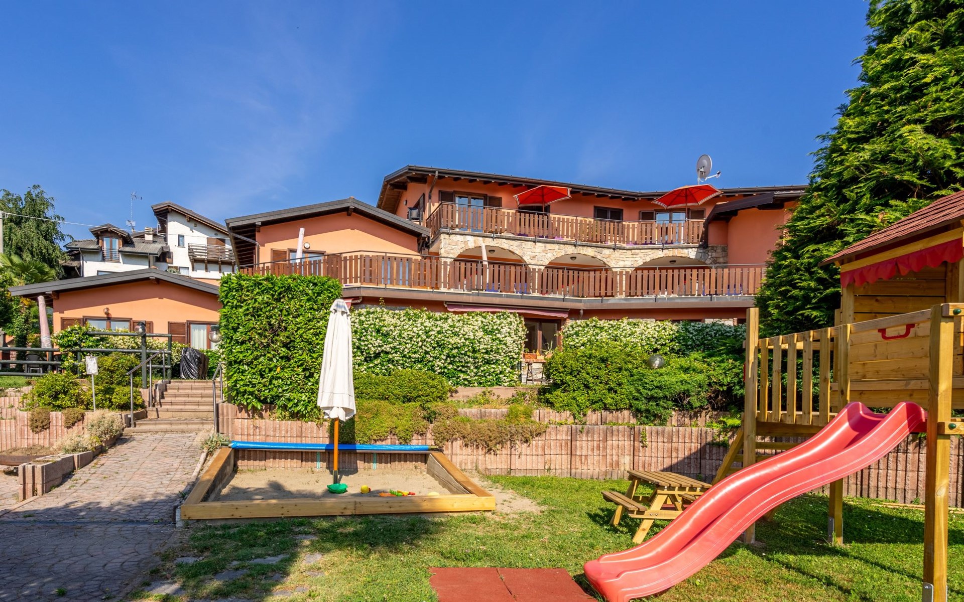 Holiday development "Residenza Agrifoglio". 17 apartments in the property. 2 km from the centre of Luino, in a sunny, elevated position, 3 km from the lake, in a cul-de-sac. For shared use: property (fenced) with lawn and trees, swimming pool (12 x 5 m, depth 140 cm, seasonal availability: 01.May. - 30.Sep. pool opening hours: 09:00-20:00). Outdoor shower, table tennis, volleyball court, barbecue, children's playground. In the house: washing machine (for shared use, extra), heating available only from 05.Oct. - 25.Apr.. 50 m long steep motor access to the house. Parking on the premises. E-charging station. Shop 2 km, supermarket 2 km, restaurant 1.5 km, bar 1.5 km, bus stop 400 m, railway station "Luino" 3 km, shingle beach "Le Serenelle" 3 km, indoor swimming pool 400 m. Tennis 400 m. Nearby attractions: Maccagno 12 km, Laveno 20 km. Please note: car recommended, no lift. Residence with electric gates. Animals in the neighbourhood. Residence consisting of apartments distributed in small buildings with a small garden and / or private balcony. One parking space for each apartment (2 for 6-person apartments). Unattended swimming pool. 2 charging stations available (the activation card must be booked in advance).