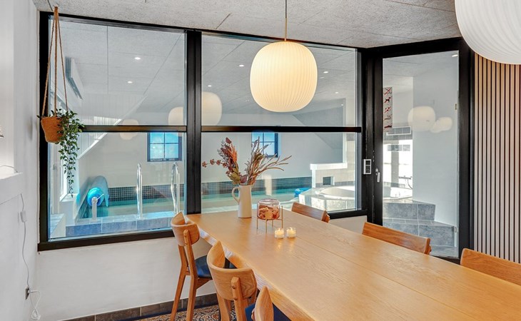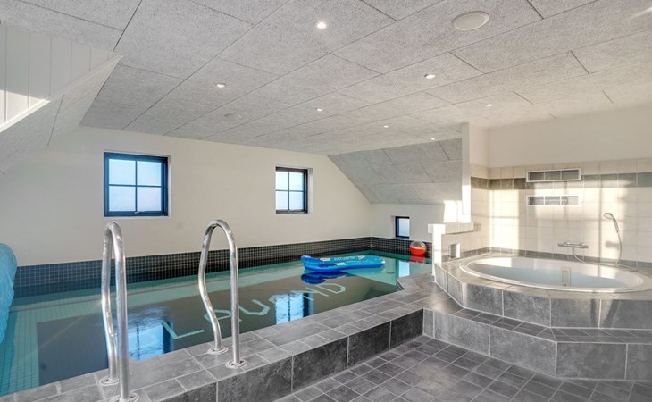 Single-family house, built in 1990. 1.3 km from the sea. Private: property 1'026 m2, indoor pool (3 x 7 m, 2'6.3 m2, depth 120 - 120 cm). Terrace (40 m2). In the house: sauna, washing machine, tumble dryer. Parking at the house. E-charging station. Grocery 200 m. The owner does not accept any youth groups.