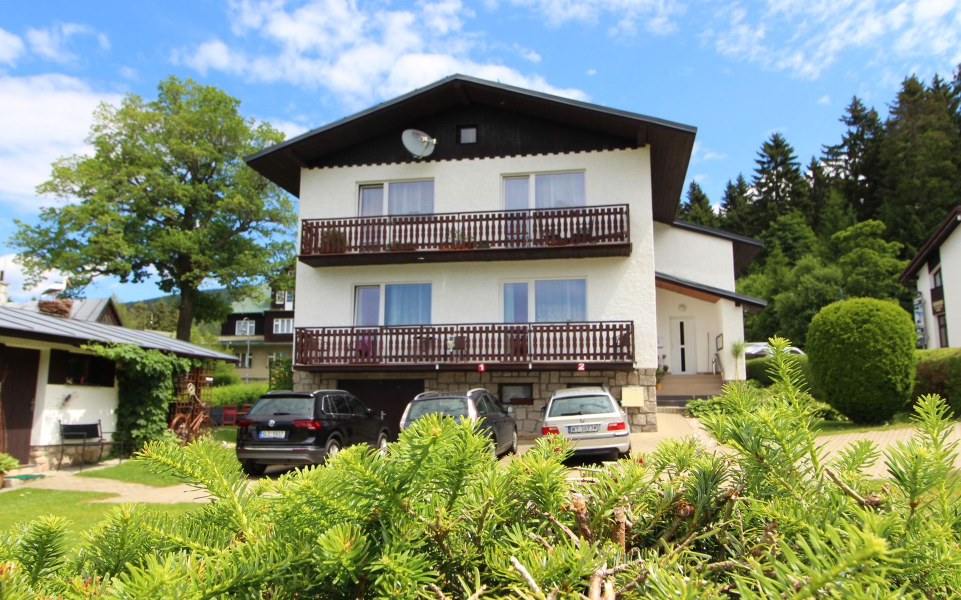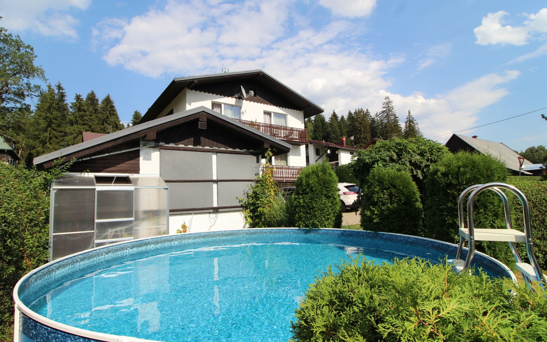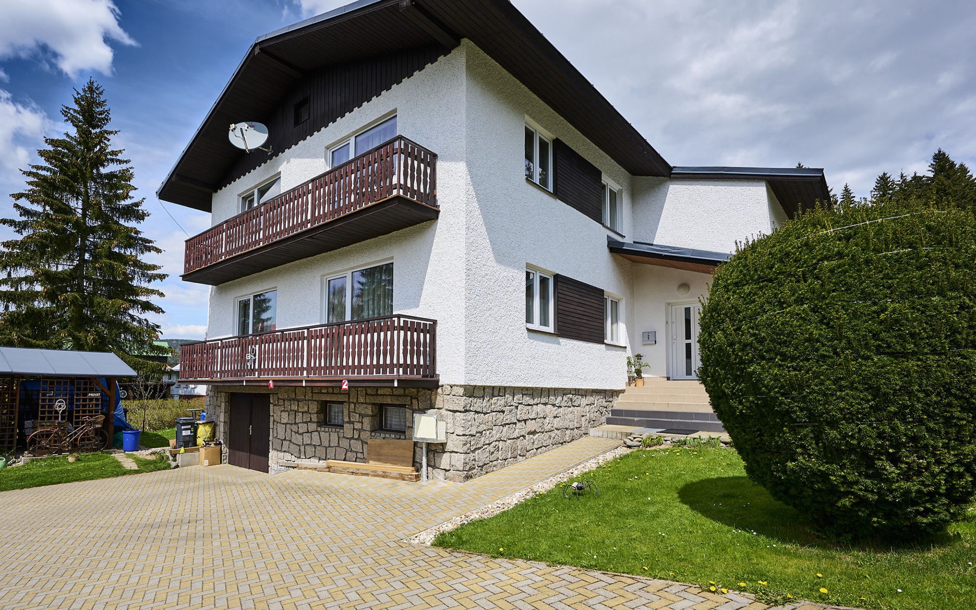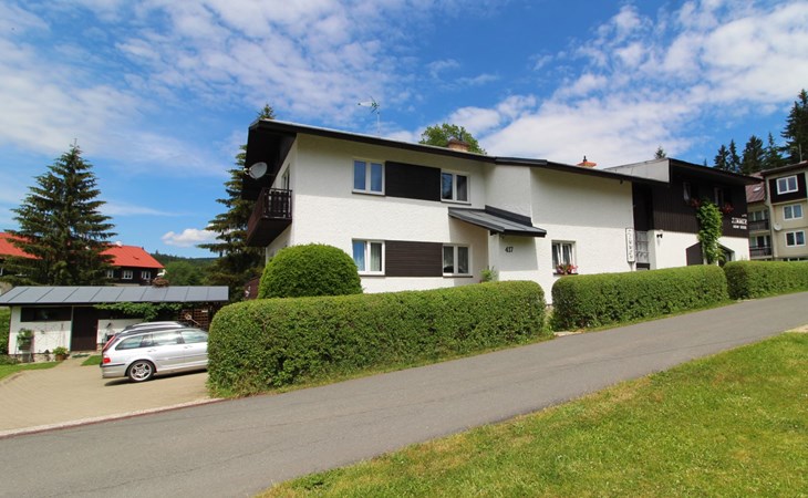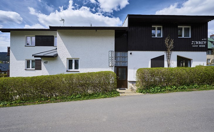 Comfortable house "Nový Svět 417", 2 storeys, detached. In the district of Nový Svět, in the resort 300 m from the centre of Harrachov, 800 m from the skiing area. For shared use: property, garden. In the house: storage room for skis, central heating system. Parking at the house. Supermarket 200 m, restaurant, café 100 m, bicycle rental 1.5 km, bus stop "U Karolíny" 100 m, railway station "Harrachov" 2.1 km, outdoor swimming pool 1.5 km. Golf course (9 hole) 3 km, tennis 1 km, ski lift 500 m, chair lift 800 m, slopes 500 m, ski rental 10 m, ski school 300 m, cross country ski track 200 m, children's playground 300 m. Nearby attractions: Bobová dráha, Muzeum skla 300 m, Skokanské můstky Harrachov 1.3 km, Mumlavský vodopád 1.9 km, Vodopády Kamienczyka, Szklarki (PL) 6.6 km, Huťský vodopád, Vosecká bouda, Dvořačky 9 km, Aquapark Babylon Liberec 34 km. Well-known ski regions can easily be reached: Čertova hora 800 m, Zákoutí 1,5 km, Ryžoviště 3 km, Kořenov 6,5 km, Rokytnice nad Jizerou 14 km. Hiking paths: Western City(Pl) 40 km, Karpacz Wang,Park miniatury Kowary (Pl) 44 km, Giganteria Piechowice 23km, Dinopark(Pl) 15 km.