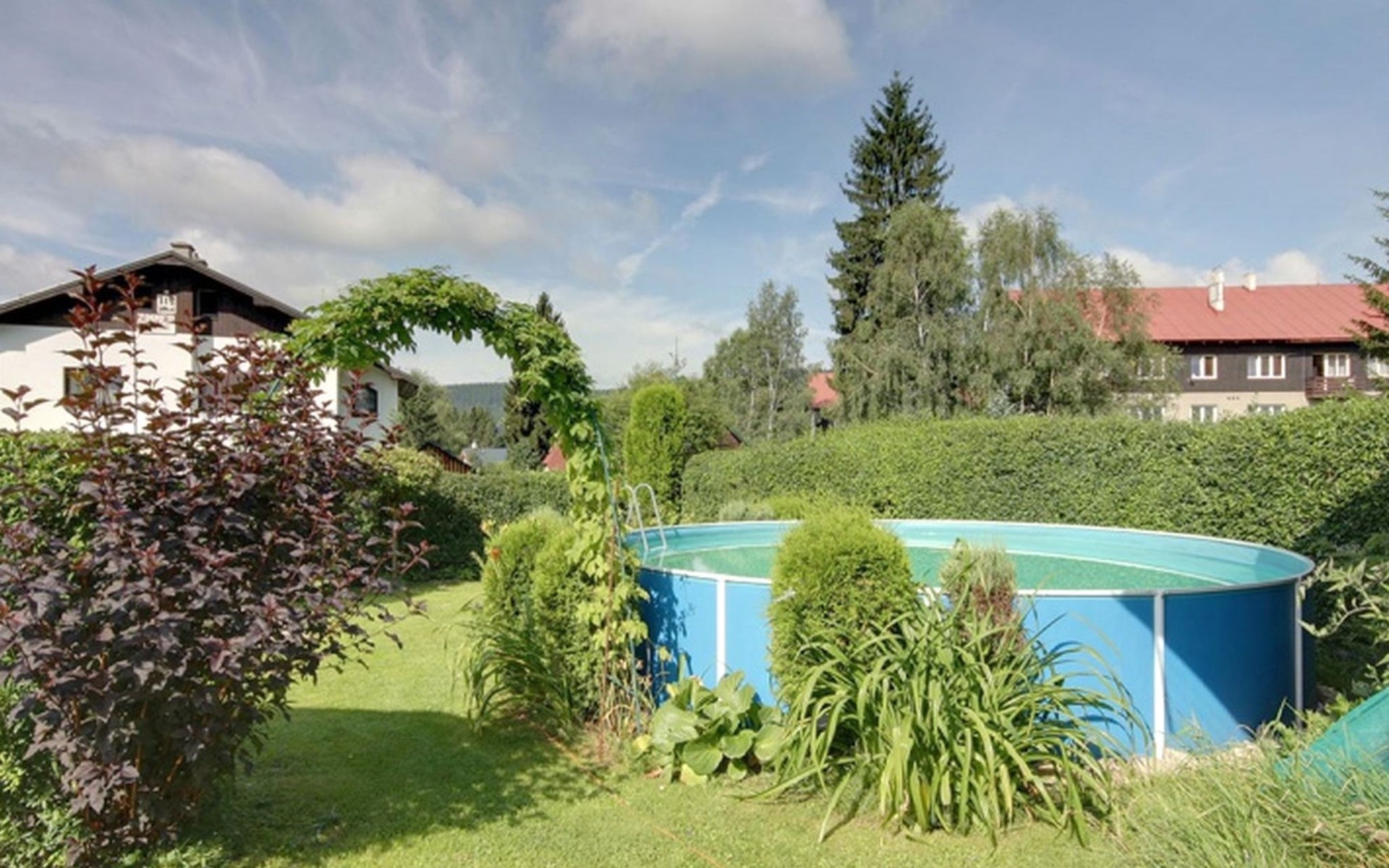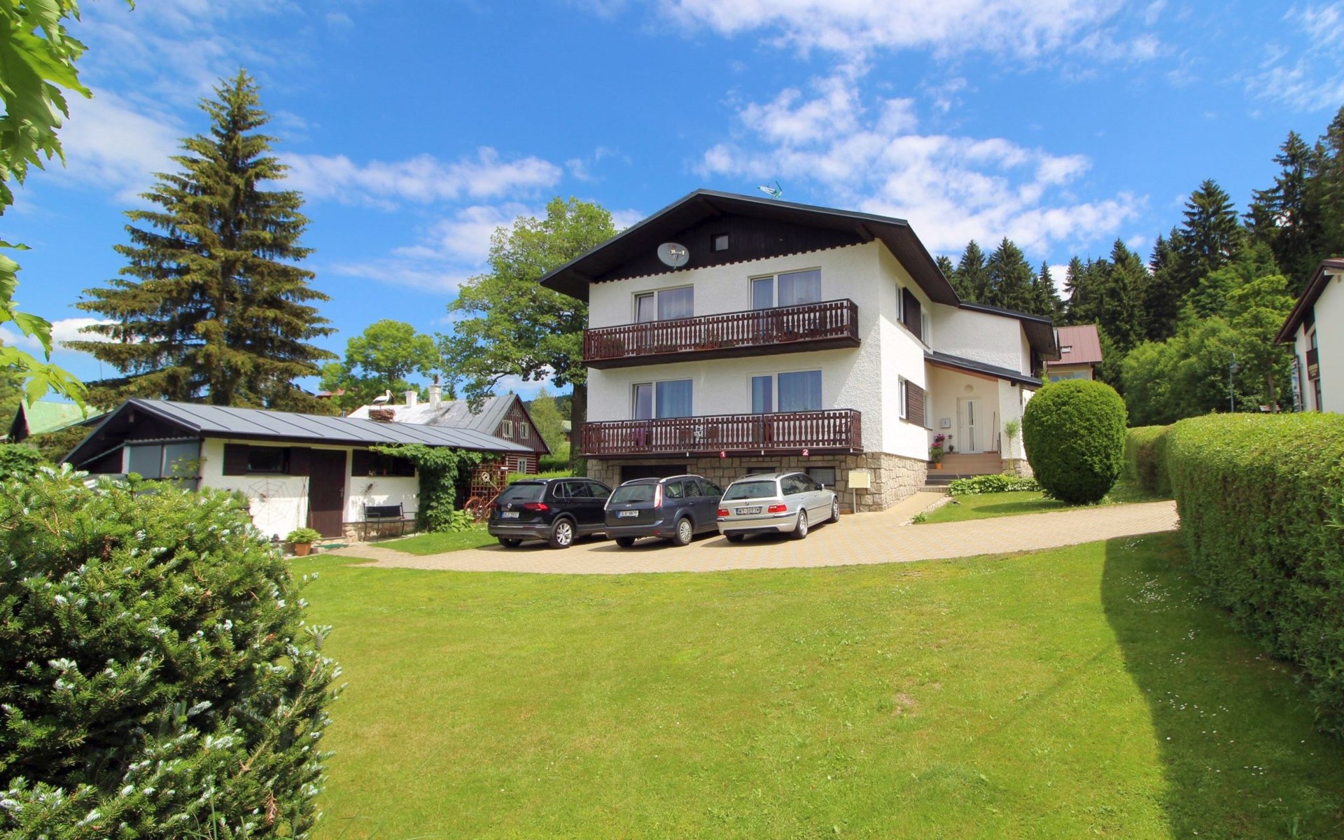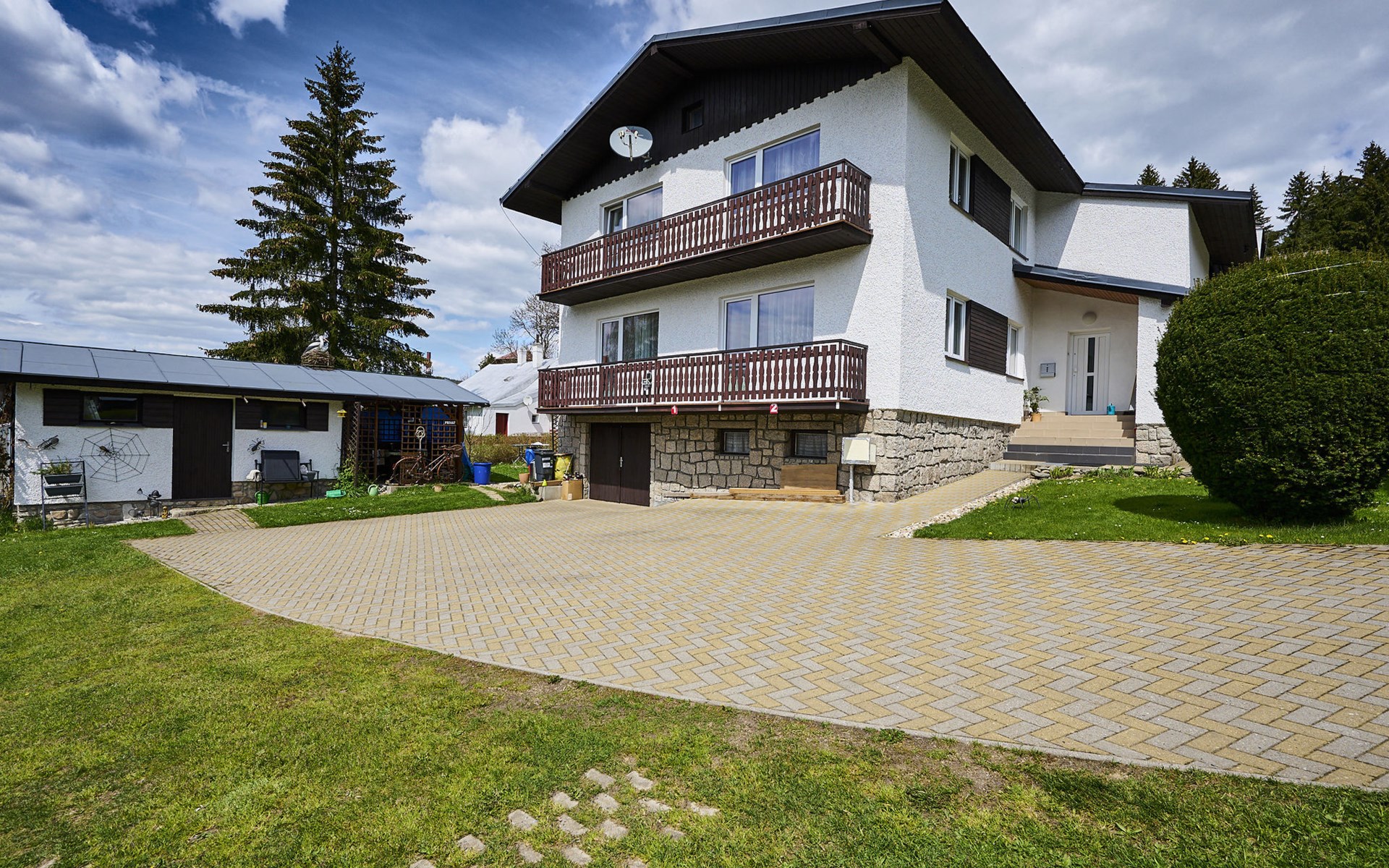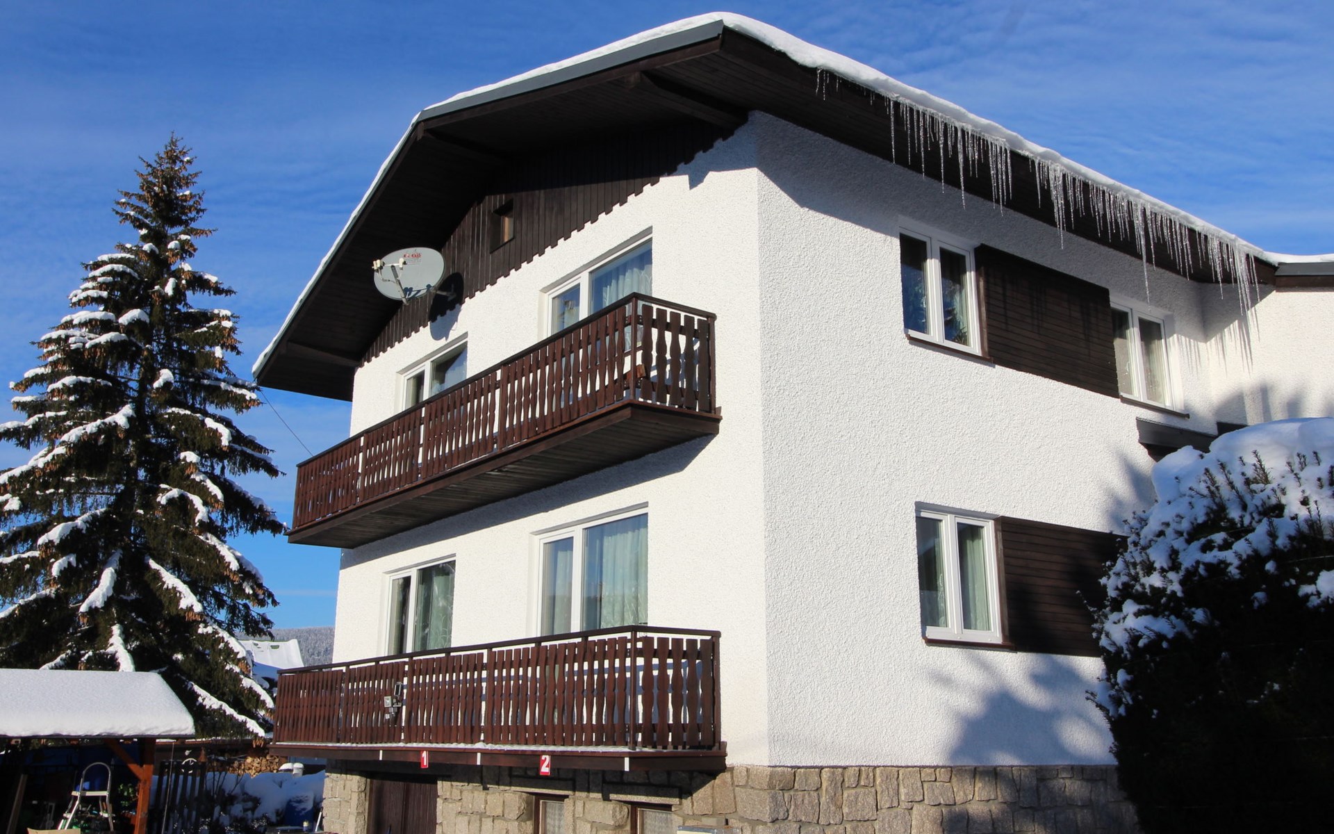 Comfortable house "Nový Svět 417", 2 storeys, detached. In the district of Nový Svět, in the resort 300 m from the centre of Harrachov, 800 m from the skiing area. For shared use: property, garden. In the house: storage room for skis, central heating system. Parking at the house. Supermarket 200 m, restaurant, café 100 m, bicycle rental 1.5 km, bus stop "U Karolíny" 100 m, railway station "Harrachov" 2.1 km, outdoor swimming pool 1.5 km. Golf course (9 hole) 3 km, tennis 1 km, ski lift 500 m, chair lift 800 m, slopes 500 m, ski rental 10 m, ski school 300 m, cross country ski track 200 m, children's playground 300 m. Nearby attractions: Bobová dráha, Muzeum skla 300 m, Skokanské můstky Harrachov 1.3 km, Mumlavský vodopád 1.9 km, Vodopády Kamienczyka, Szklarki (PL) 6.6 km, Huťský vodopád, Vosecká bouda, Dvořačky 9 km, Aquapark Babylon Liberec 34 km. Well-known ski regions can easily be reached: Čertova hora 800 m, Zákoutí 1,5 km, Ryžoviště 3 km, Kořenov 6,5 km, Rokytnice nad Jizerou 14 km. Hiking paths: Western City(Pl) 40 km, Karpacz Wang,Park miniatury Kowary (Pl) 44 km, Giganteria Piechowice 23km, Dinopark(Pl) 15 km.