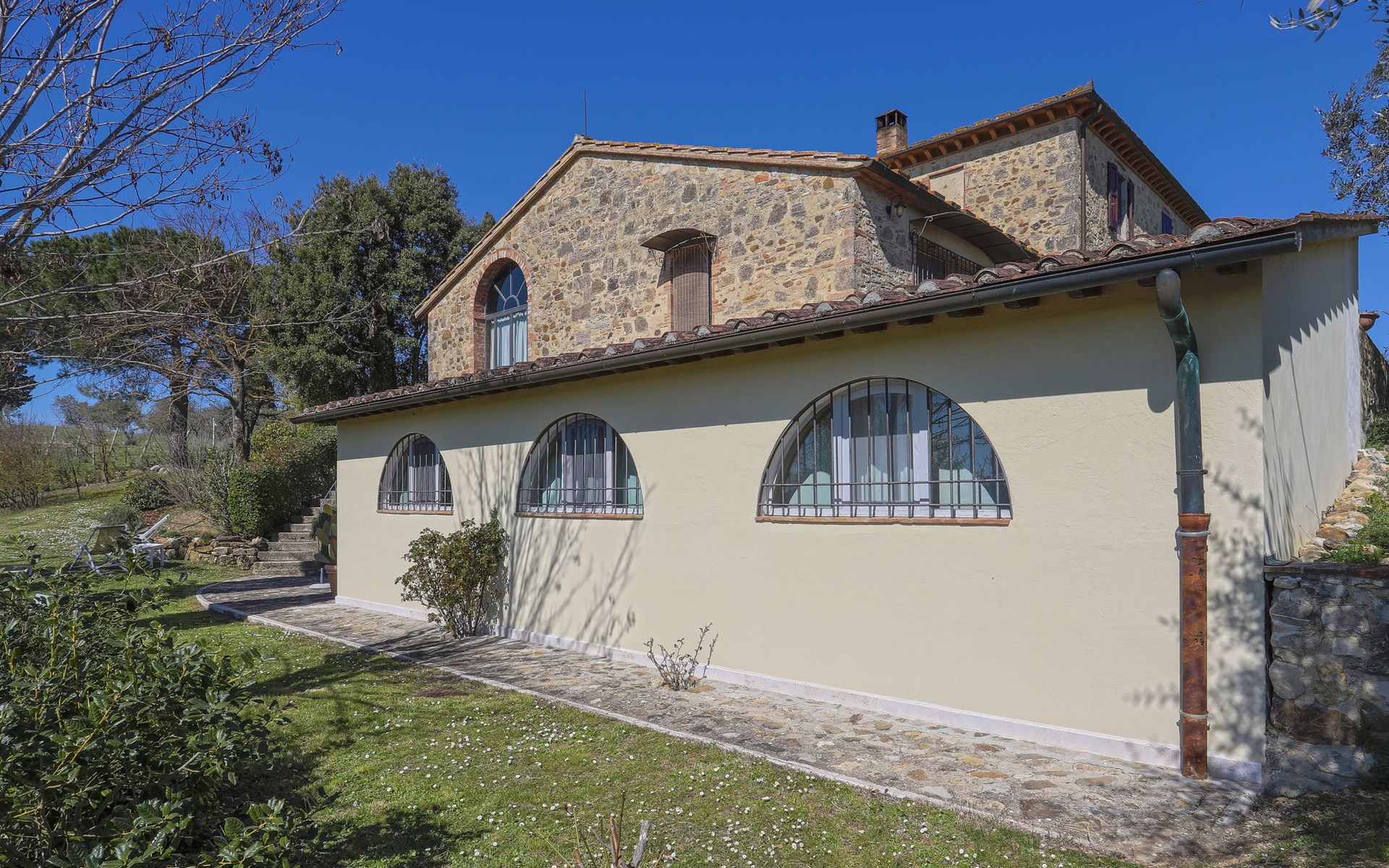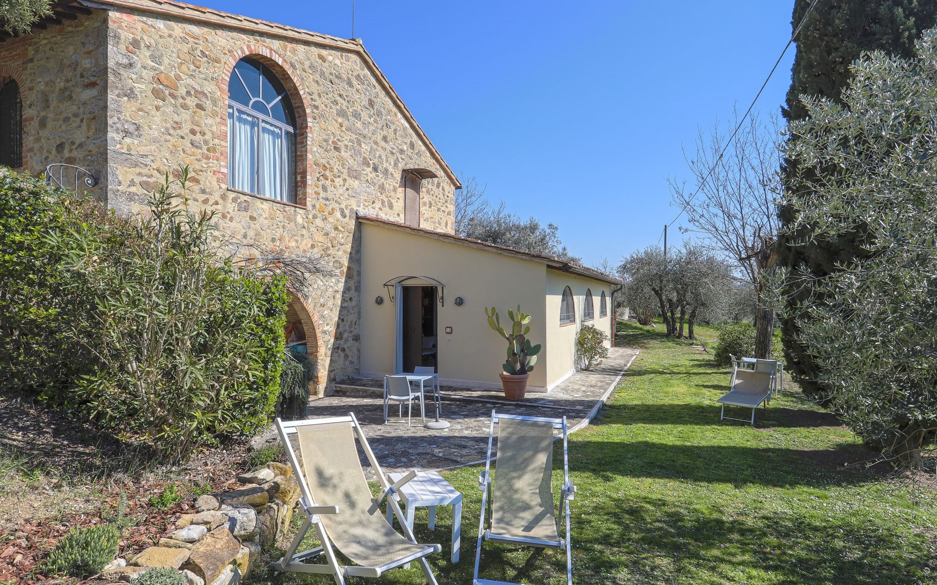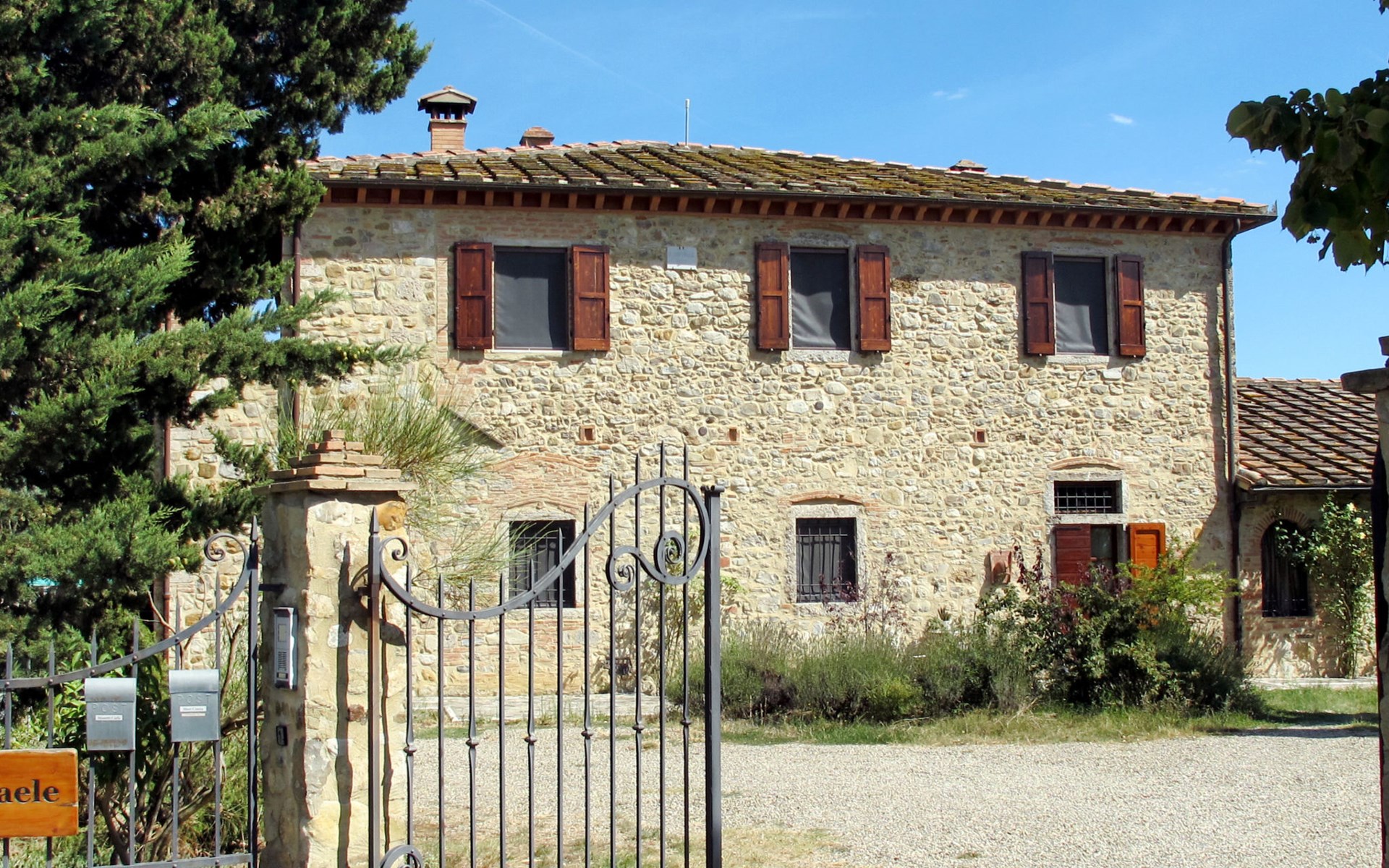 Country house "Podere San Raffaele", surrounded by trees, fields and vineyards. 3 apartments in the residence. 5 km from the centre of Poggibonsi, 11 km from the centre of Castellina in Chianti, 20 km from the centre of San Gimignano. For shared use: garden 1 ha with trees, natural garden, meadow. Barbecue. 1.8 km long motor access (via unmade road). Parking on the premises. Grocery 5 km, supermarket 5 km, restaurant 5 km, bus stop 5 km, railway station "Poggibonsi" 5 km, sandy beach "Cecina Mare" 75 km, outdoor swimming pool 5 km, indoor swimming pool 5 km. Local sale of farm products. Please note: the owner lives in the same residence.