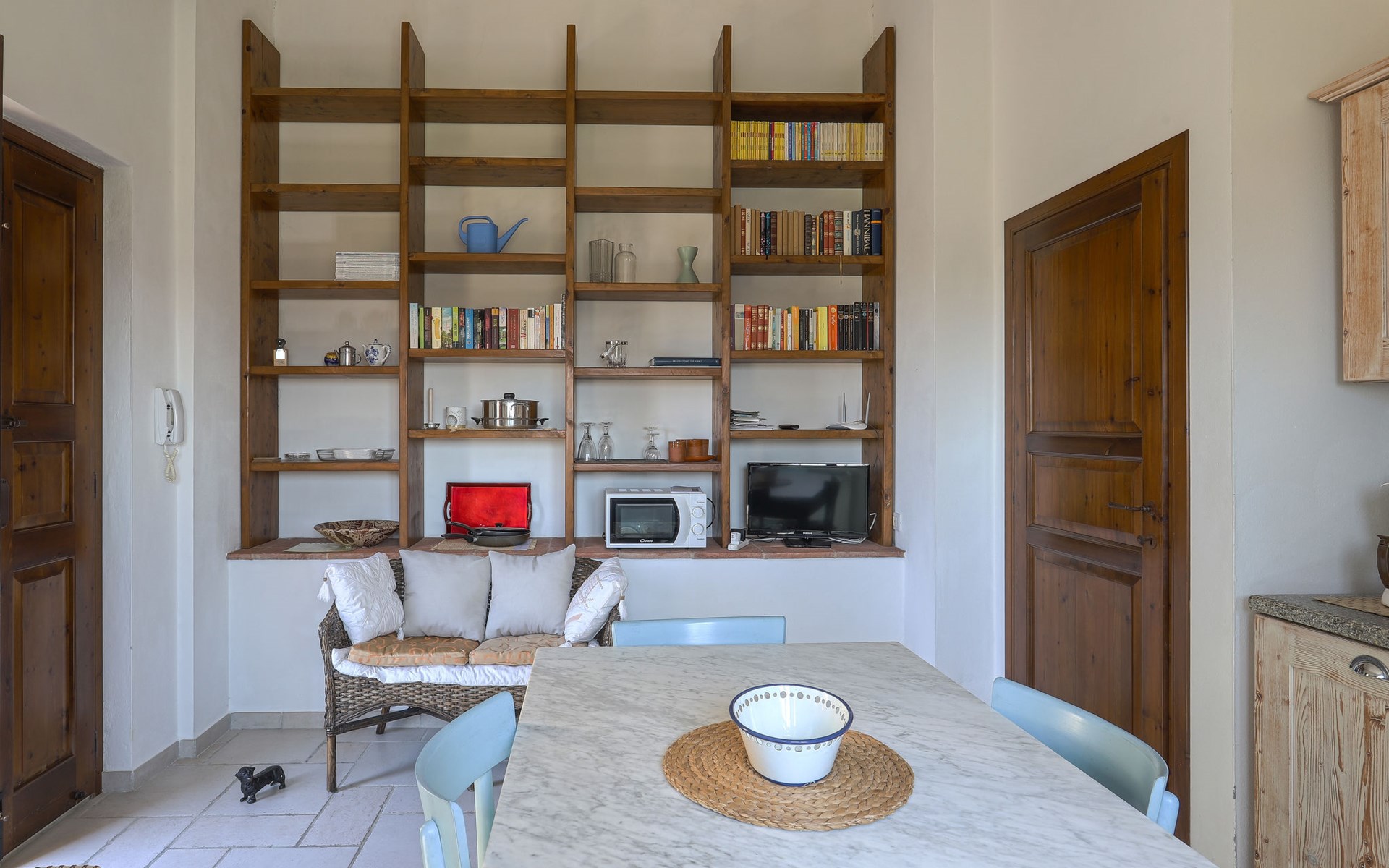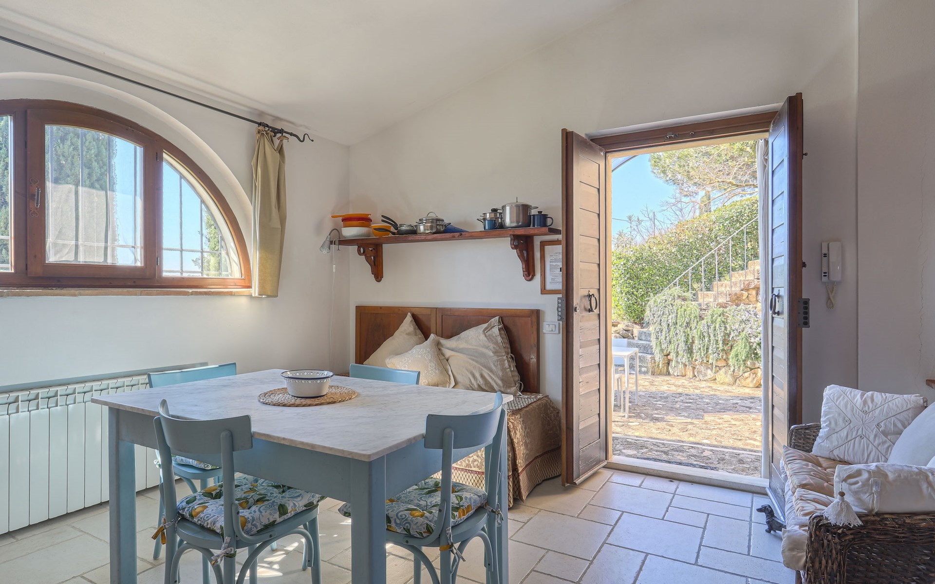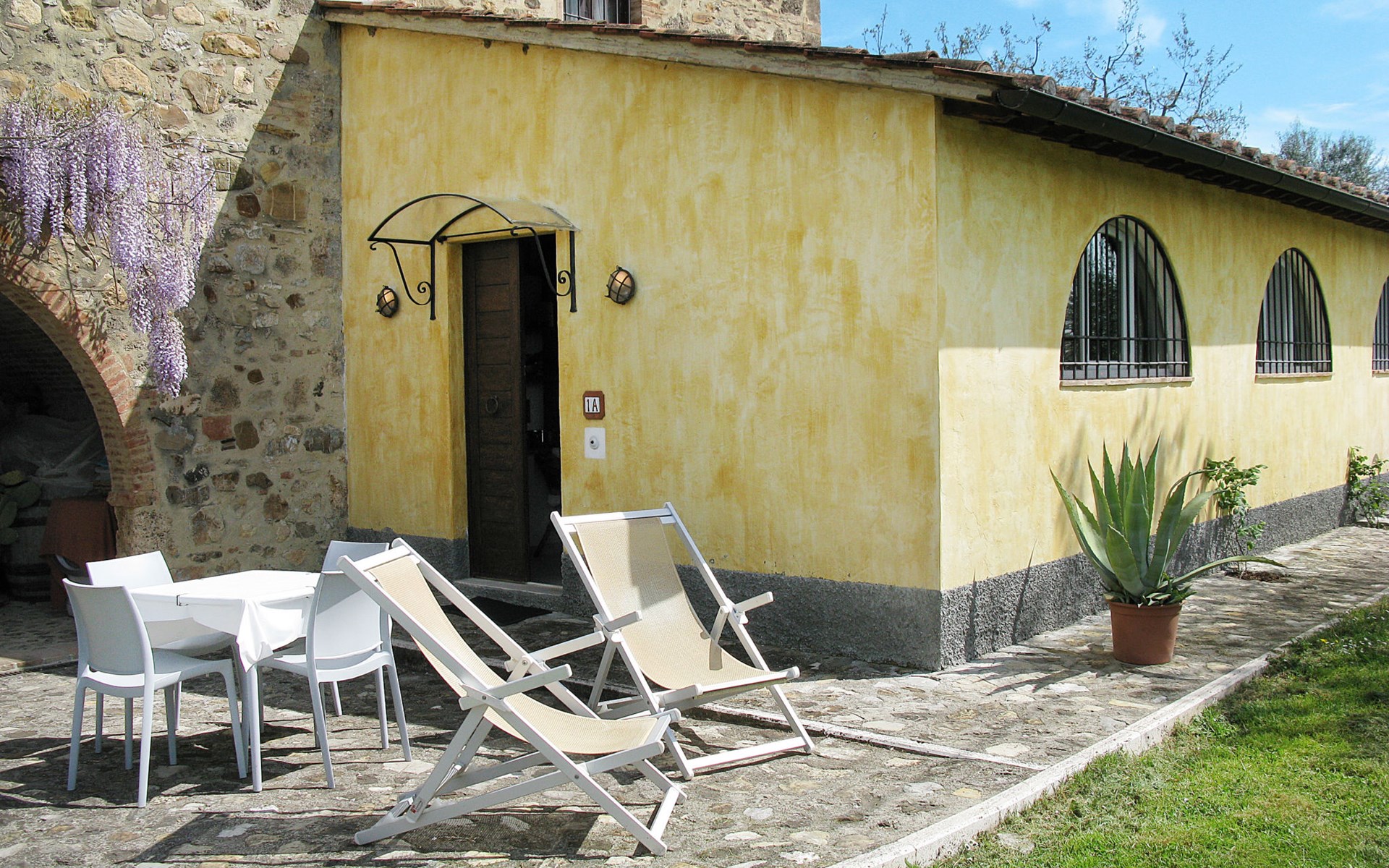 Country house "Podere San Raffaele", surrounded by trees, fields and vineyards. 3 apartments in the residence. 5 km from the centre of Poggibonsi, 11 km from the centre of Castellina in Chianti, 20 km from the centre of San Gimignano. For shared use: garden 1 ha with trees, natural garden, meadow. Barbecue. 1.8 km long motor access (via unmade road). Parking on the premises. Grocery 5 km, supermarket 5 km, restaurant 5 km, bus stop 5 km, railway station "Poggibonsi" 5 km, sandy beach "Cecina Mare" 75 km, outdoor swimming pool 5 km, indoor swimming pool 5 km. Local sale of farm products. Please note: the owner lives in the same residence.